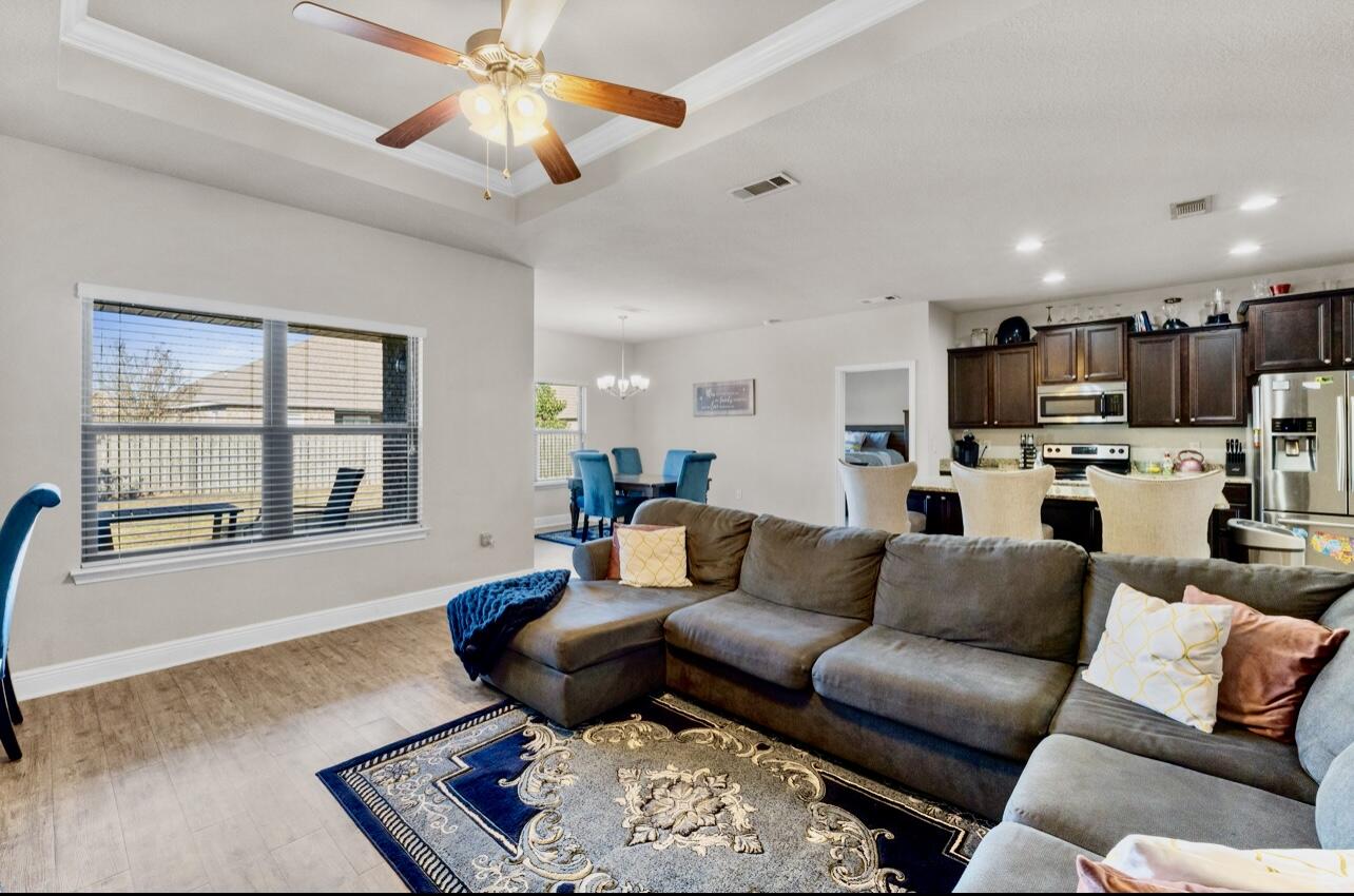 Wonderful home in South Crestview! Great Amenities!! If you are a VA buyer, this home has an an assumable 2.25% interest rate. Current mortgage, including taxes and escrow is $1,303.13 a month. Loan balance is approx. $226,401.41. This well-maintained home has a wonderful living area. master bedroom accommodates a king-sized bed. The master bath has a soaker tub and updated shower. If a large pantry and large island is on your kitchen wish list, you found it! A split floor plan, covered back patio, fully fenced backyard and a nice garage completes this home. designated dining area and a split floor plan. Easy show!!!