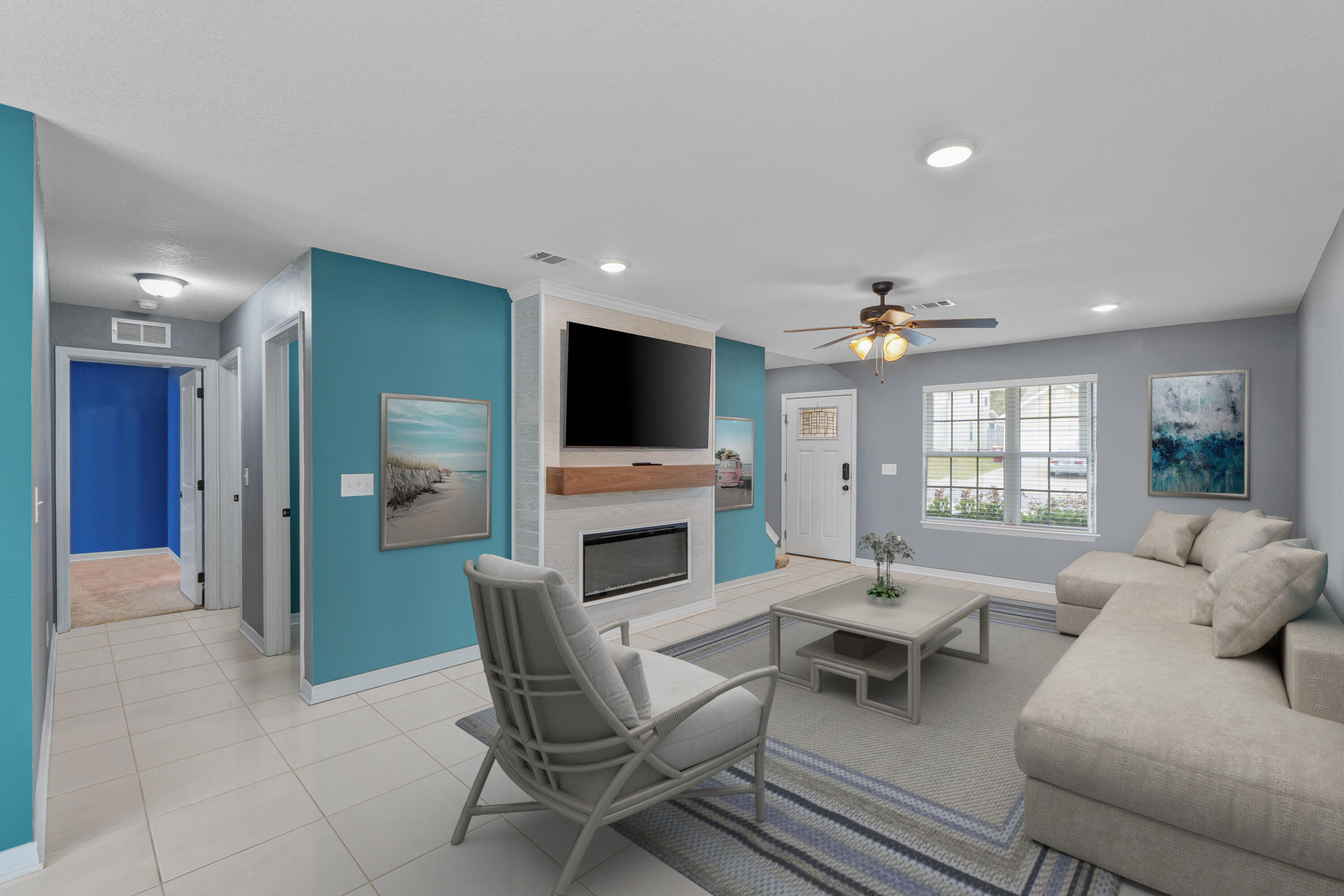 WAIT!! DON'T SCROLL PAST THIS ONE! SELLER OFFERING AN INCENTIVE-W/acceptable offer, Seller will paint the interior a neutral color prior to closing! Welcome to this beautifully designed 4-bed/2.5-bath home w/upstairs bonus area, perfect for a home office, playroom, media space! The inviting living room features a sleek electric fireplace, while the well-appointed kitchen offers stainless steel appliances, ample counter space, and tile flooring throughout the main living areas for easy maintenance. The downstairs primary suite provides a peaceful retreat with a walk-in closet, separate shower, and soaking tub. Step outside to a fully fenced backyard with a firepit and no rear neighbor, offering added privacy. A covered front porch and 2-car garage complete the home. Conveniently located near downtown Crestview and multiple military bases, this home blends comfort, functionality, and a prime location.