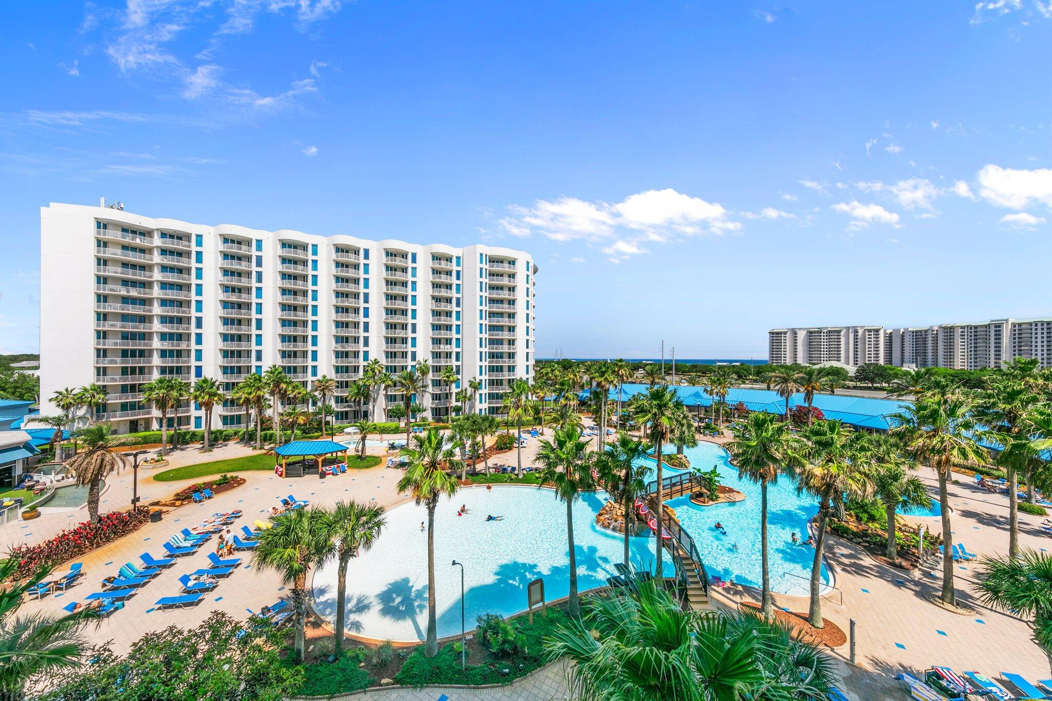 Highway 98 to Indian Bayou Trail, turn right into the Palms of Destin. Unit is on the 5th floor in the west tower