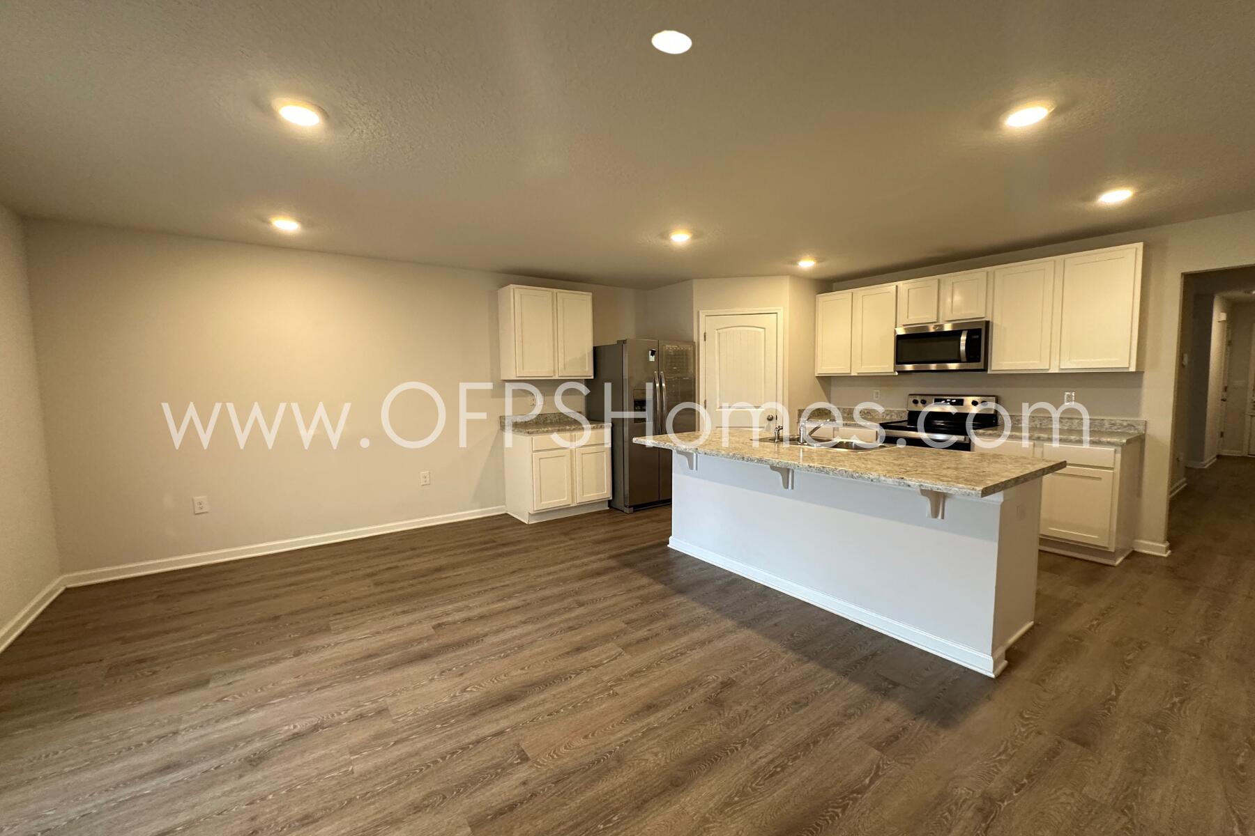 Located in the desirable Timberland Ridge community, this well-maintained 4-bedroom, 2-bathroom home offers a spacious open layout ideal for comfortable living. The kitchen features a large island bar, breakfast nook, stainless steel appliances, smooth-top range, built-in microwave, and a generous walk-in pantry--perfect for daily use and entertaining. The primary suite includes a walk-in closet and en-suite bath with dual sinks, a large walk-in shower, and extra linen storage. Enjoy wood flooring throughout, a covered back patio for outdoor relaxation, and a 2-car garage for parking and storage. NO smoking. 600 minimum FICO credit score required in addition to meeting rental criteria. Pets allowed upon approval with a non-refundable pet fee. All applicants are required to complete an application on https://onefamilypropertyservices.petscreening.com/
