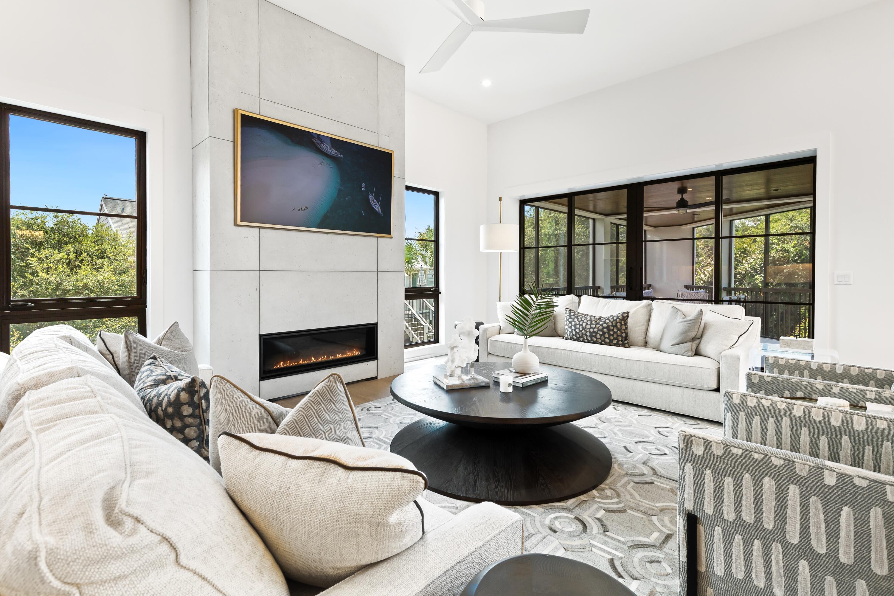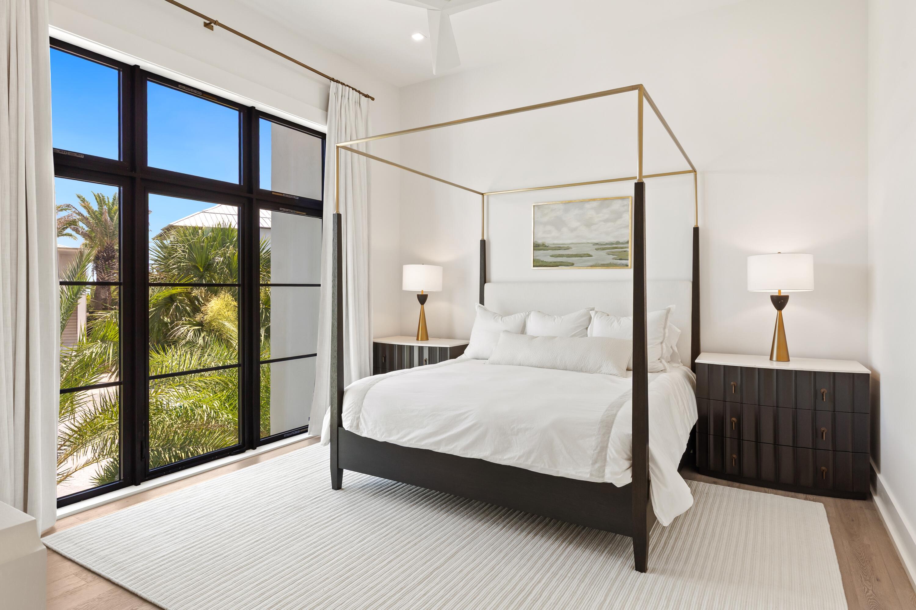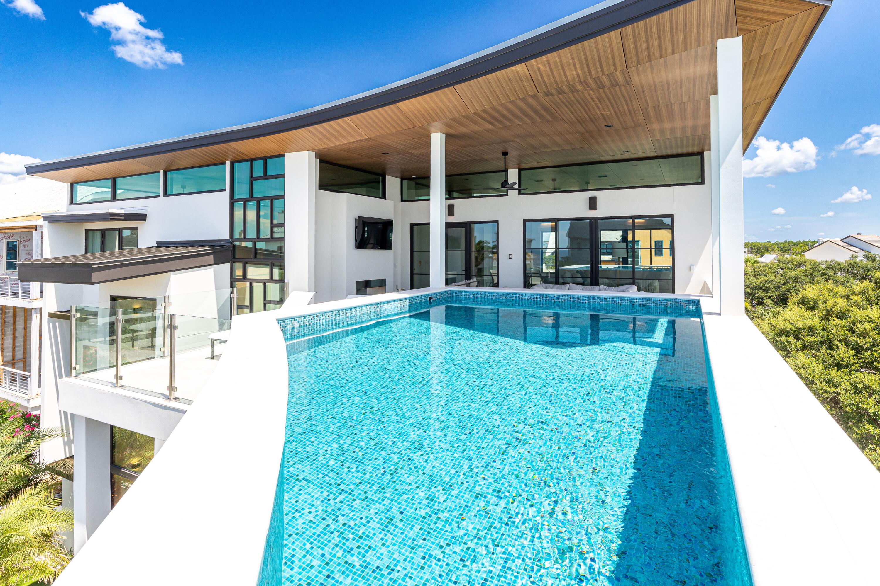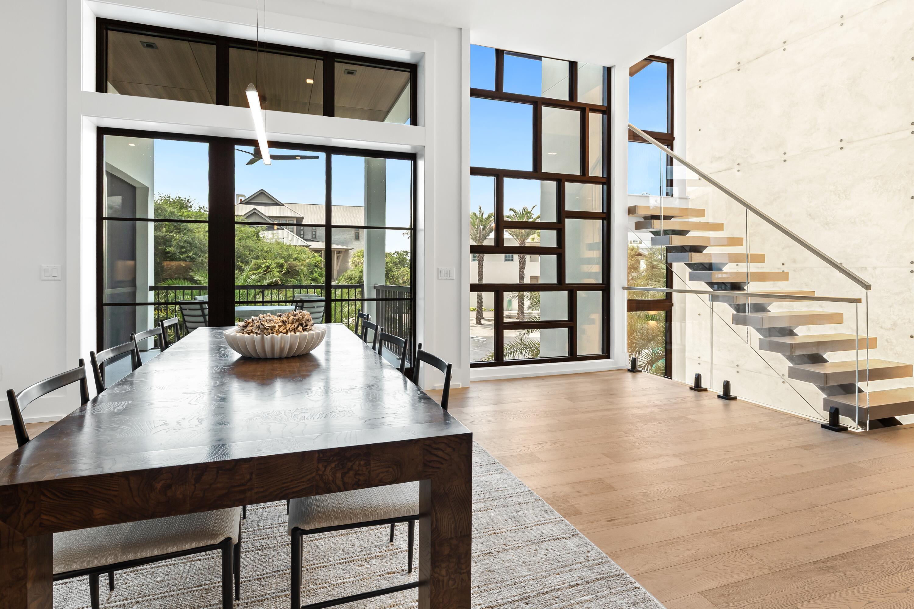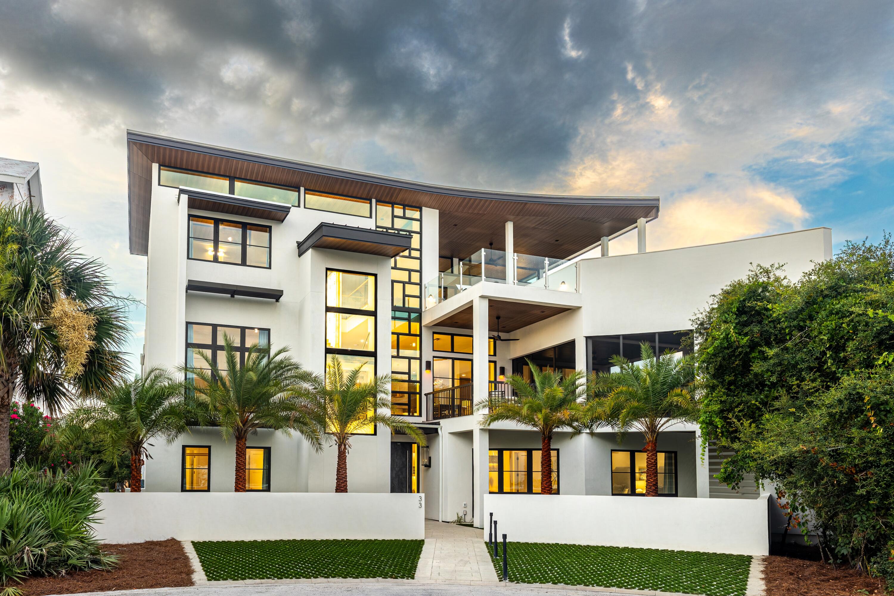 Welcome to 33 Camp Creek Point, an architectural masterpiece that perfectly blends modern luxury with coastal elegance. Spanning 6,800 square feet, this stunning 5-bedroom, 6 full bath, and 2 half bath residence showcases unparalleled craftsmanship and thoughtfully curated design throughout, delivering a one-of-a-kind living experience along Florida's iconic 30A.At the heart of the home is a breathtaking three-story floating staircase, dramatically wrapped around a glowing wall of lighted Amberlite. This sculptural centerpiece anchors all levels of the home and sets the tone for its bold, contemporary aesthetic. A three-story Mondrian-style glass wall enhances the vertical space with light and movement, while clean architectural lines, expansive windows, and minimalist detailing create an atmosphere of openness and sophistication. The striking Parklex Prodema ceiling and soffit flow seamlessly from interior to exterior, reinforcing the home's deep connection to its natural surroundings and commitment to indoor-outdoor living.