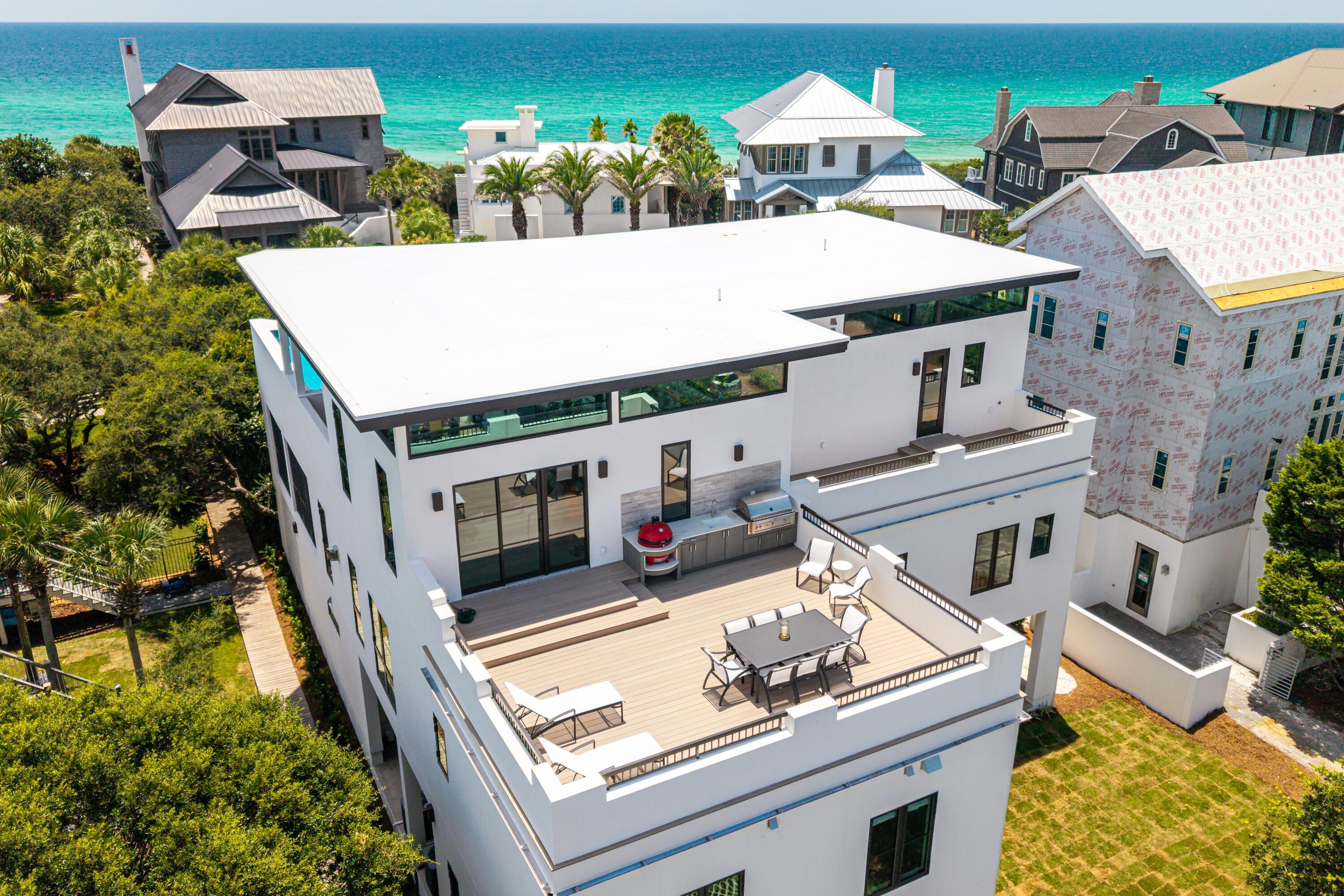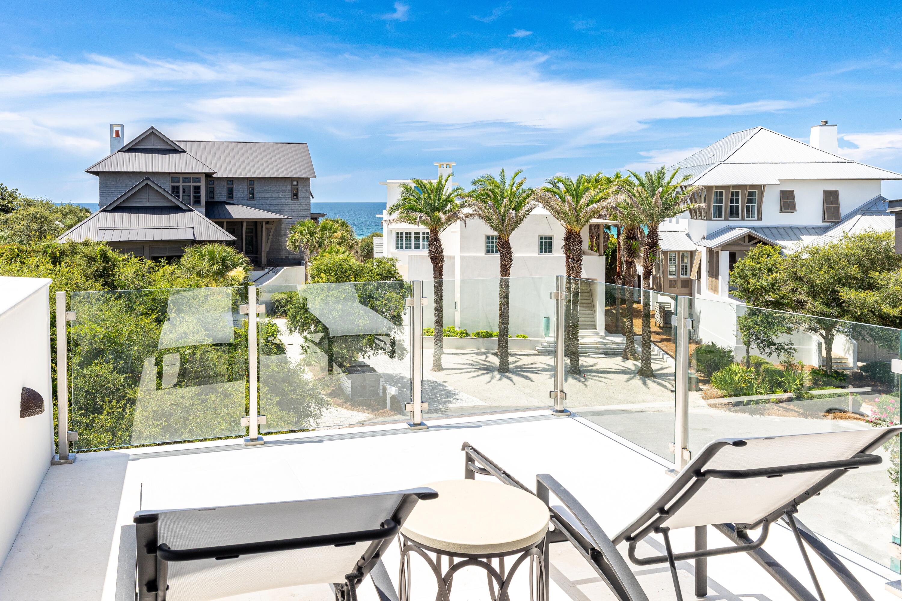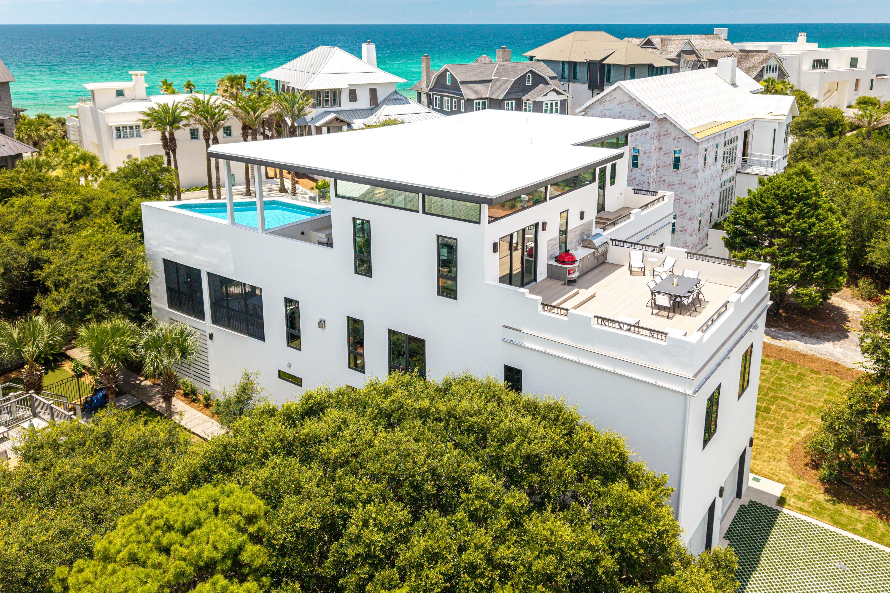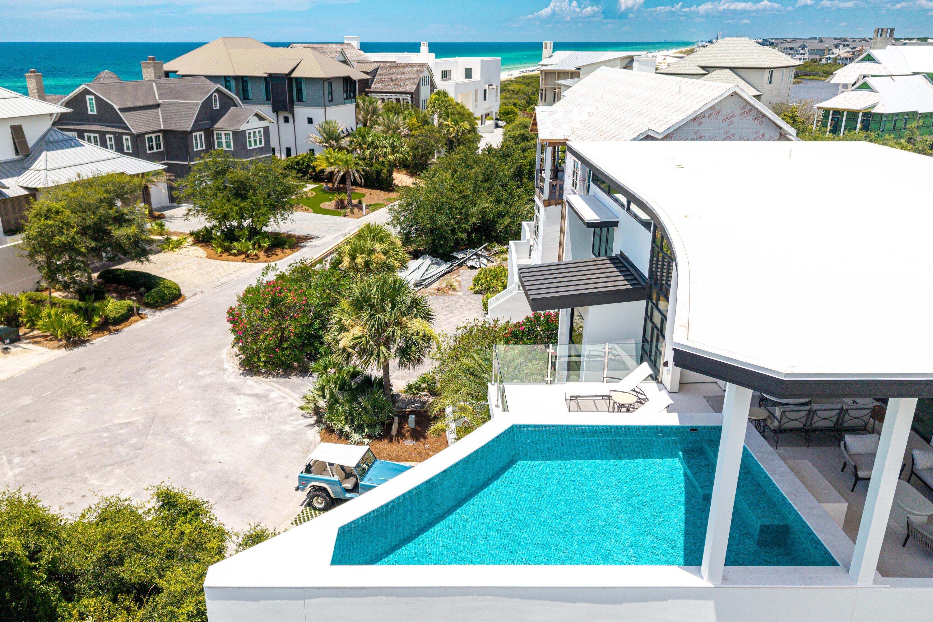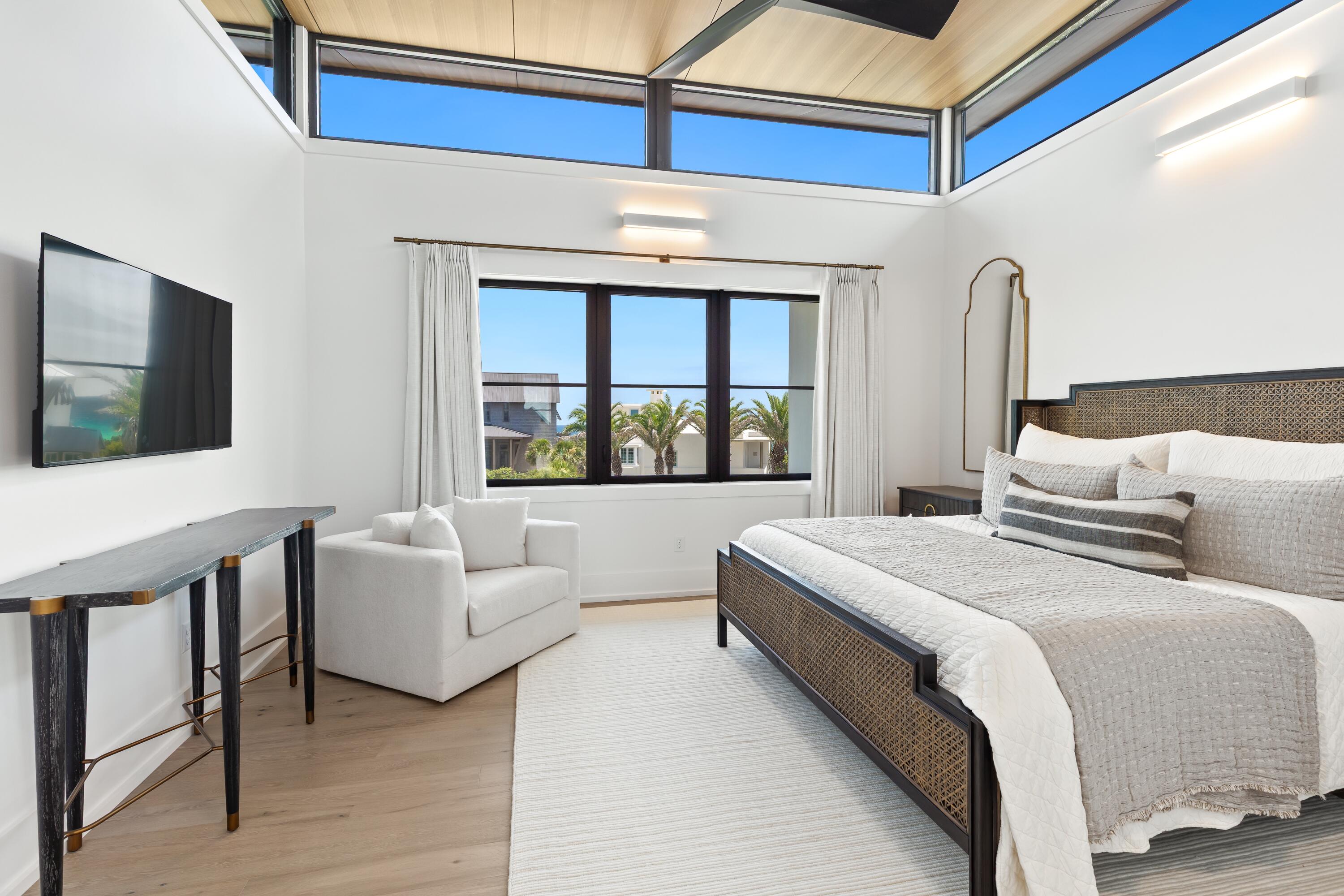 Welcome to 33 Camp Creek Point, an architectural masterpiece that perfectly blends modern luxury with coastal elegance. Spanning 6,800 square feet, this stunning 5-bedroom, 6 full bath, and 2 half bath residence showcases unparalleled craftsmanship and thoughtfully curated design throughout, delivering a one-of-a-kind living experience along Florida's iconic 30A.At the heart of the home is a breathtaking three-story floating staircase, dramatically wrapped around a glowing wall of lighted Amberlite. This sculptural centerpiece anchors all levels of the home and sets the tone for its bold, contemporary aesthetic. A three-story Mondrian-style glass wall enhances the vertical space with light and movement, while clean architectural lines, expansive windows, and minimalist detailing create an atmosphere of openness and sophistication. The striking Parklex Prodema ceiling and soffit flow seamlessly from interior to exterior, reinforcing the home's deep connection to its natural surroundings and commitment to indoor-outdoor living.