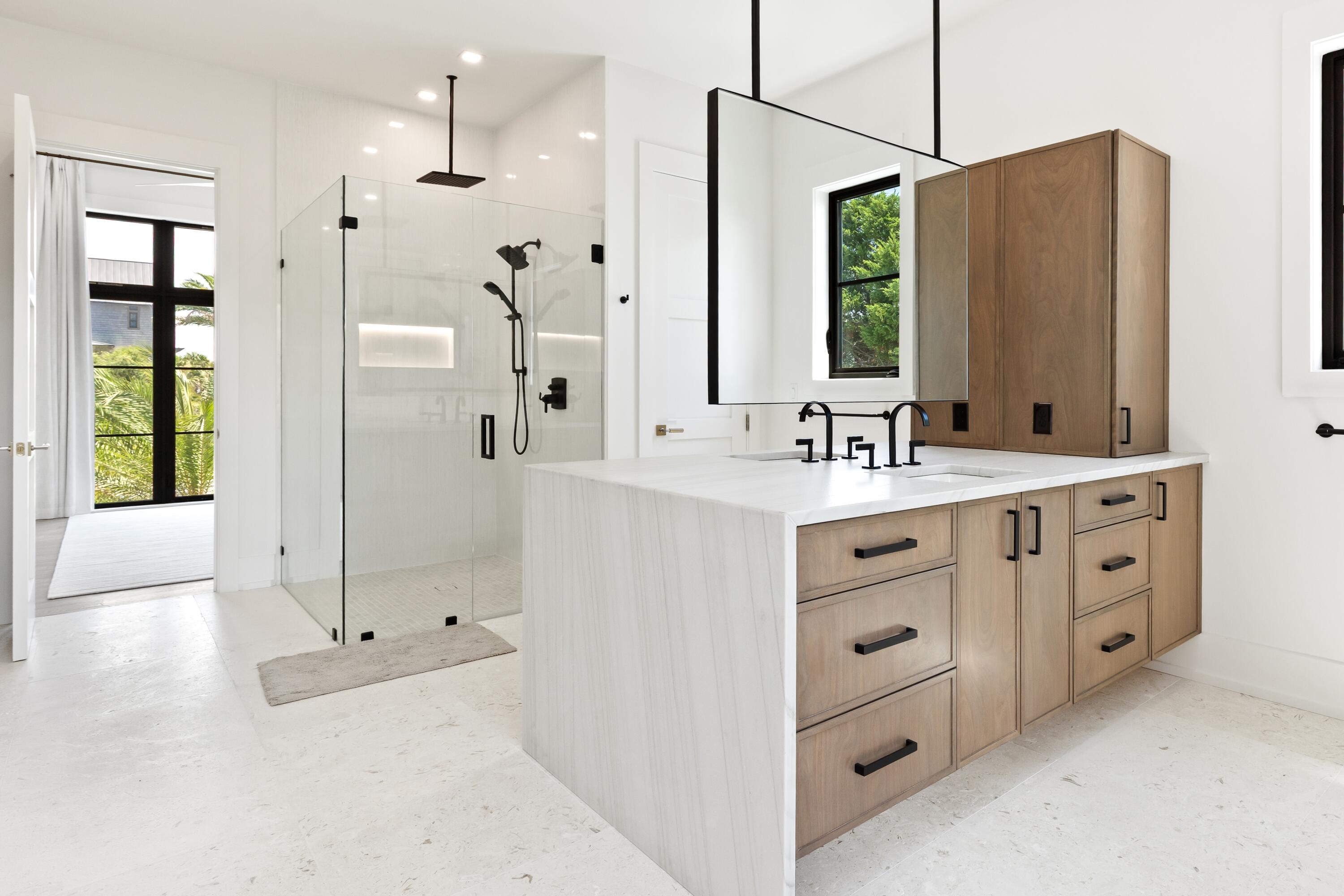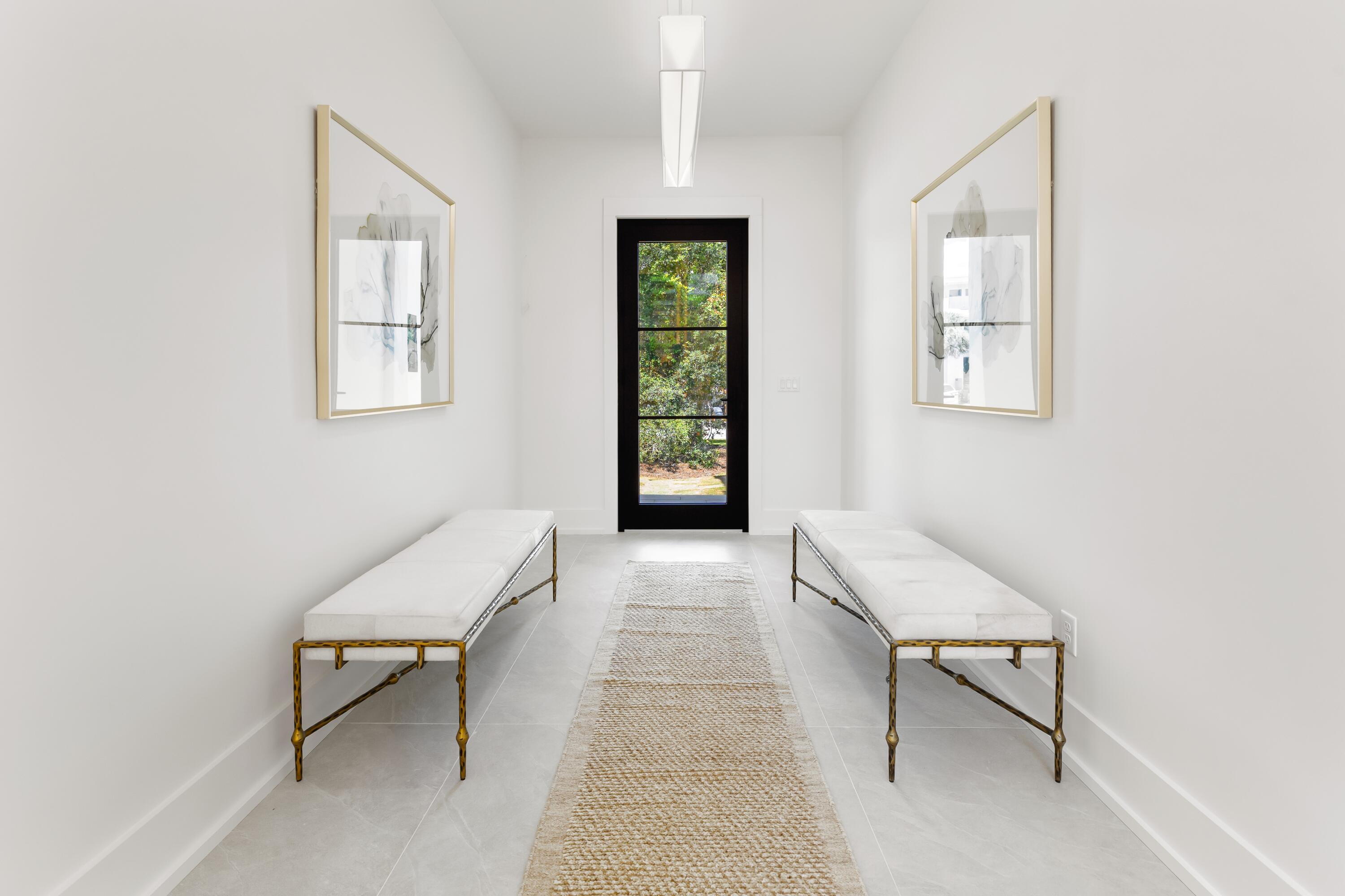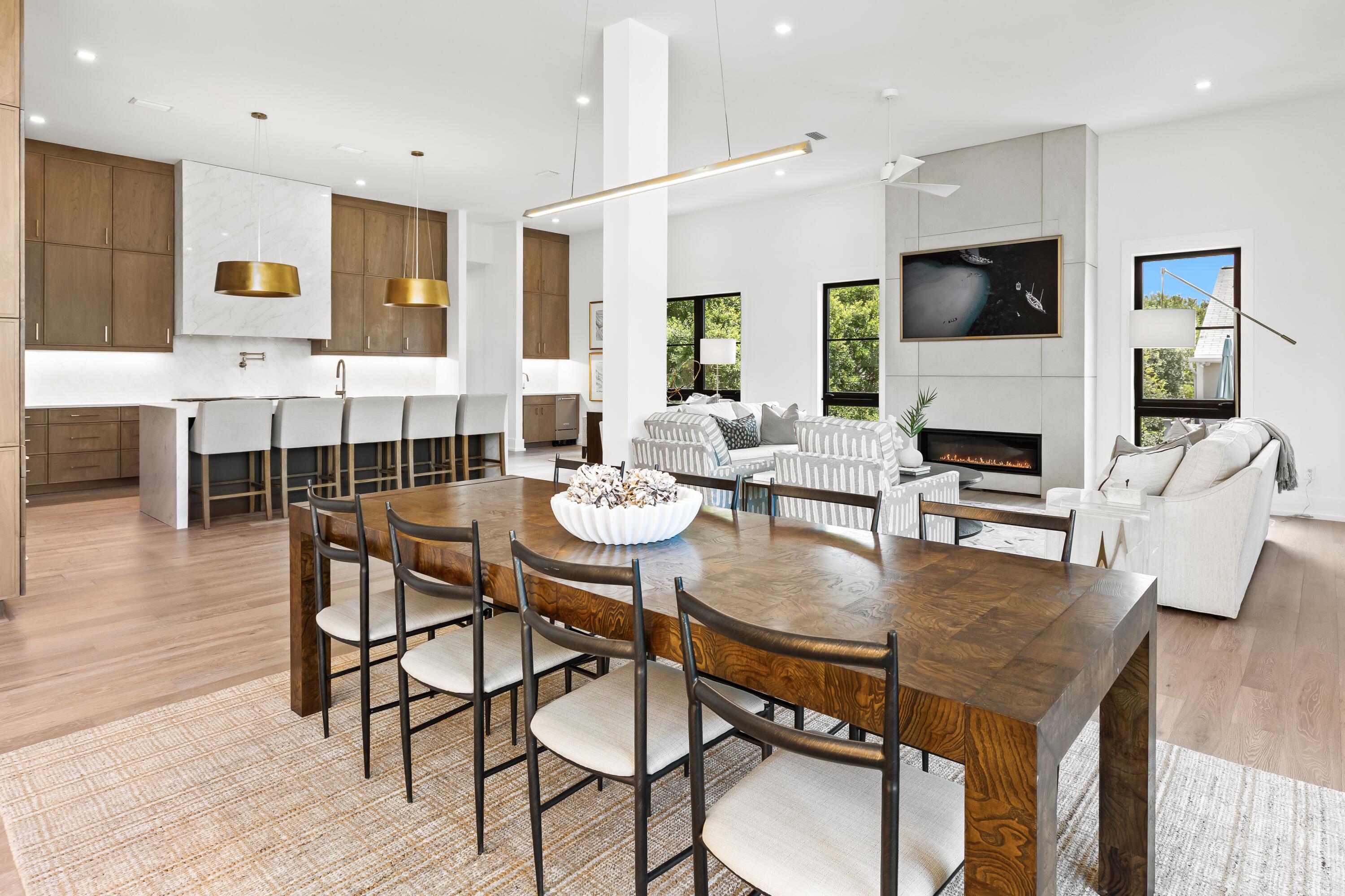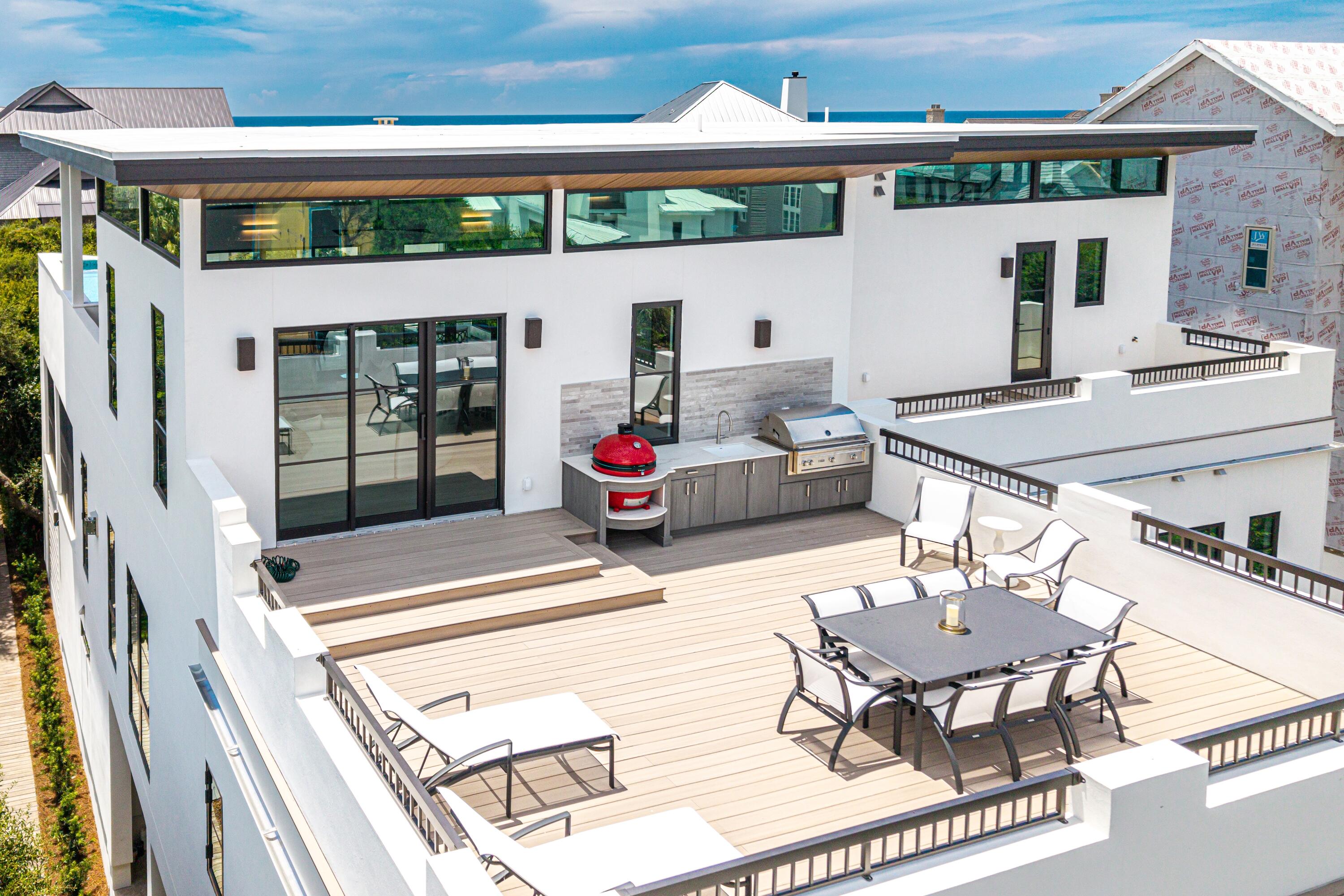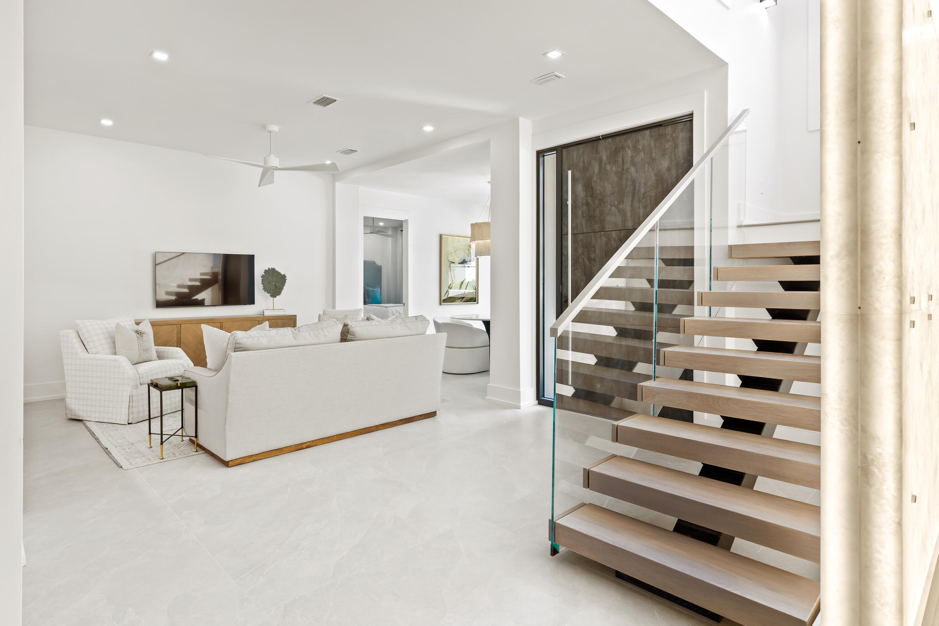 Welcome to 33 Camp Creek Point, an architectural masterpiece that perfectly blends modern luxury with coastal elegance. Spanning 6,800 square feet, this stunning 5-bedroom, 6 full bath, and 2 half bath residence showcases unparalleled craftsmanship and thoughtfully curated design throughout, delivering a one-of-a-kind living experience along Florida's iconic 30A.At the heart of the home is a breathtaking three-story floating staircase, dramatically wrapped around a glowing wall of lighted Amberlite. This sculptural centerpiece anchors all levels of the home and sets the tone for its bold, contemporary aesthetic. A three-story Mondrian-style glass wall enhances the vertical space with light and movement, while clean architectural lines, expansive windows, and minimalist detailing create an atmosphere of openness and sophistication. The striking Parklex Prodema ceiling and soffit flow seamlessly from interior to exterior, reinforcing the home's deep connection to its natural surroundings and commitment to indoor-outdoor living.