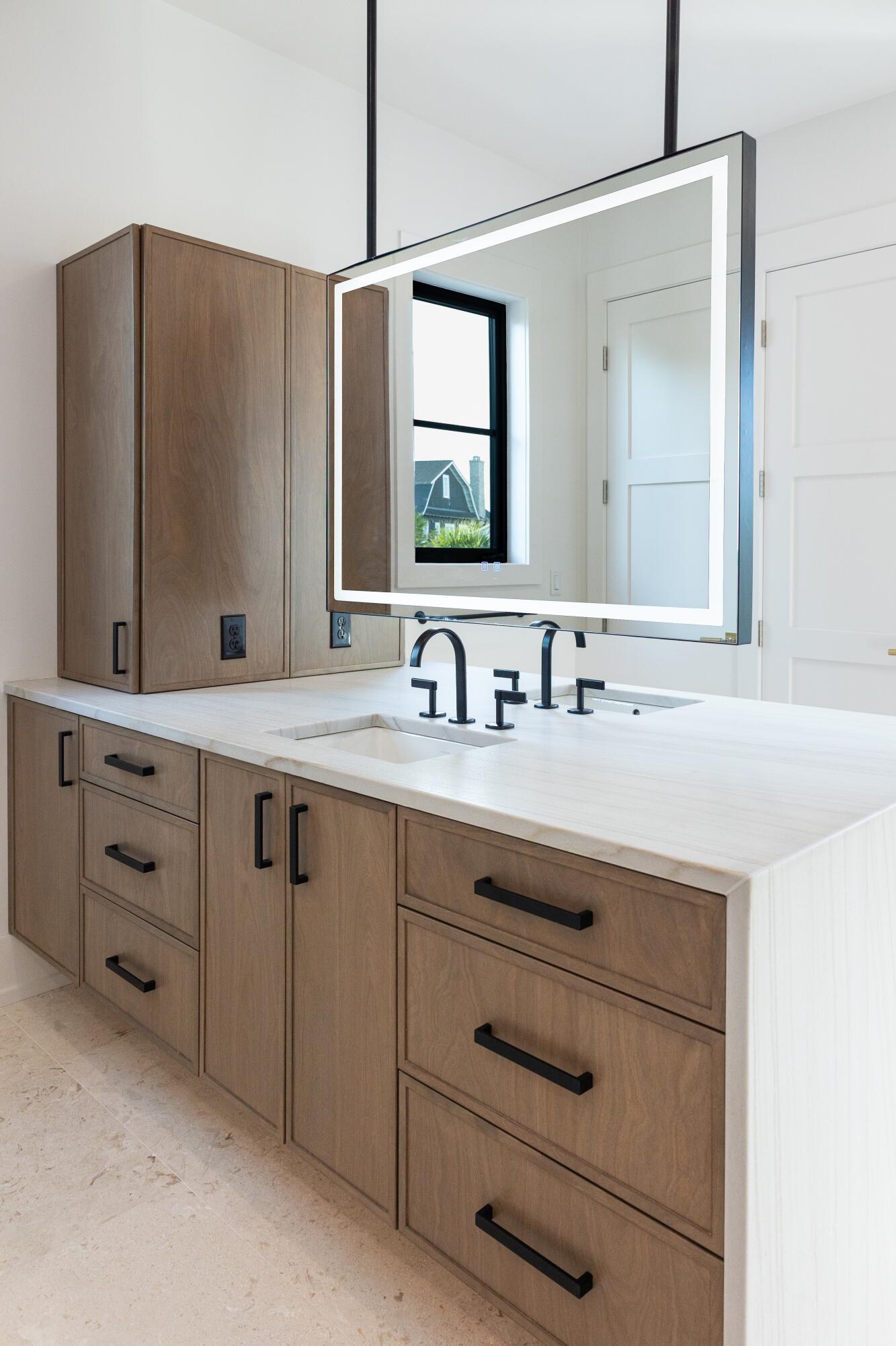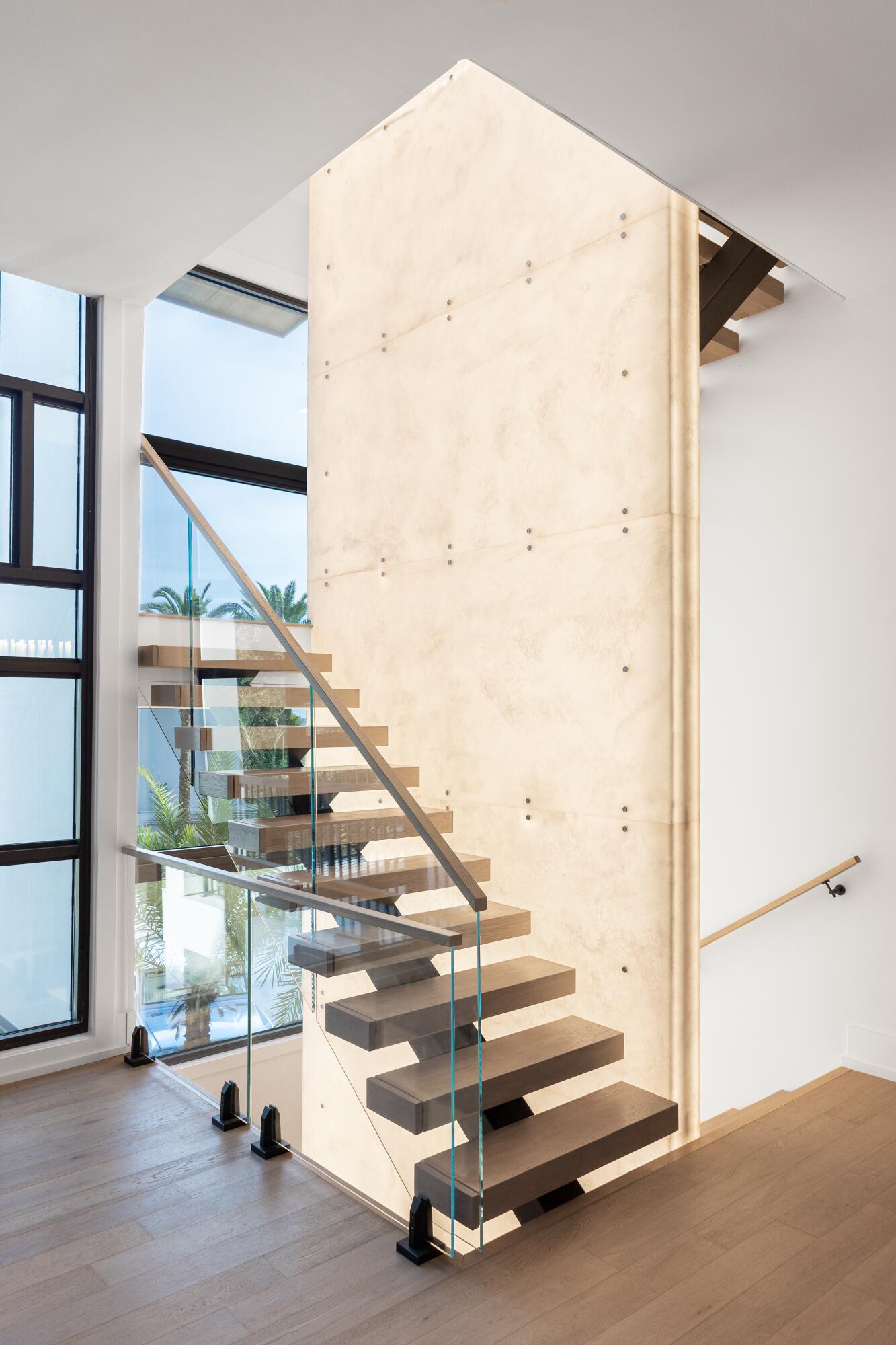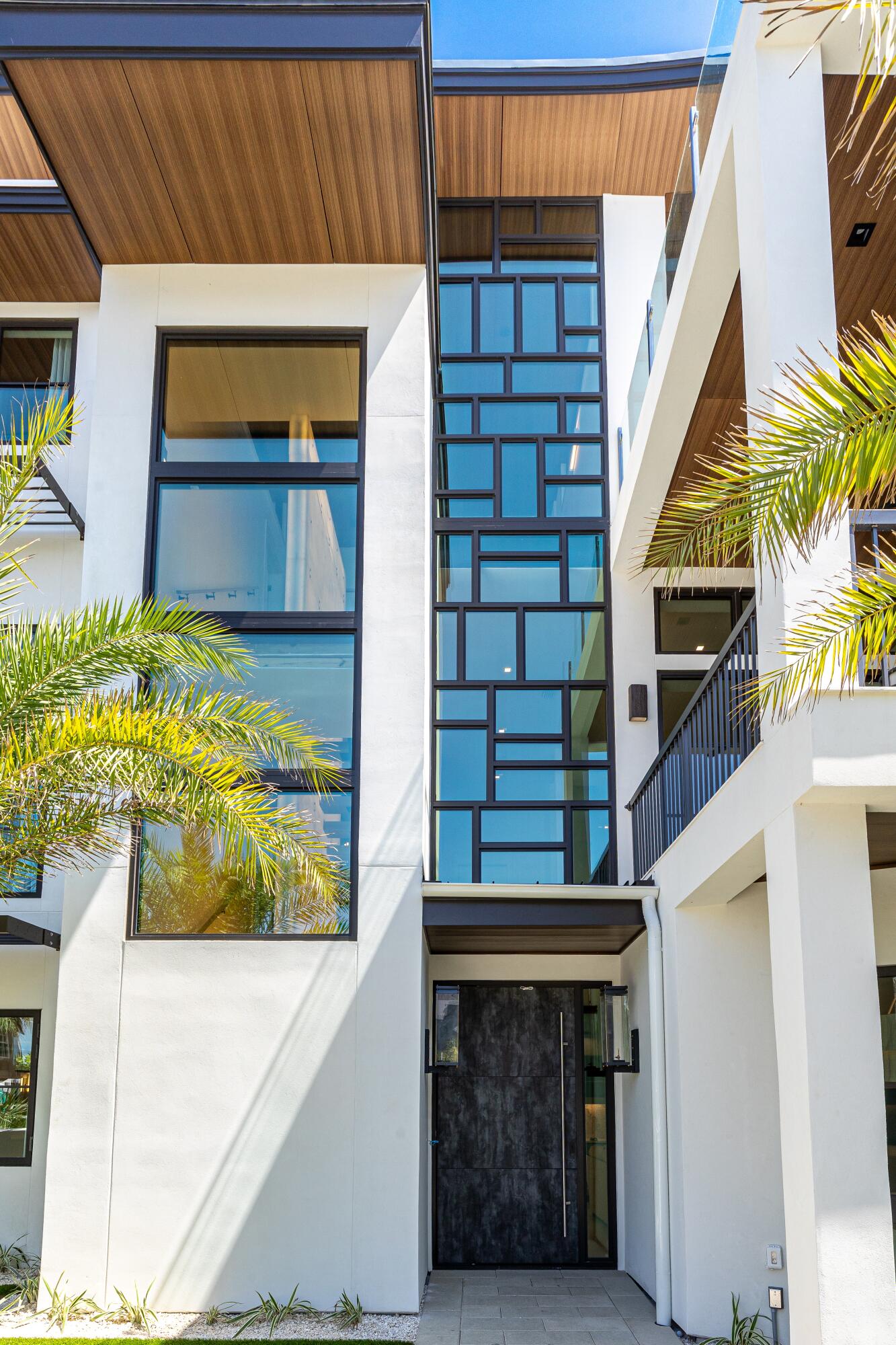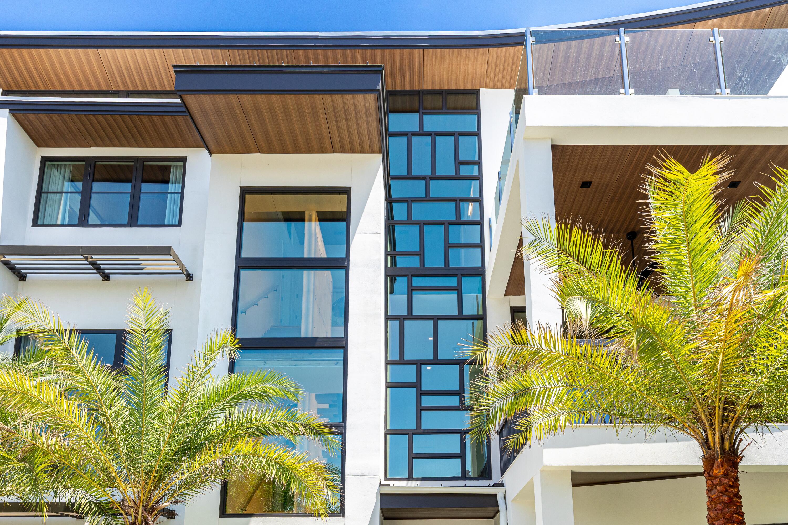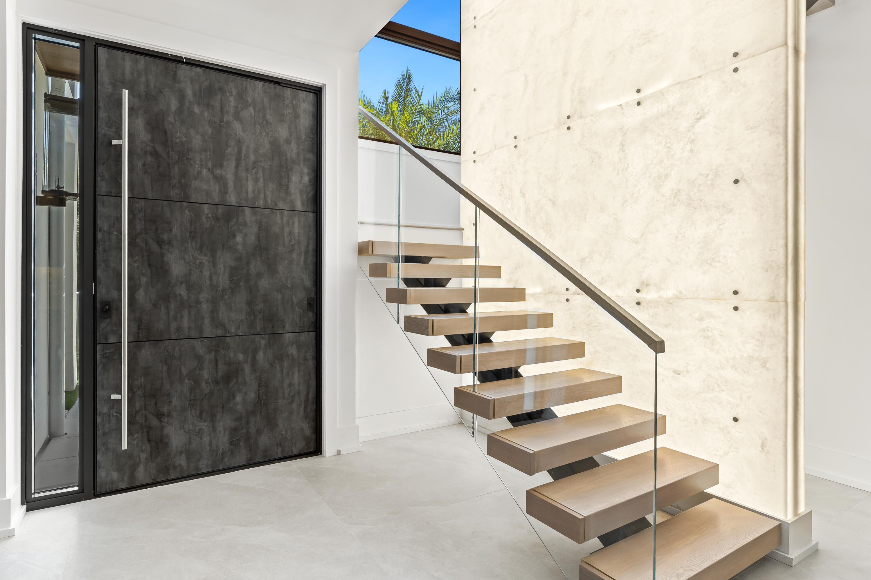Welcome to 33 Camp Creek Point, an architectural masterpiece that perfectly blends modern luxury with coastal elegance. Spanning 6,800 square feet, this stunning 5-bedroom, 6 full bath, and 2 half bath residence showcases unparalleled craftsmanship and thoughtfully curated design throughout, delivering a one-of-a-kind living experience along Florida's iconic 30A.At the heart of the home is a breathtaking three-story floating staircase, dramatically wrapped around a glowing wall of lighted Amberlite. This sculptural centerpiece anchors all levels of the home and sets the tone for its bold, contemporary aesthetic. A three-story Mondrian-style glass wall enhances the vertical space with light and movement, while clean architectural lines, expansive windows, and minimalist detailing create an atmosphere of openness and sophistication. The striking Parklex Prodema ceiling and soffit flow seamlessly from interior to exterior, reinforcing the home's deep connection to its natural surroundings and commitment to indoor-outdoor living.