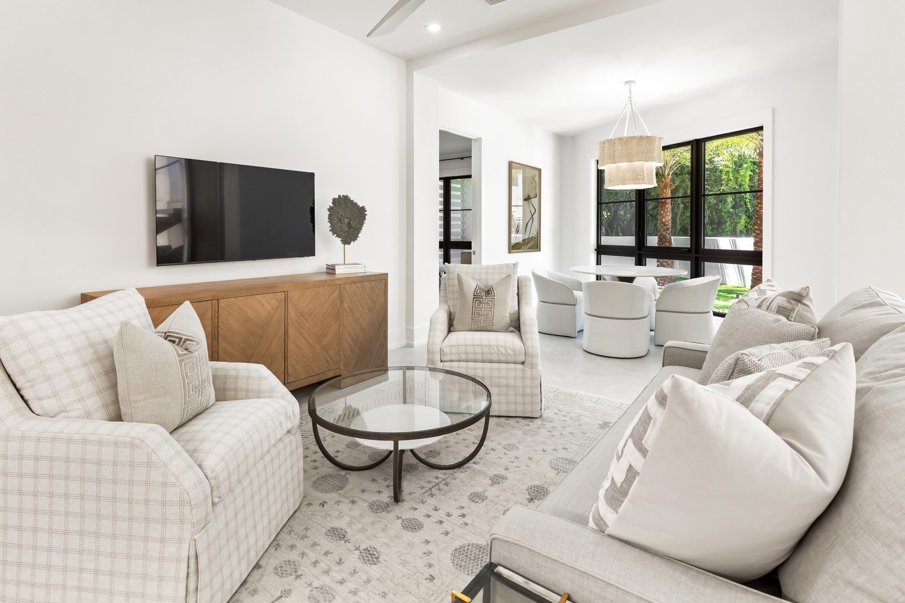 Adding to the home's bespoke features is a custom climate-controlled wine room, artfully designed with architectural shelving and dramatic display lightingperfect for collectors and entertainers alike.