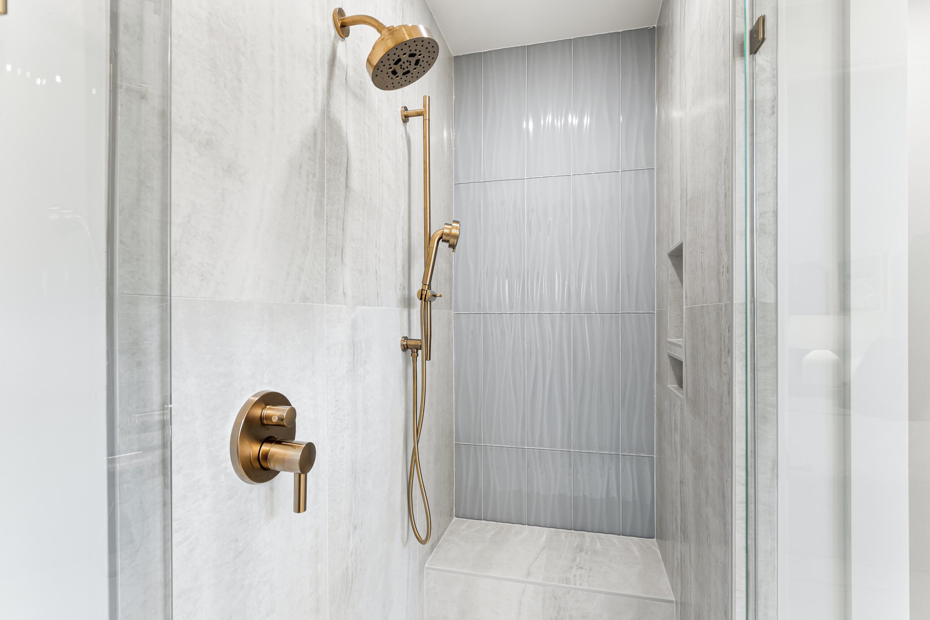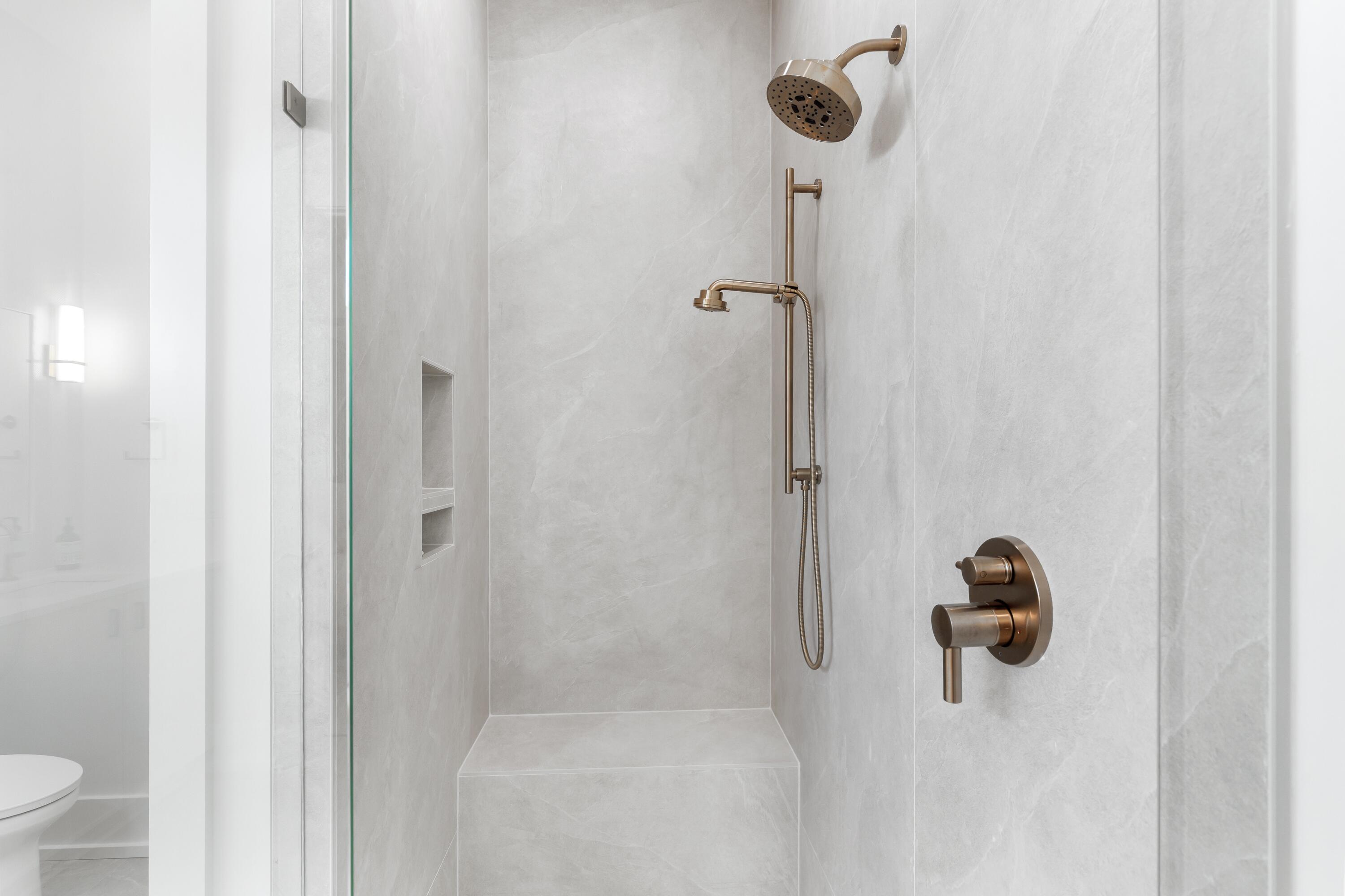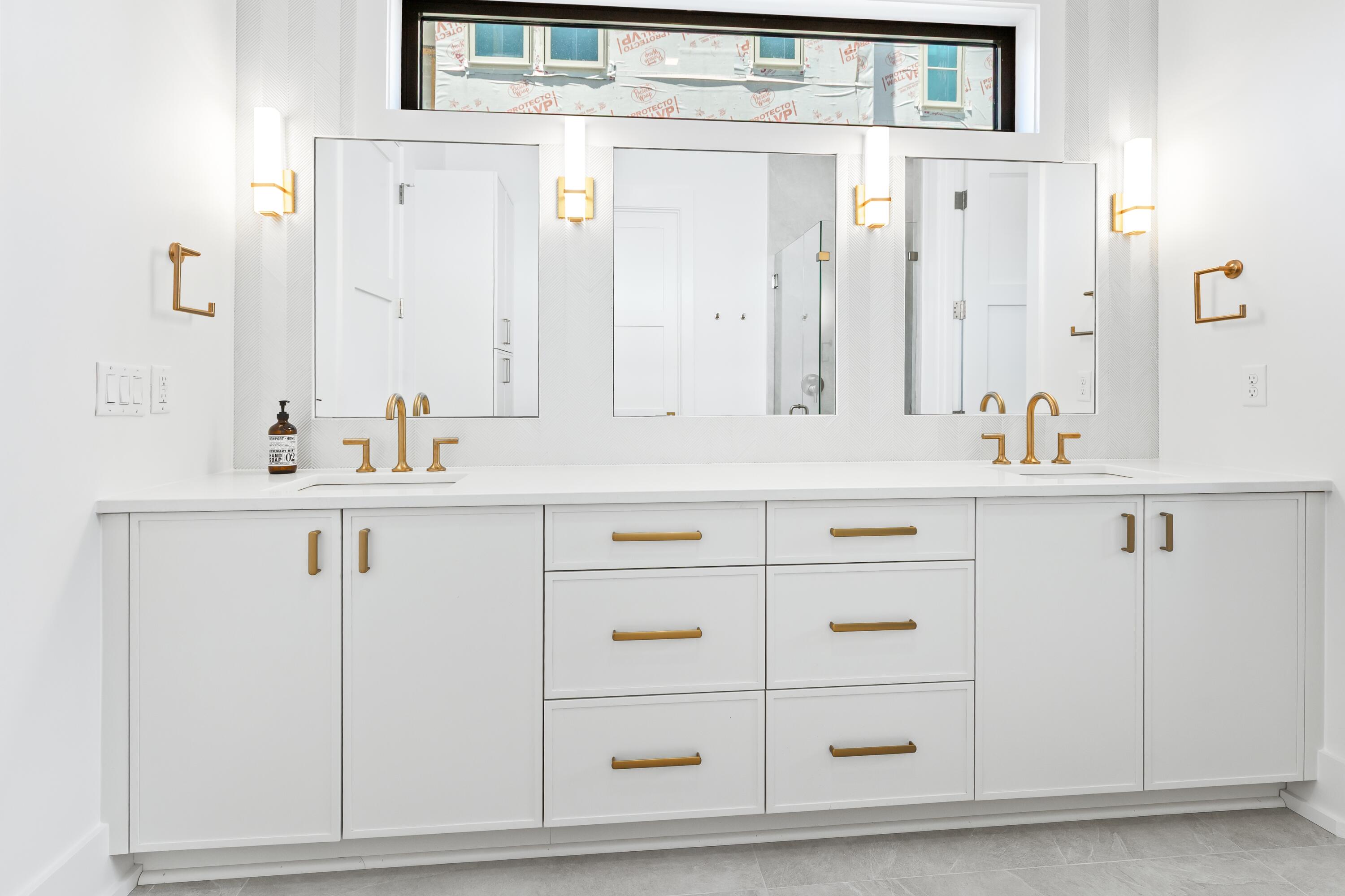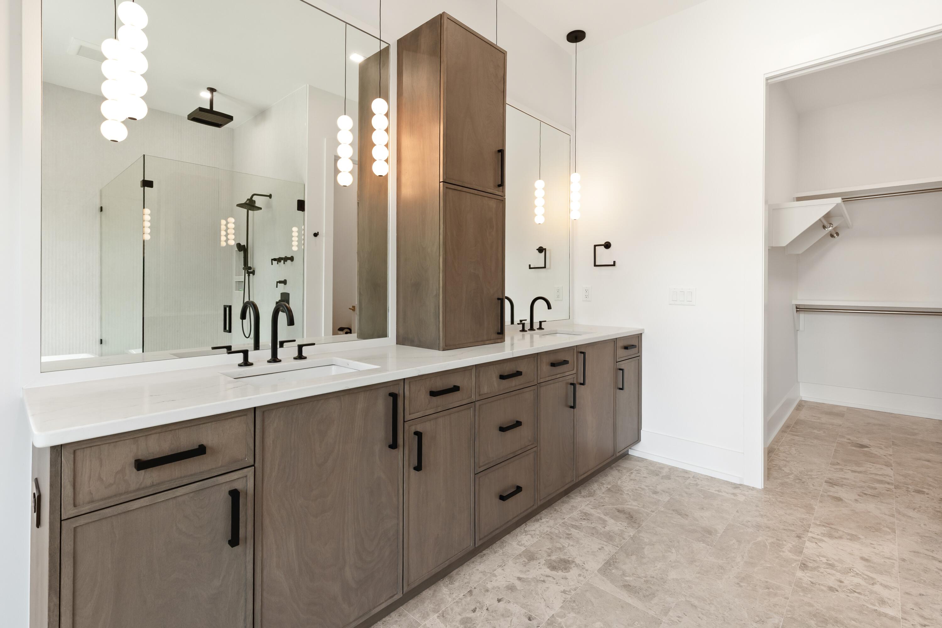 The primary suite is a private sanctuary, thoughtfully positioned for maximum privacy and natural light. It features a spa-inspired master bath with a soaking tub, oversized glass shower, and dual vanities with elegant custom finishes. A spacious walk-in closet completes the suite with style and functionality.
