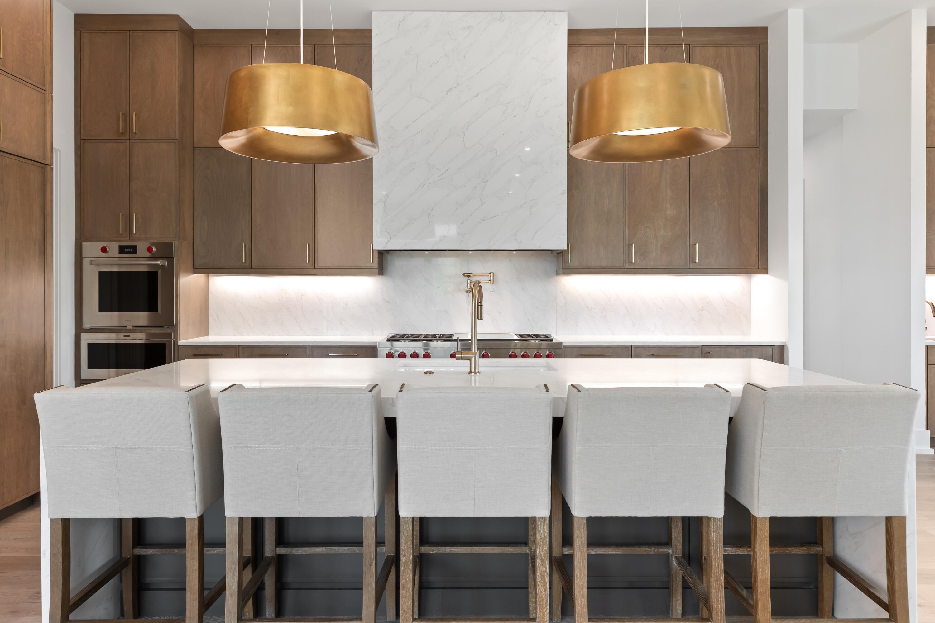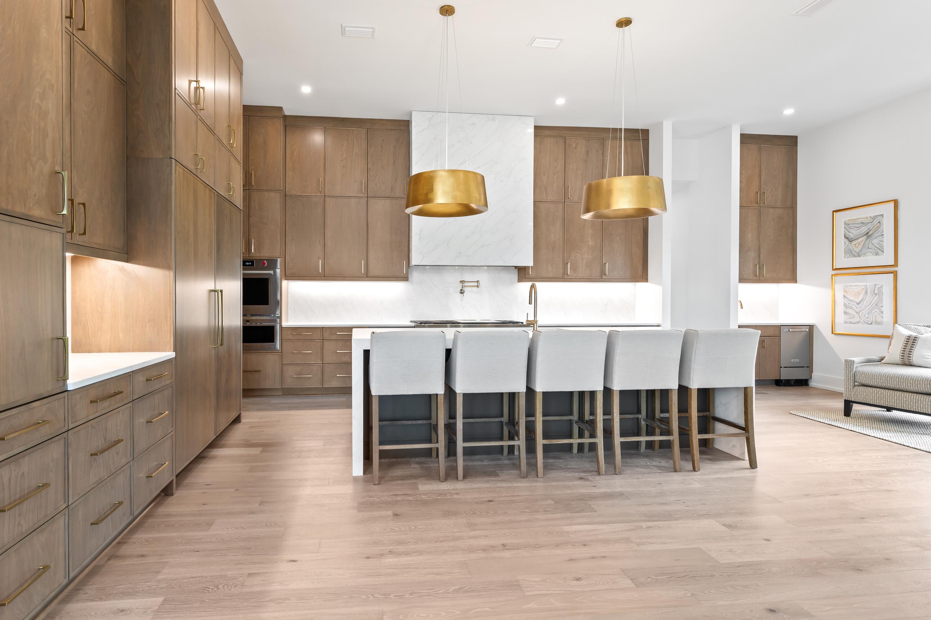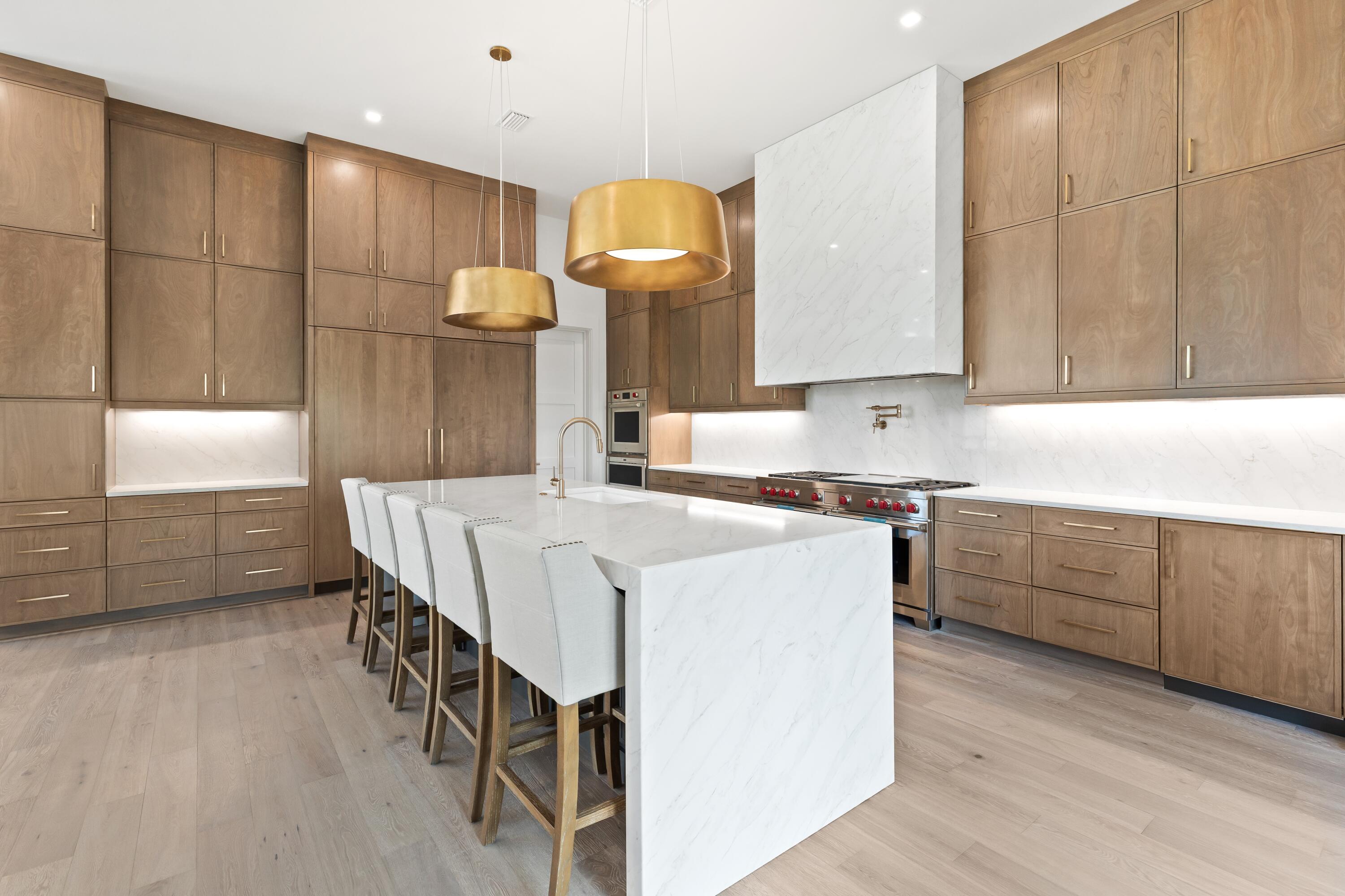 The second floor is anchored by a state-of-the-art gourmet kitchen, outfitted with Wolf and Sub-Zero appliances, custom cabinetry, and an oversized waterfall islandideal for casual dining or entertaining on a grand scale. The kitchen flows effortlessly into expansive living and dining areas framed by floor-to-ceiling glass, opening to generous balconies and blurring the boundaries between interior comfort and outdoor beauty.