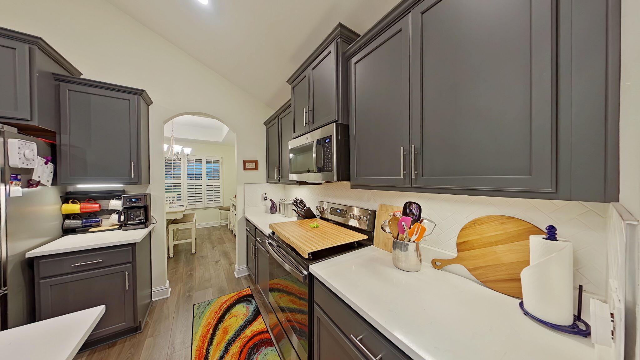 INTERIOR | Breakfast Bar,Ceiling Tray/Cofferd,Ceiling Vaulted,Floor Tile,Floor Vinyl,Floor WW Carpet,Handicap Provisions,Newly Painted,Pantry,Plantation Shutters,Pull Down Stairs,Washer/Dryer Hookup,Window Treatmnt Some |