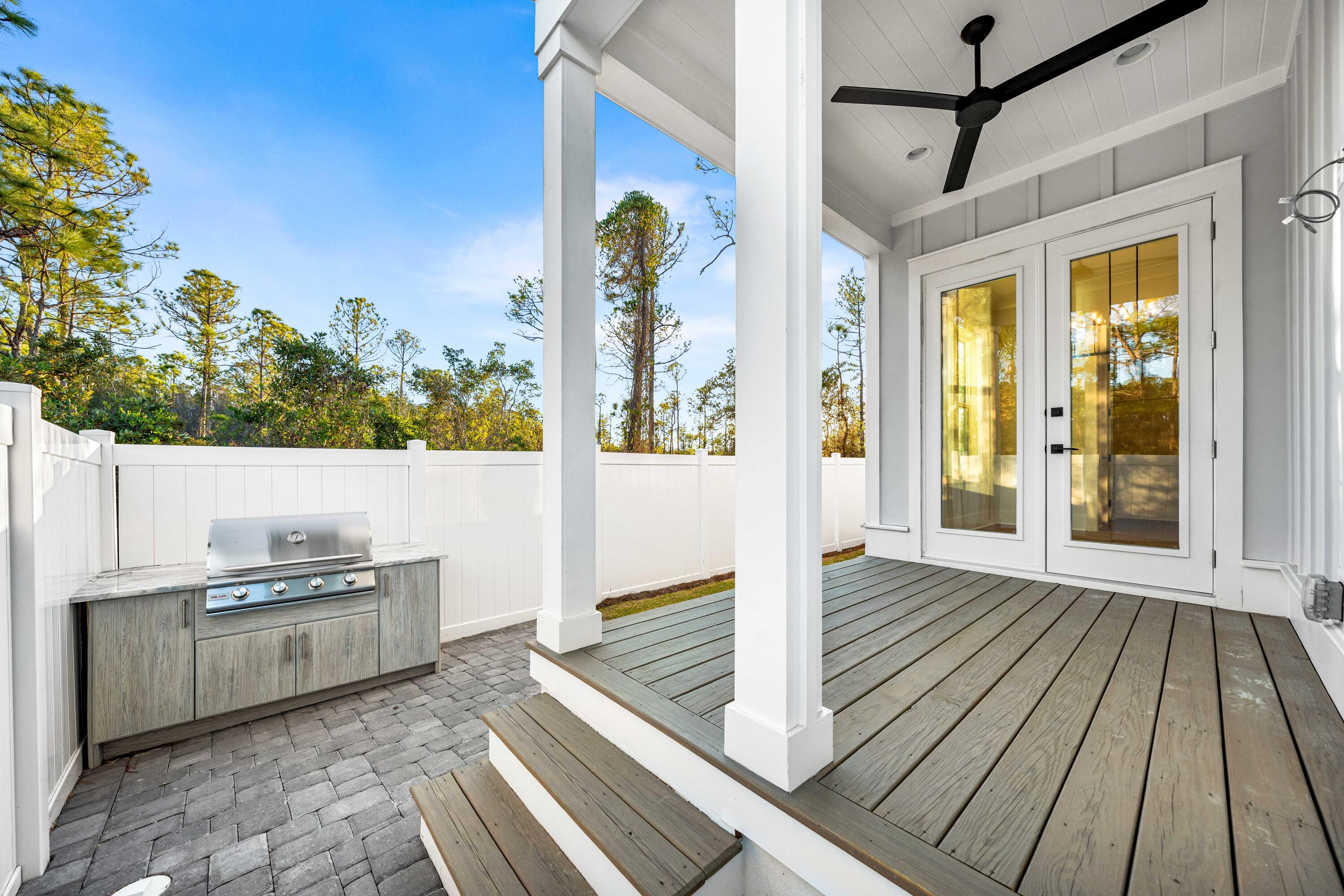 Upstairs, the spacious primary suite boasts a dual vanity and walk-in shower, while both guest bedrooms each feature their own private ensuite baths. The additional bunk room offers flexibility as an office or extra sleeping area, complemented by a hall bath with a double vanity and tub/shower combo. Every home in this exclusive community enjoys an outdoor kitchen and a fenced backyard for private entertaining. A dedicated ice machine in the garage makes beach days effortless. This marks the first completed phase, with future expansion on an adjacent 10 acres set to introduce a stunning community pool, sun deck, and cabana. Don't miss your chance to rent in this premier up and coming development along 30A.
