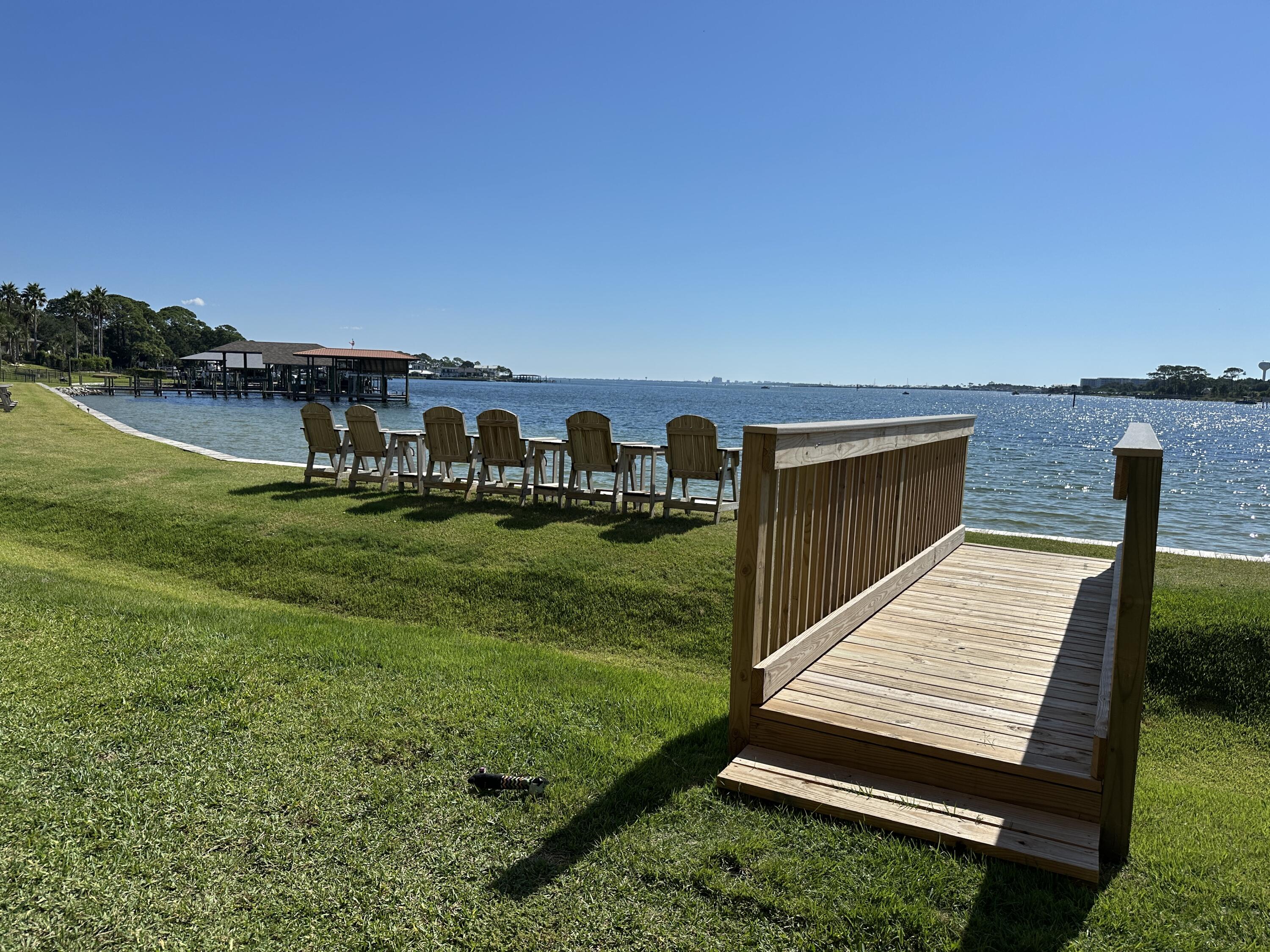 From Eglin Parkway going South turn left on First Street and follow around to Brooks, take a right on Brooks. The middle gate will be on your left. Call Broker for code.