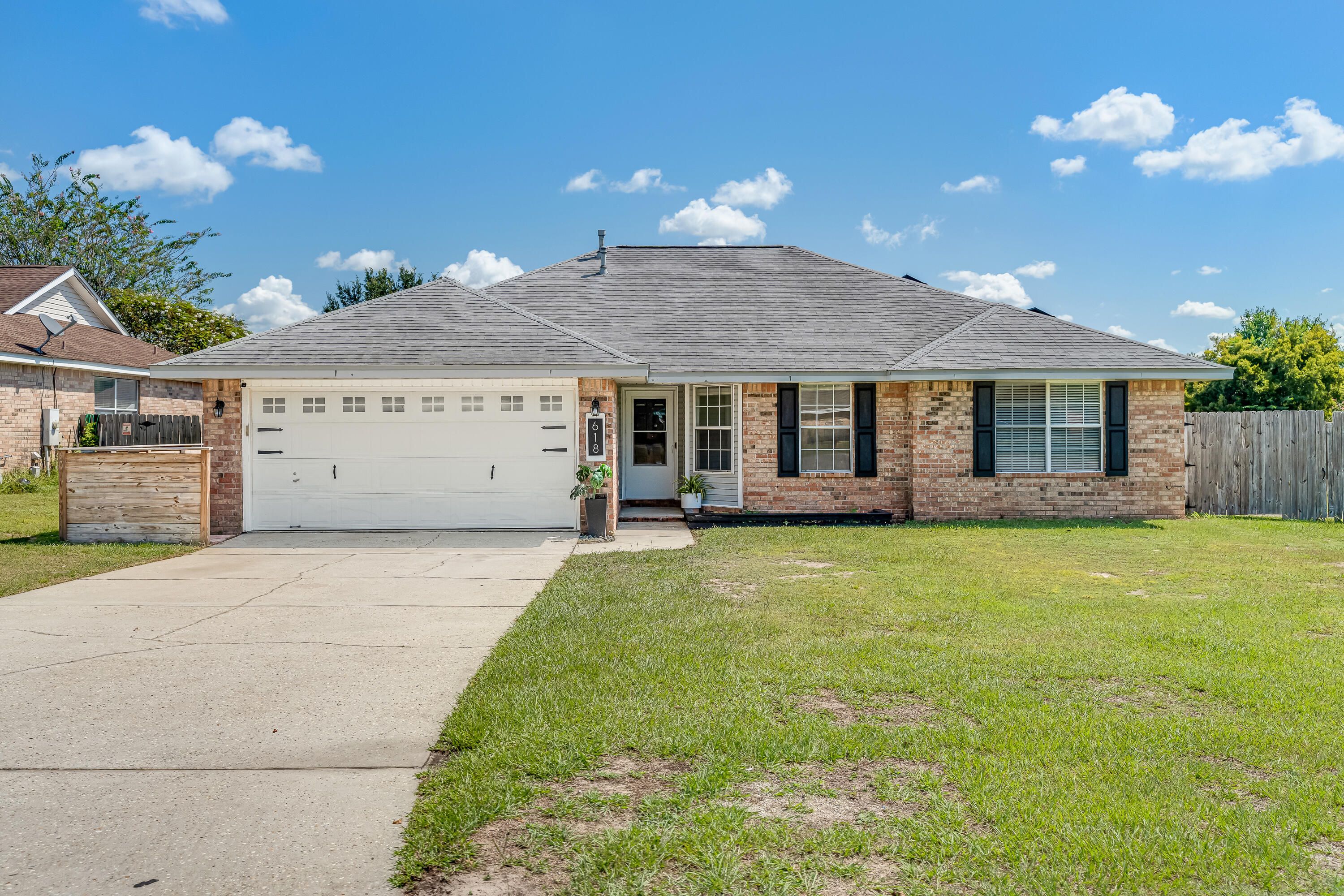 Stylish & Move-In Ready on a Prime Corner Lot. Located in South Crestview's Steeplechase neighborhood. Enjoy low energy bills with paid off solar panels. The home features a semi-open layout with granite countertops, stainless steel appliances, and electric/gas stove hookups. Modern ceiling fans and updated lighting add a fresh, contemporary touch throughout. The split-bedroom design ensures privacy, and the master suite includes a beautifully tiled shower. Outside, enjoy a fully fenced, manicured backyard with a cozy patio, out door patio furniture convey with the home--perfect for relaxing or entertaining. A blend of comfort, charm, and convenience--schedule your showing today!
