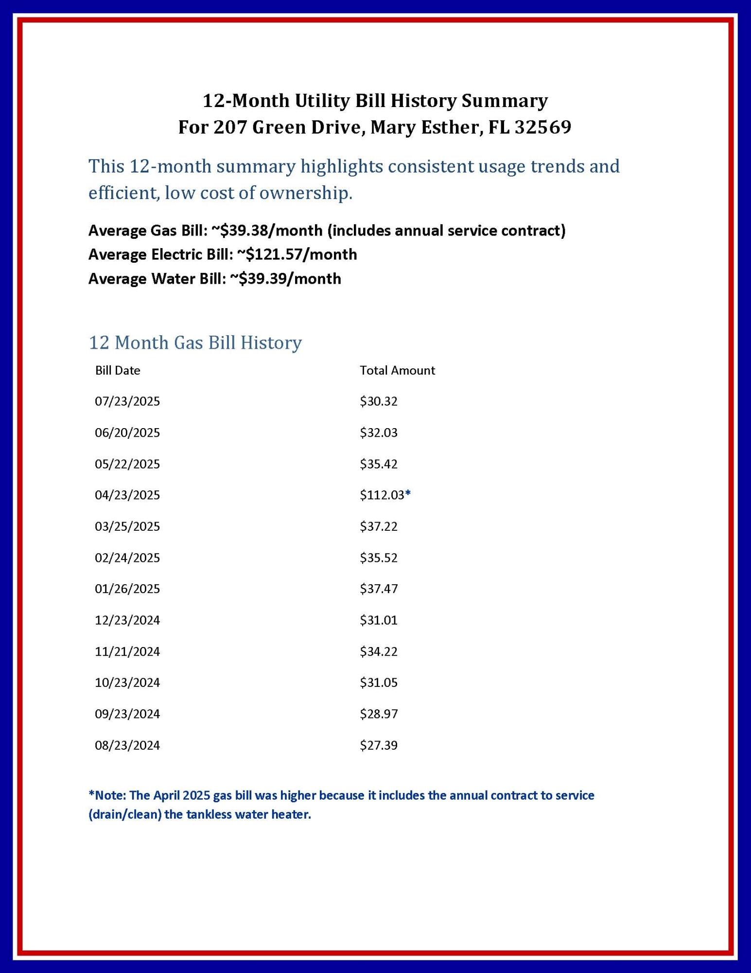 Beautiful One-Owner Brick & Vinyl Home with Modern Upgrades and Whole-House Generator! This impeccably maintained home is move-in ready and ideally located near beaches, military bases, and shopping. With an acceptable offer, sellers will include a brand-new roof (the current roof is original and in great condition). Inside, you'll find elegant Spanish lace ceilings (no popcorn!) and low-maintenance tile flooring throughout the main living areas, kitchen, hallway, and baths, with cozy carpet in the bedrooms. The open living and dining area is perfect for entertaining and features an elegant tray ceiling. The kitchen showcases cherry wood cabinetry, granite countertops, stainless steel appliances, and a natural gas stove! The spacious master suite features a beautifully updated bath with a double-sink vanity, modern fixtures and mirrors, luxury vinyl plank flooring, and a tub/shower combination with glass doors. A large, well-lit linen closet adds extra storage convenience. Guest bedrooms are comfortably sized, and the guest bath includes an oversized vanity and tile flooring. Step outside to a private backyard oasis designed for enjoying Florida living! It's fully fenced and includes a screened porch, extended patio, storage shed, water softener system, natural gas grill, and wired landscape lighting. Energy efficiency abounds with a 24-SEER Rheem HVAC system (new in 2022) and a tankless Rinnai gas water heater (new in 2013.) Added peace of mind comes with a Sentricon termite bond (Bryan Pest Control) and a whole-house Generac gas generator. The home also offers a two-car garage, lightweight "Fabric Shield" hurricane shutters, three Ring cameras, a Ring doorbell, a gas stove and gas dryer (convertible to electric), and three unused 220-volt breakers in the garage panel that could be used for an electric vehicle charger or tank water heater. Sellers prefer a November closing and may request a brief one-to-two-week post-occupancy. Call today to schedule your private showing of this beautiful, upgraded home!