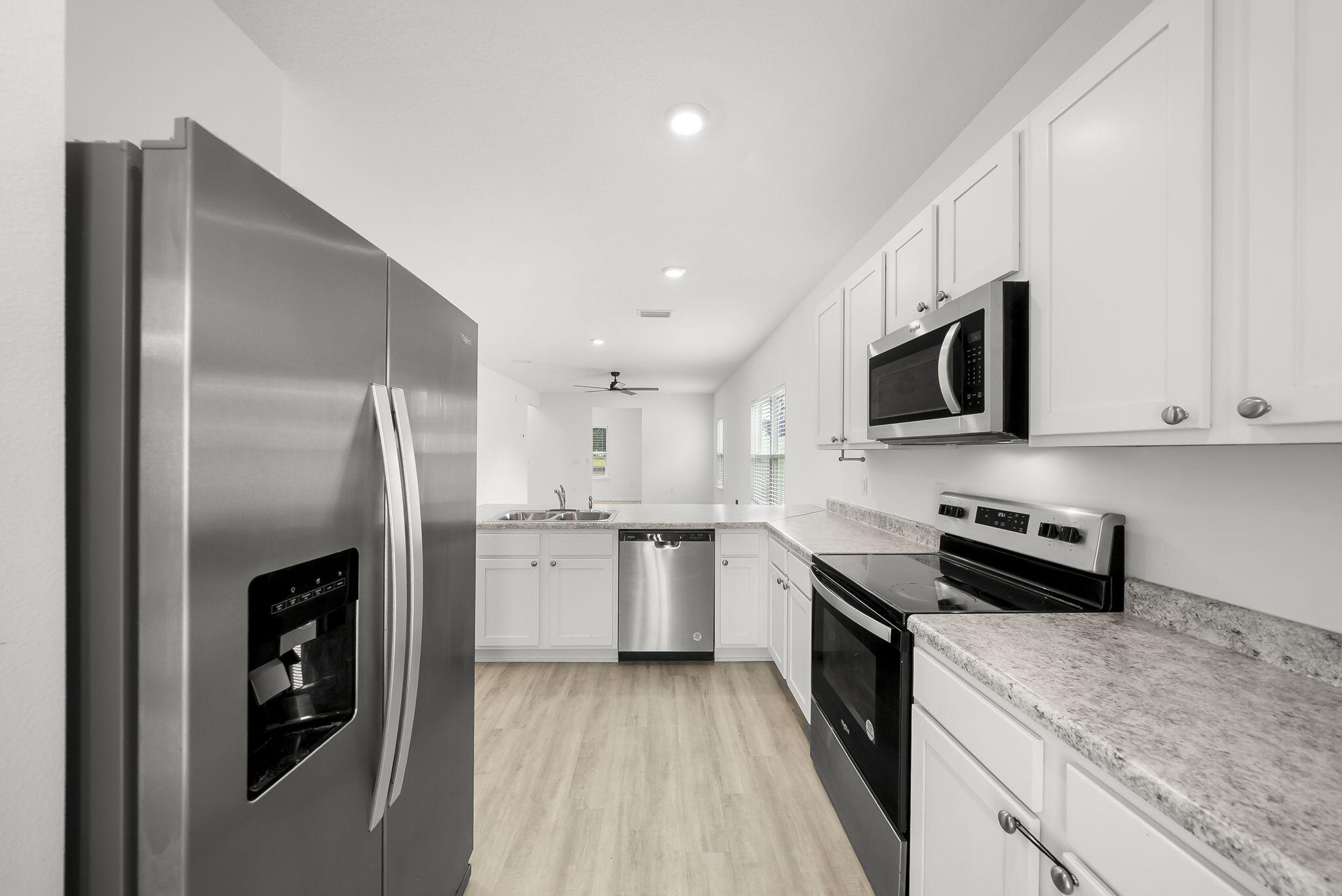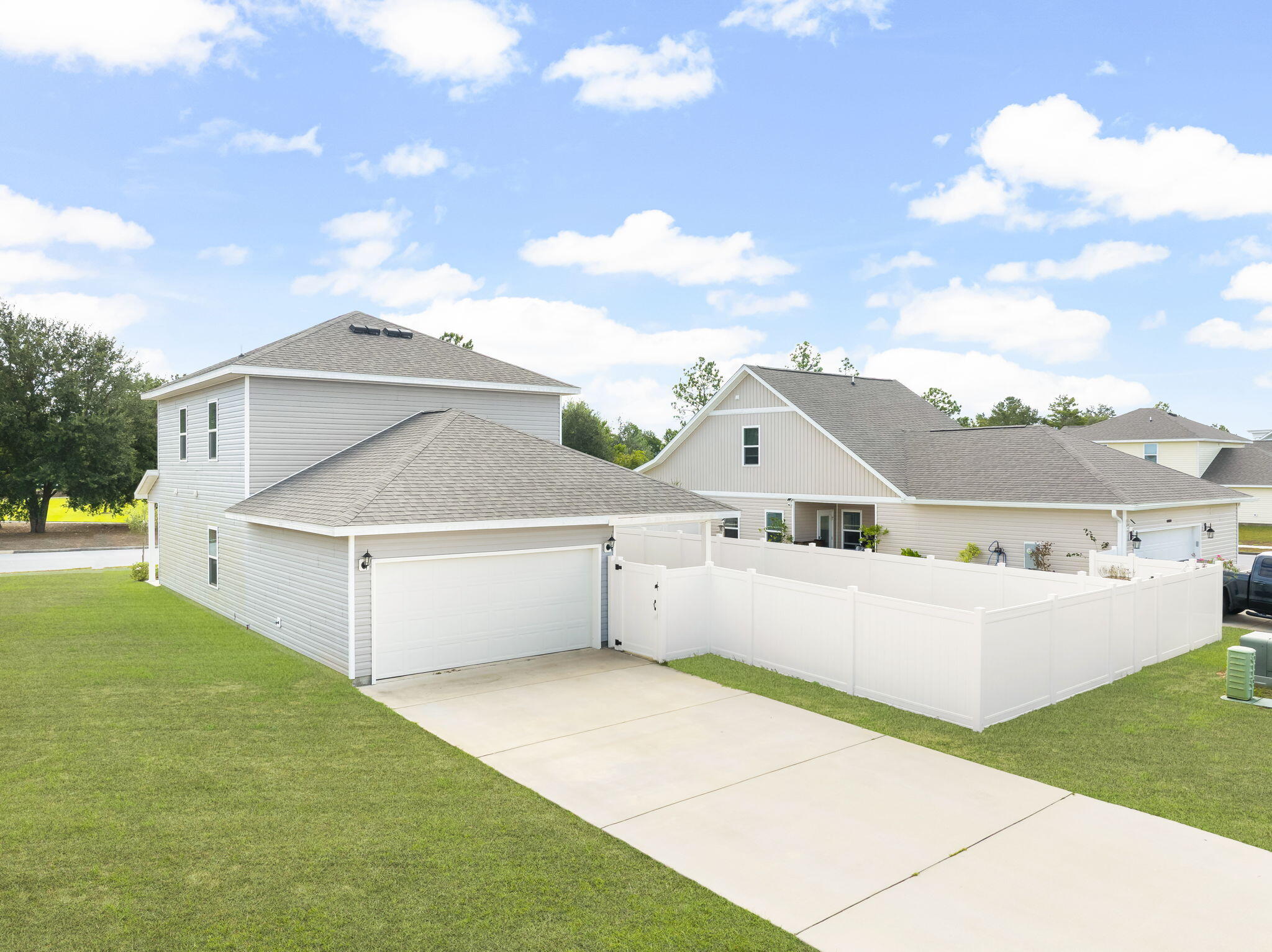TWO MONTHS FREE RENT WITH MOVE IN BY 11/1! Like new, 4 bed, 2.5 bath single-family home in Freeport, FL w/Fenced Yard and Pet Friendly! Sitting directly across the street from a 7+ acre greenspace park, featuring a walking path, trees and large grass areas to play, picnic and more! This modern home features 9' ceilings throughout, updated appliances, LVP flooring in kitchen, dining and living room, and plush carpet in bedrooms, plenty of storage closets, first floor master, double vanity sinks in both full baths, additional living room (14'x13') upstairs, dual zone AC, fenced yard, covered patio and porch, garage, and long driveway. Pets allowed, restrictions apply. If approved, $25mo pet rent per pet will apply plus a one-time $250 non-refundable pet fee. .