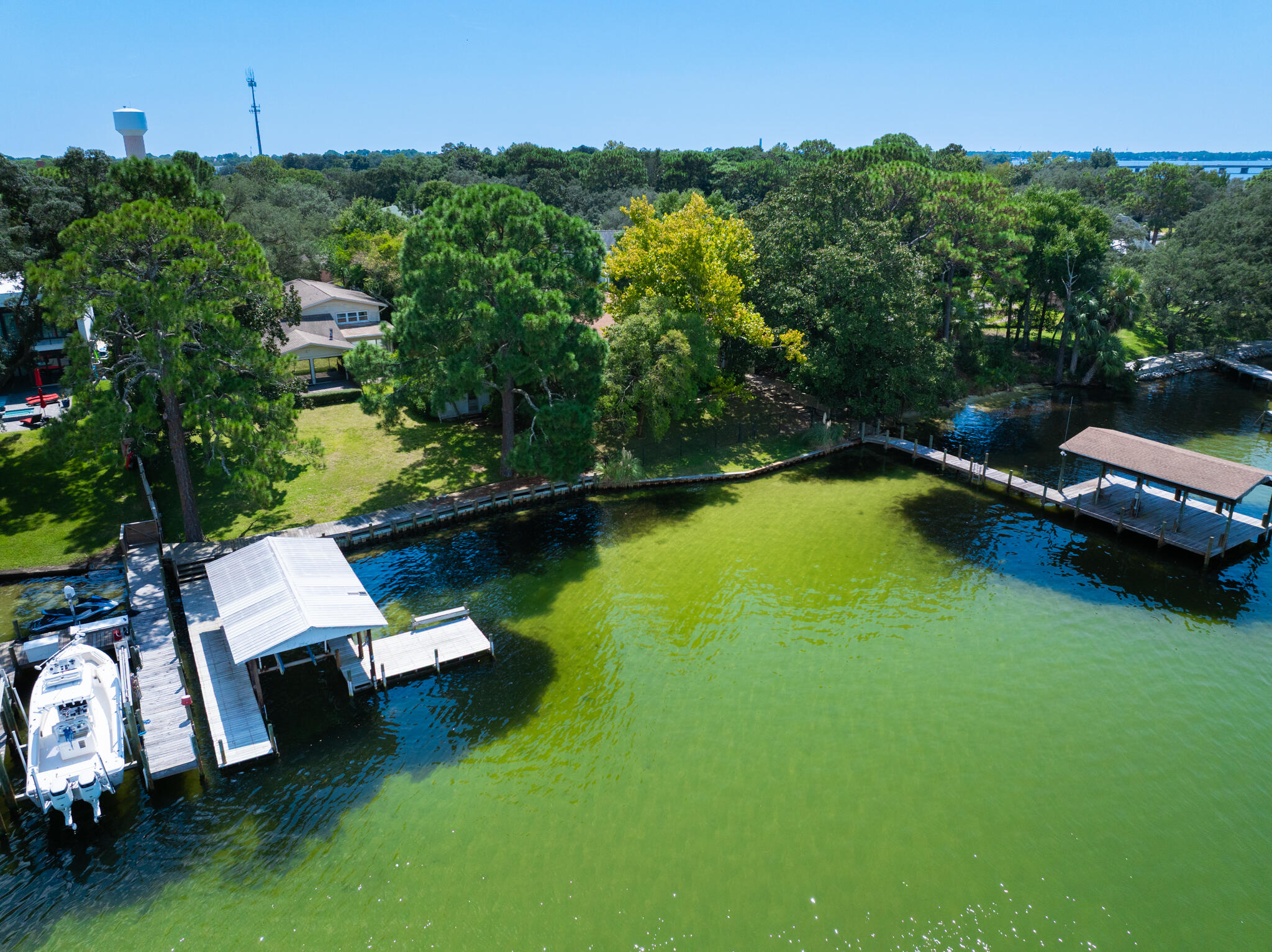 MOTIVATED SELLERS! NEW PRICE! Enjoy peaceful waterfront living & convenience in the heart of Shalimar! How about coffee in the Florida Room each morning overlooking a panoramic view of the tranquil cove? Your boat is always on the lift and ready at the dock for your short trip to the Choctawhatchee Bay! Highlights of this vintage gem include a Generac whole-house generator...original hardwood...sunny Florida Room...granite countertops...brand-new stainless-steel refrigerator...gas fireplace surrounded by ornate wooden mantel...crown moulding...hobby room area has great potential as office, additional bedroom or playroom...be sure to check out unique bathroom just off the garage in basement foyer...detached workshop (300sq') makes a great artist's shed or man cave! Truly a must-see!