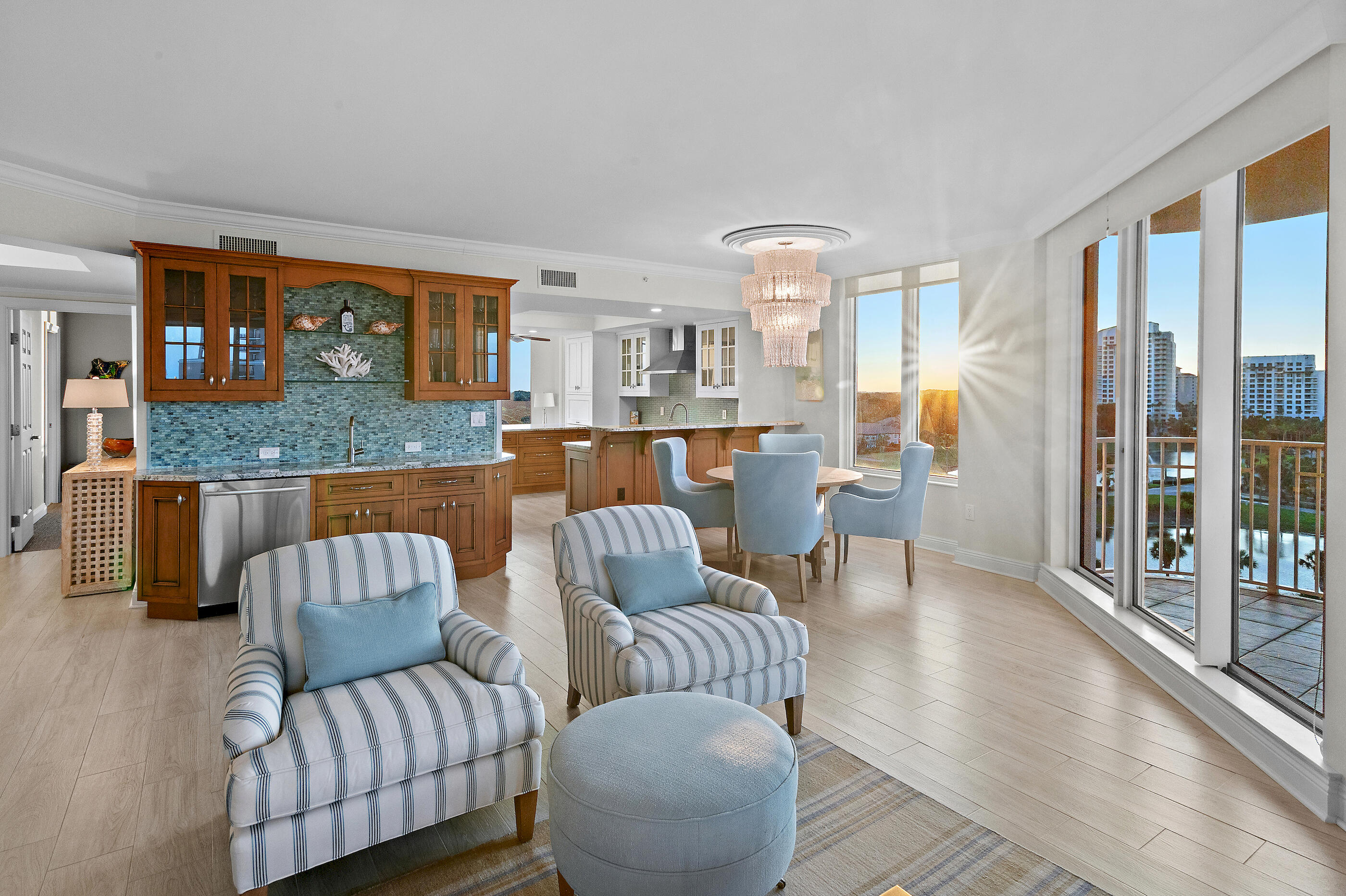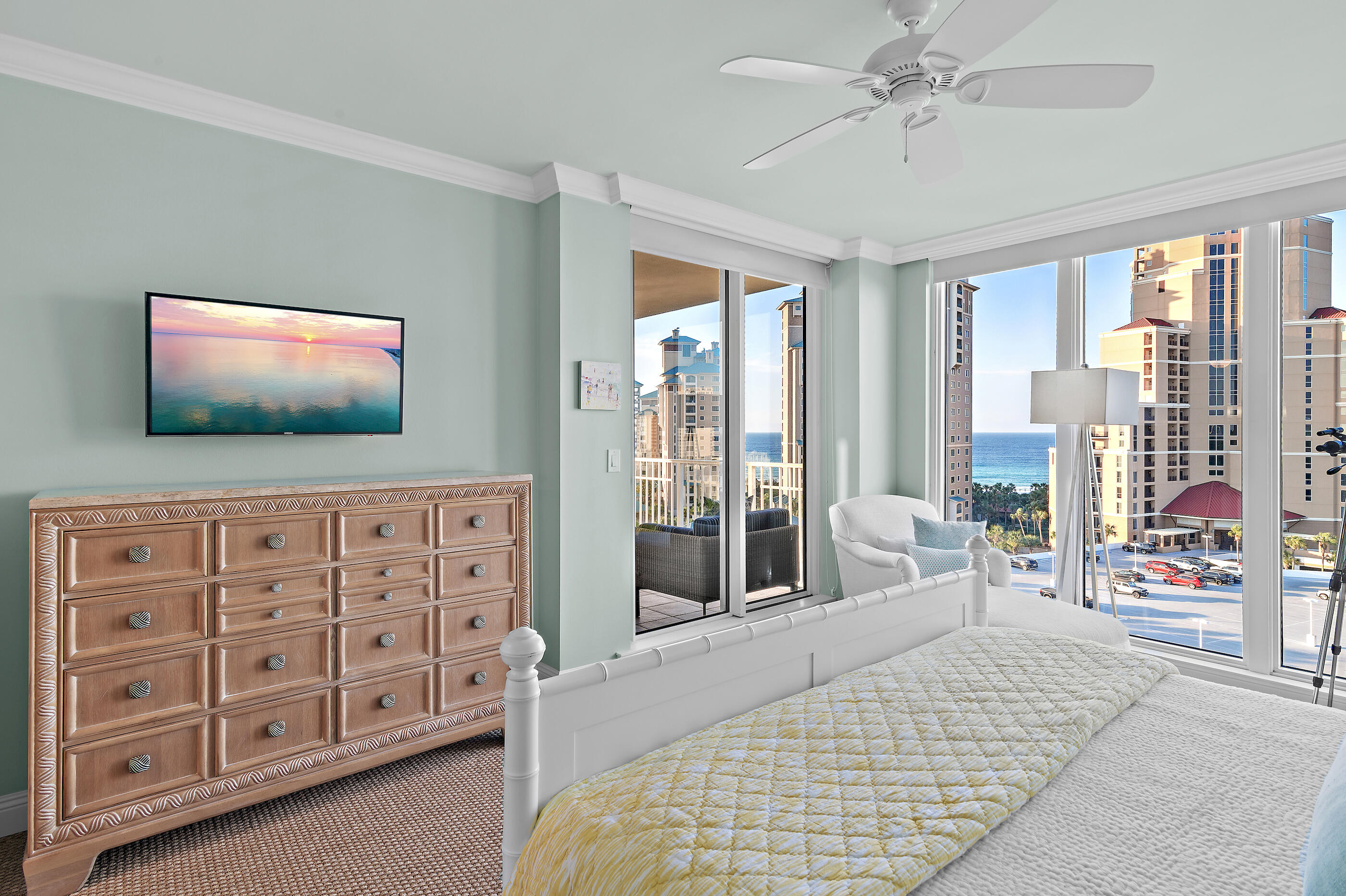 Discover an exceptional opportunity on the 9th floor of One Beach Club, where panoramic views stretch for miles along the Gulf Coast -- all the way to Panama City Beach. This rare end-unit residence boasts a coveted wrap-around balcony, capturing vistas that create a stunning backdrop for everyday living.Inside, the home is presented in pristine condition and offered fully furnished, making it ready for immediate enjoyment. Thoughtful design allows natural light to pour into every room, highlighting the open floor plan that seamlessly blends indoor and outdoor living.A deeded golf cart space with a 6-seater golf cart is included -- a valuable asset within the resort, providing effortless access to all that Sandestin(r) Golf and Beach Resort(r) offers.Ownership at One Beach Club provides access to the resort's private beach club, enhancing the experience with beach chair set-ups, a gulf-front pool, restaurant, and a variety of activities for all ages. On site, residents also enjoy a resort-style pool, fitness center, covered parking and guest suites. Beyond the property, the resort offers: