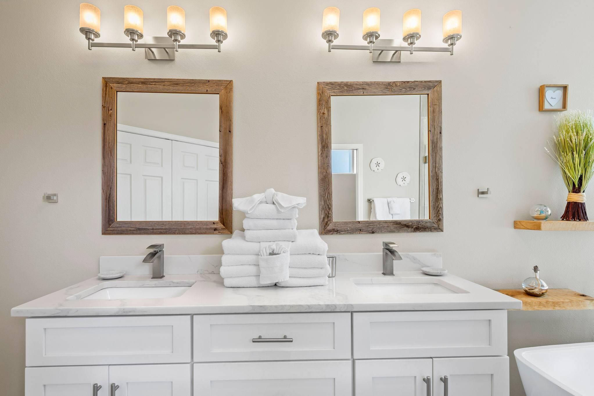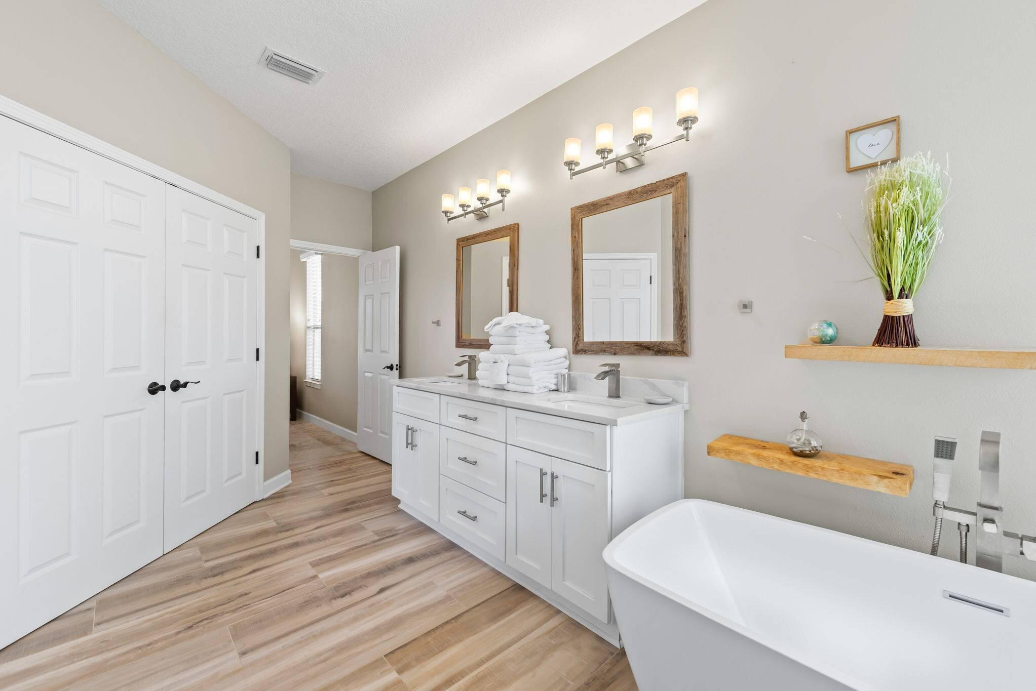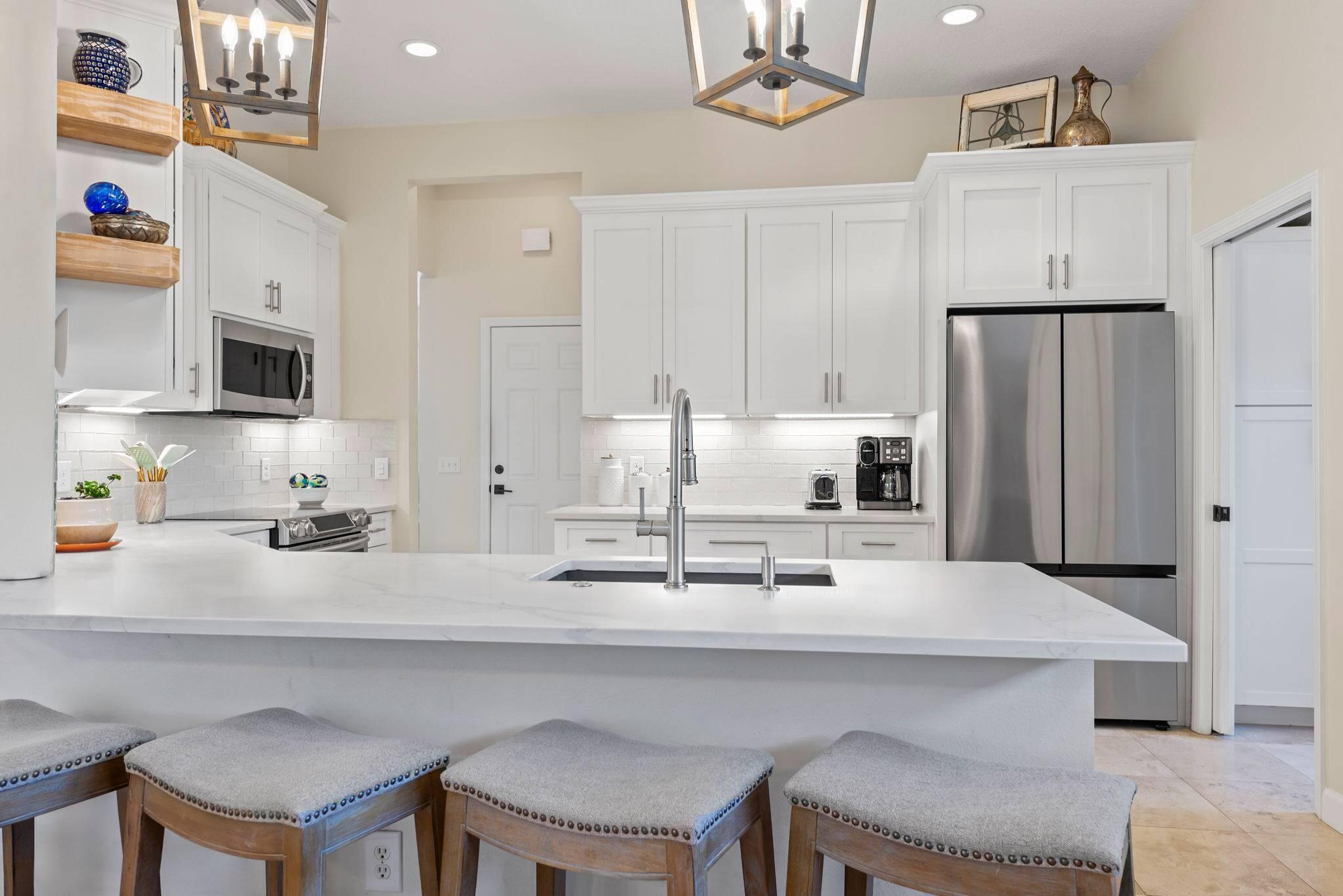 Open Sun 9/21 1- 2:30 Imagine waking up steps from the sugar-white sands and emerald Gulf waters with salty breezes and the sound of waves calling you outside. That's the lifestyle in Destiny East--a neighborhood nestled between Scenic Hwy 98 and U.S. 98, less than a 5-minute golf-cart ride (or a 10-minute stroll) to the beach. Club Destiny crowns the community with 2 tennis courts, a mini-theater, playground, and a resort-style pool complex that turns every day into vacation. Set on one of the largest lots in the neighborhood and no neighbors behind--this home backs to a peaceful path that winds to Lake Destiny. Inside, coastal elegance shines through a quartz-topped kitchen with high-end appliances, soaring 9- to 11-foot ceilings, and a double-sided fireplace. Owners are licensed Agents