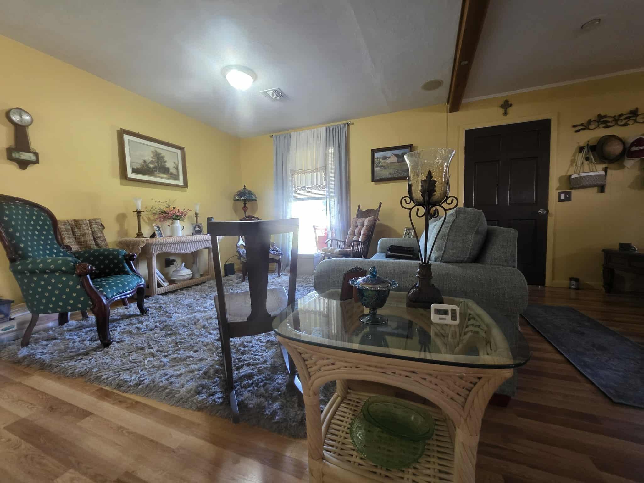 Located on over 0.60 of an acre this 2 BR / 1BA home has so much to offer! All brick with metal roof welcomes you with a covered front porch into an open floor plan concept! Home has a large open kitchen, dining, and living room concept along with 2 great size bedrooms and 1 large bath. The home also includes an amazing large family room perfect for family gatherings, and afternoon relaxing. The property has laminate flooring, tile as well as carpet and has been well maintained and is move in ready at this price. The property has a great side yard for relaxing with a fire pit along with a fenced area for your animals and a greenhouse. The yard has entrances from Lakewood as well as Stateline Road and the yard includes fruit trees and well as pecan trees!