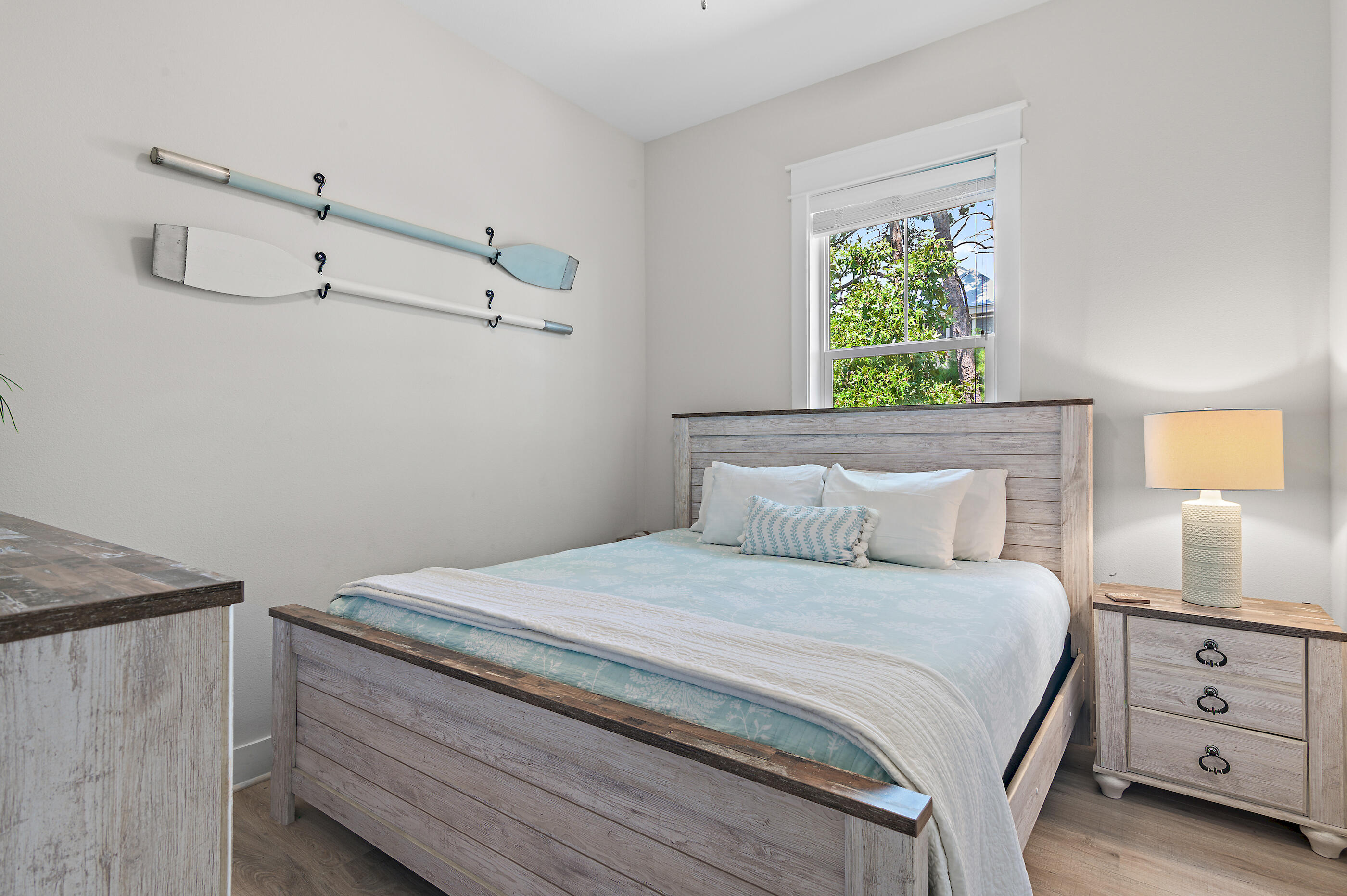 Uniquely bordered by wide and lush preserve areas, ''Mint to Relax'' is a true oasis nestled within the resort-style community of Prominence. Upon initial approach, the beautifully curated interiors are centered around the woodland akin to the rear, offering a serene setting while providing an inviting glow and background over the spacious living space. The gourmet kitchen designed for both functionality and entertaining boasts elegant quartz countertops, a striking glass backsplash, a lux appliance package with a gas cooktop, and a contrasted island with integrated seating. With picturesque views of the pine canopies, the primary suite boasts custom tray ceilings, a cozy seating area and newly installed engineered flooring that is carried throughout the 2nd level. The spa-like ensuite offers a double vanity, a spacious walk-in wet room with a rain shower, and ample storage. A junior suite with king size bed and bunk room with a double set of built-in bunks are each generous in size, each adorned with a coastal flair. They share a beautifully appointed bath with floor to ceiling tile with a custom glass enclosure.