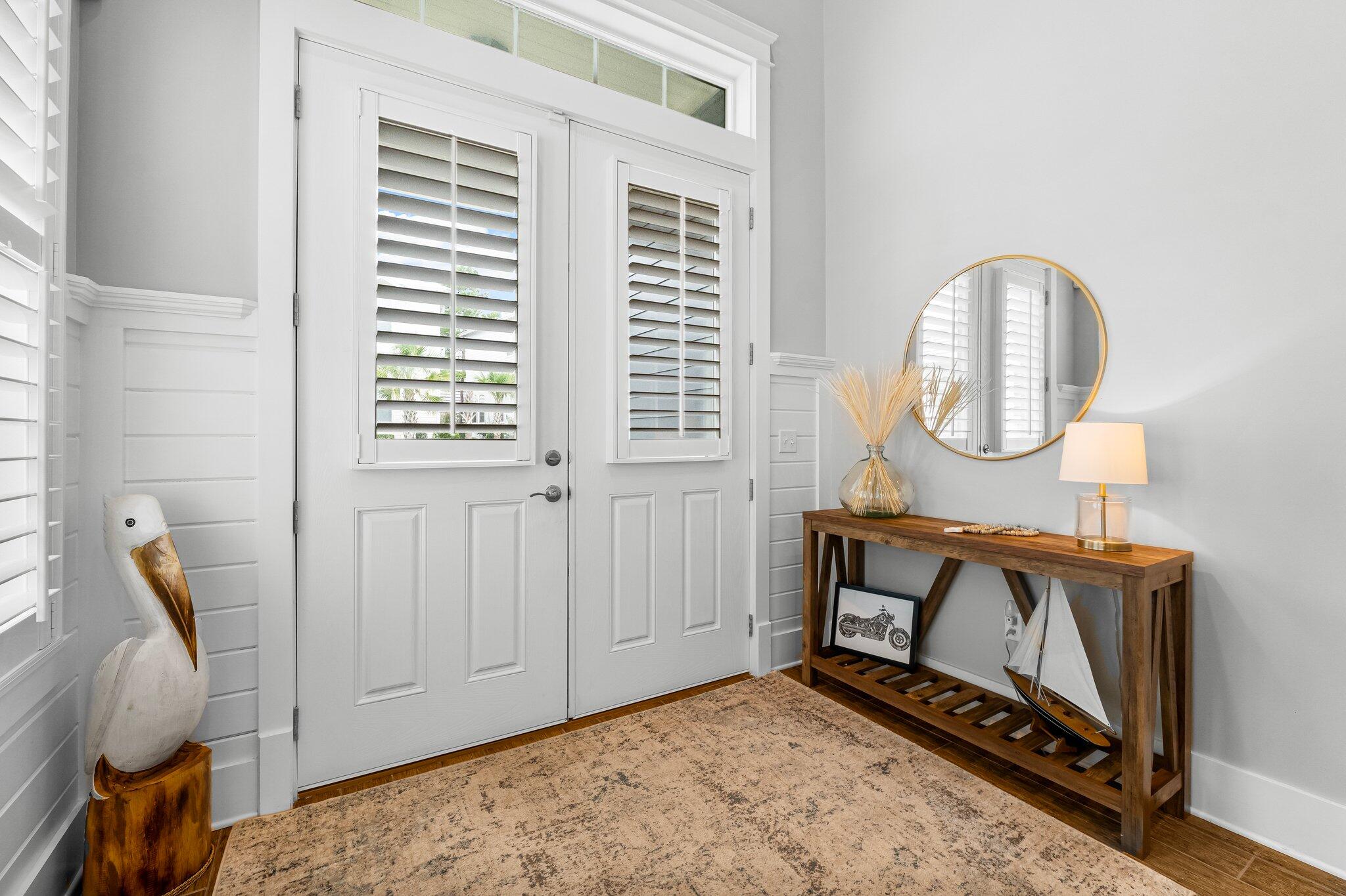 Coastal Luxury living nestled in the heart of Highland Parks on 30A. This fully furnished, turn key home offers 4 spacious bedrooms and 4 luxurious bathrooms across 3,131 square feet of refined living space. Step inside to discover a grand open living area, perfect for entertaining guests or enjoying quiet evenings by the fireplace. The chef's kitchen is a culinary dream, featuring a gas stove with pot filler, granite countertops, a wall oven, and an island that invites gatherings. A huge lock off pantry is perfect for extra storage. High ceilings and crown moldings add a touch of sophistication, while plantation shutters throughout provide privacy and elegant finishes throughout. The primary ensuite is a sanctuary, offering a screened in porch overlooking the Pond and the State Forest for privacy. The primary bathroom offers a soaker tub, double vanity, large walk-in shower with rainforest faucets, along with a double walk in closets for extra storage.