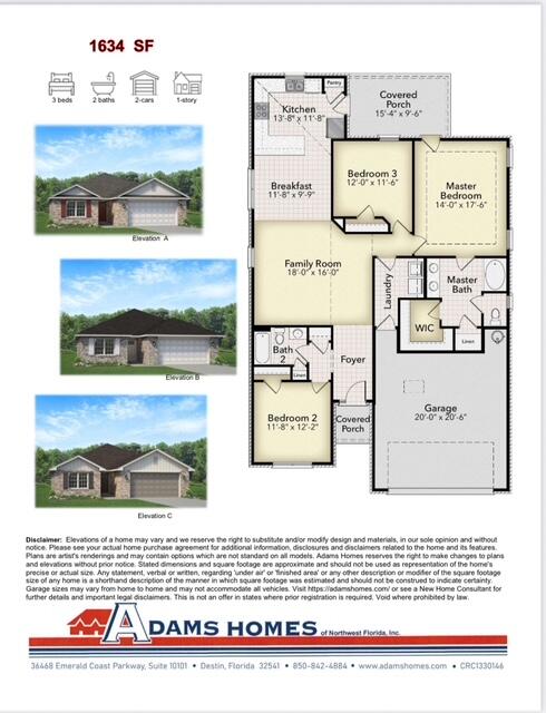 ROOM DIMENSIONS | Family Room : 18.8 x 16 Kitchen : 14.4 x 12 Master Bedroom : 18 x 14.6 Dining Area : 12.2 x 11 Bedroom : 12.4 x 12.8 Bedroom : 12.4 x 11.1 Foyer : 6.6 x 11.6 Covered Porch : 15.5 x 9 Garage : 21 x 20.8 |