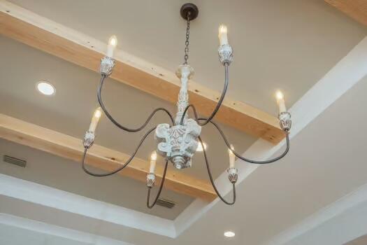 INTERIOR | Ceiling Beamed,Fireplace Gas,Floor Hardwood,Floor Tile,Kitchen Island,Pantry,Split Bedroom,Woodwork Painted |