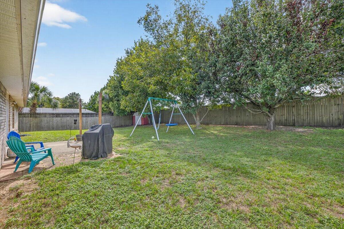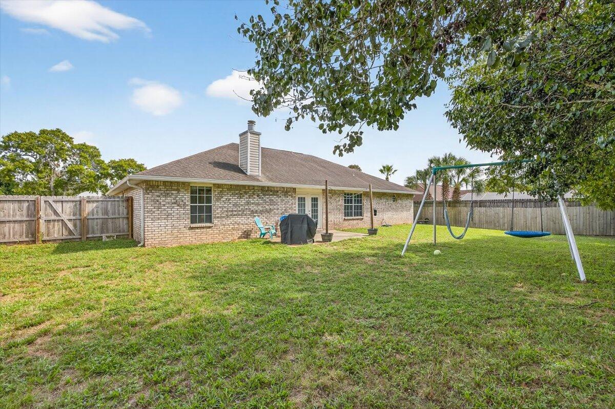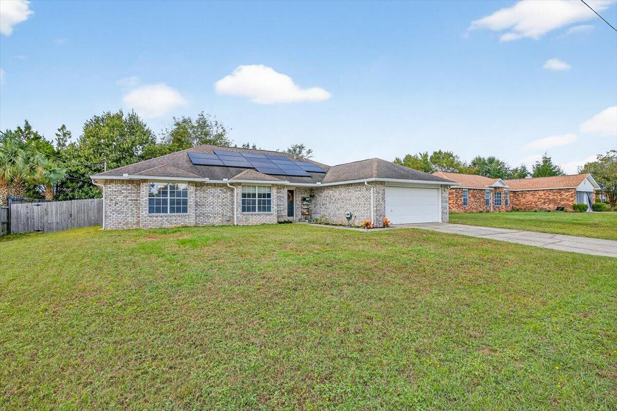 Assumable VA Loan @ 2.675% Located south of I-10 in Westview Estates, this all-brick single-story home offers a welcoming layout with three bedrooms, two full baths, and an additional office or flex room. The living room is bright and open, featuring cathedral ceilings and a fireplace that creates a warm focal point. The kitchen and dining area are designed for everyday functionality while still providing plenty of room for gatherings.The primary suite is spacious and thoughtfully arranged with double vanities, a garden tub, a separate shower, and a walk-in closet. Outside, the fenced backyard includes an open patio and storage building, making it easy to enjoy both leisure and practicality. With its convenient location near schools, shopping, and Eglin AFB, this home blends comfort and accessibility. Schedule your showing today!