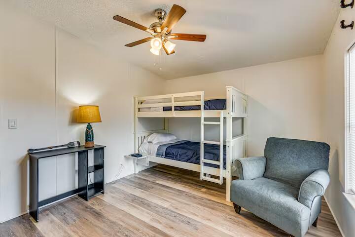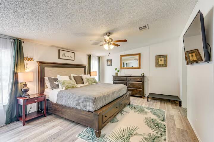 Welcome to this stunningly renovated Gulf Breeze home, perfectly blending modern updates with comfortable living. This 3-bedroom, 2-bathroom, 1,512 sq. ft. residence sits on a peaceful, private lot shaded by majestic Live Oaks, offering both tranquility and convenience near the new Soundside High School. Every detail has been thoughtfully updated--from the new roof and gutters to the inviting front and back porches, sleek wood-look laminate flooring, and freshly painted interiors that create a bright and airy atmosphere. The kitchen is fully equipped with a brand-new stove, built-in microwave, and stylish lighting, making it a joy to cook and entertain. Ceiling fans throughout keep the home comfortable year-round, and the A/C system, only 2 years old, has had ductwork professionally cleaned and partially replaced for optimal performance. Each bedroom boasts spacious walk-in closets, while the master suite offers a luxurious garden tub perfect for relaxing after a long day.