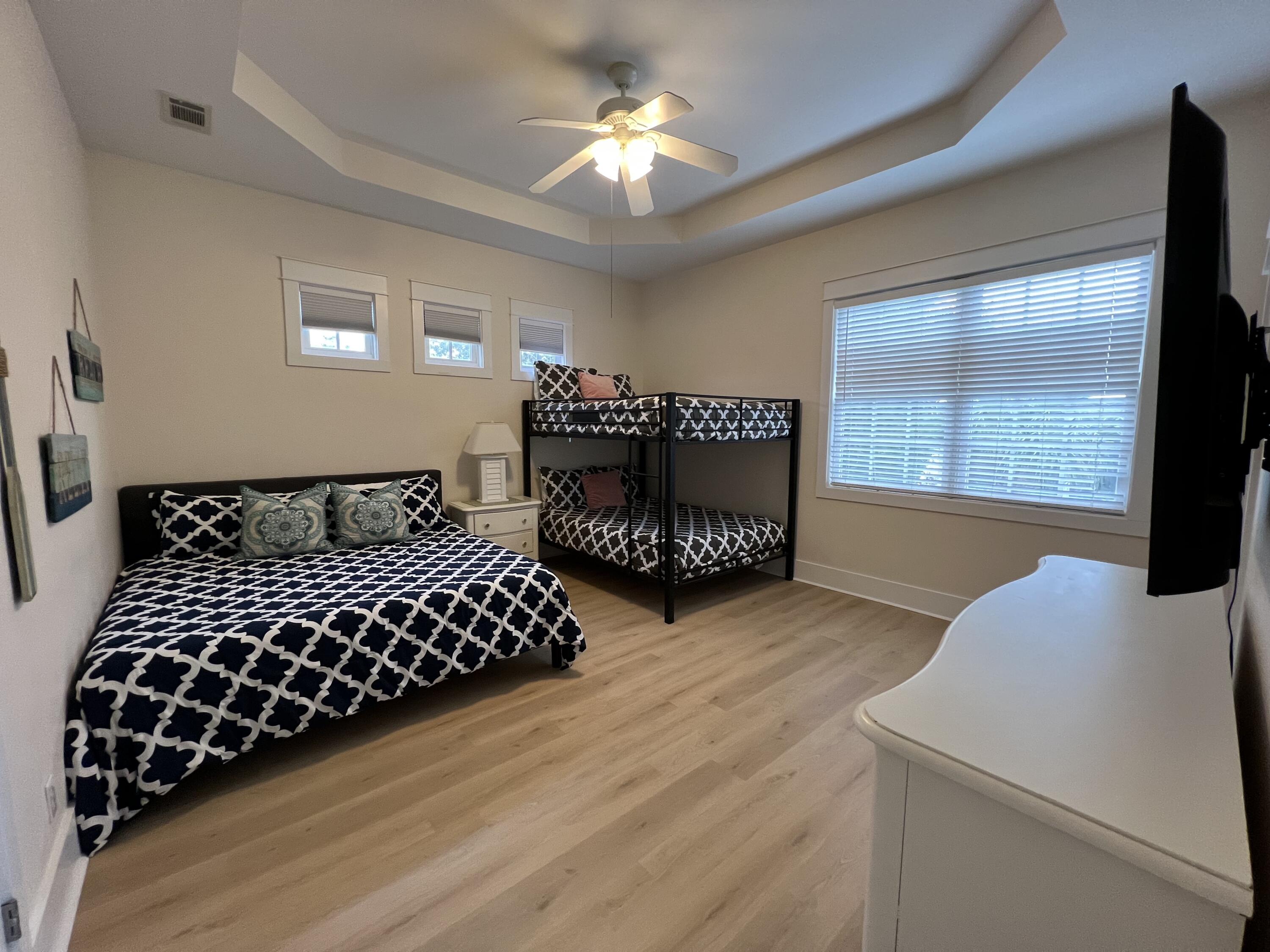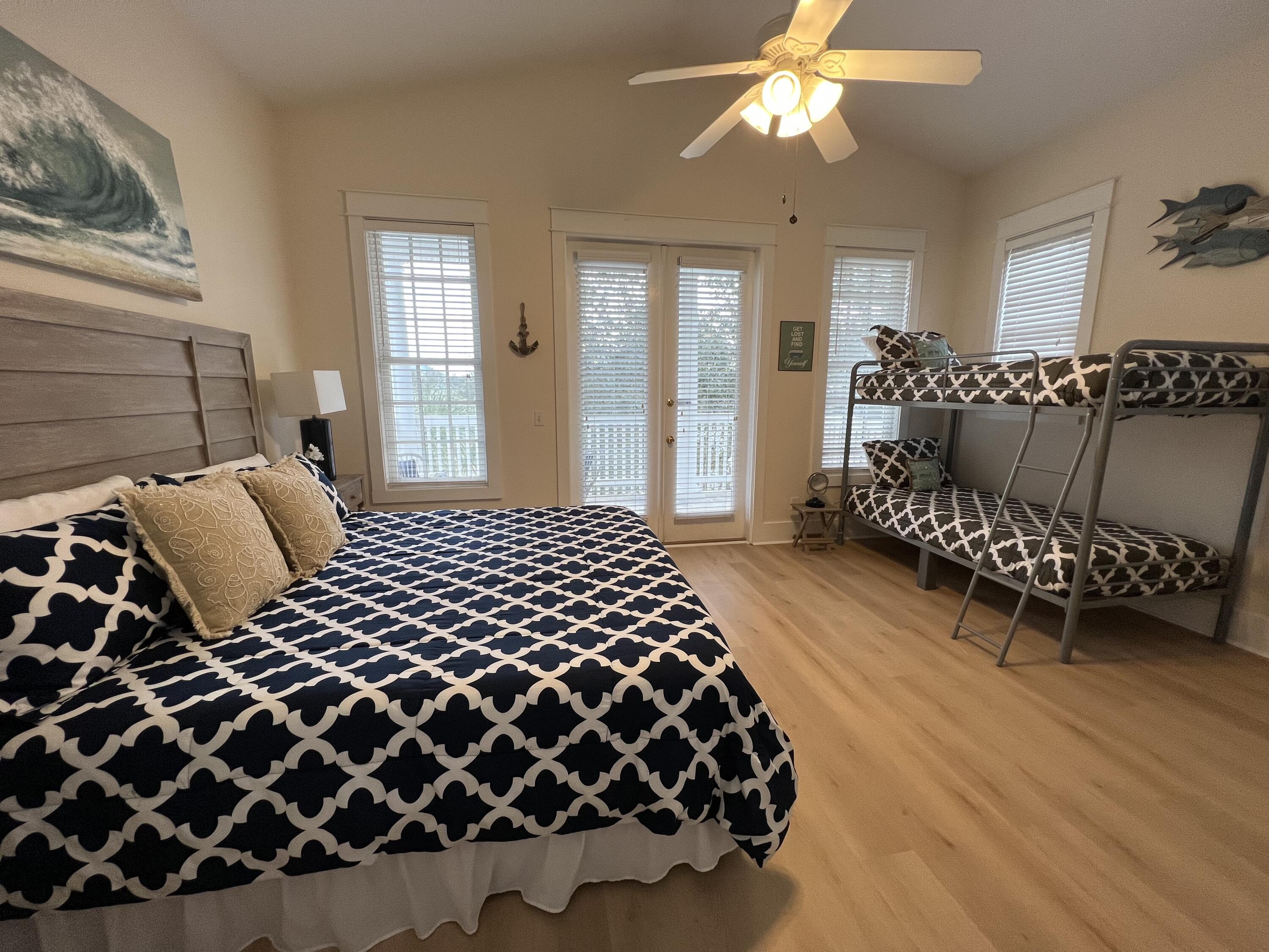 On the second floor, you'll find two additional master bedrooms, each thoughtfully designed to maximize space, privacy, and comfort. Each suite features a king bed plus bunks (queen-over-queen or twin-over-twin), making them perfect for families or groups. Every suite also includes its own private en suite bathroom, ensuring that no guest ever sacrifices comfort. Access to private balconies and porches extends the living space outdoors, creating perfect spots to relax with morning coffee or evening breezes.