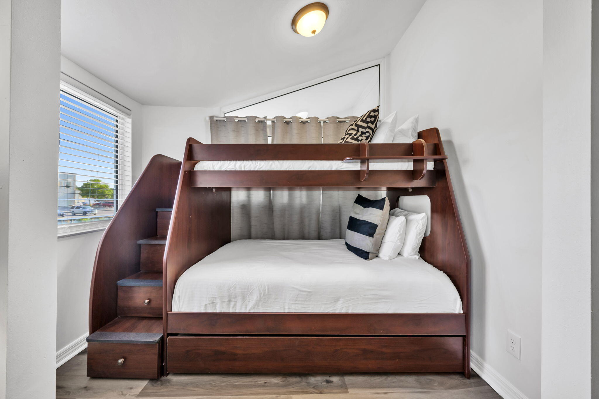 Upstairs, the primary suite includes a king bed, twin bunk bed, and a twin pull-out sofa, along with a private ensuite bath. The guest suite features two queen beds and a twin-over-full bunk bed in a separate sleeping nook - perfect for families or hosting guests. Each bedroom offers ample space and privacy with its own ensuite bathroom.