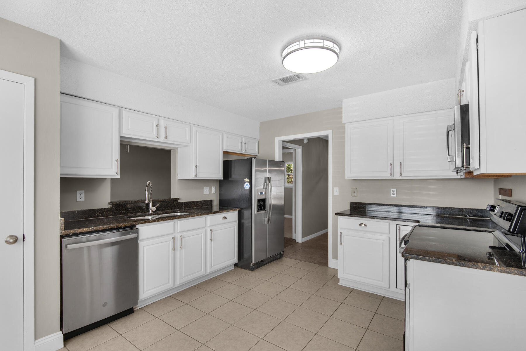Great cul-de-sac living in the heart of Fort Walton Beach. This home has an entire second floor dedicated to the Master Suite. Boasting a huge walk-in closet and a beautifully remodeled bathroom with a soaking tub/shower combo. There is a smaller master suite on the first floor with wood plank tile and over-sized vanity in the bath. Two more bedrooms and a full bath are located on the first floor. Tons of natural light shines through the eat-in kitchen. Granite countertops and stainless appliances are ready for the chef in your family. A huge bonus room off of the kitchen, a large laundry room and a designated dining area make living easy with tons of space! You won't believe the oversized living room/den area. This space has a door to the backyard for ease of use. Speaking of the fenced backyard...it is a blank slate and ready for you to make it your own. You've got to see this one!
