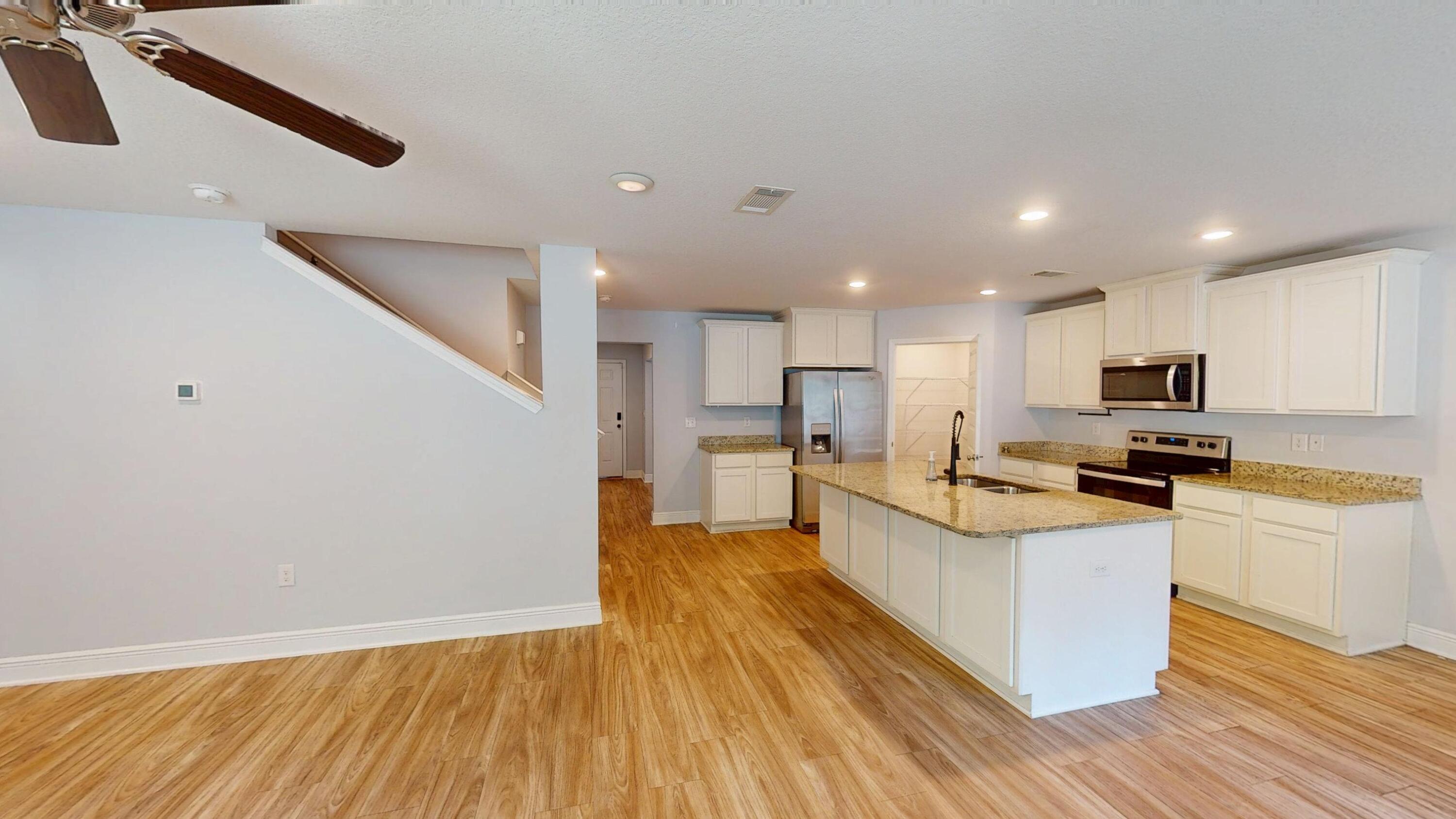 Come view this amazing floor plan that has five bedrooms and three bathrooms. The home has luxury vinyl plank on the first floor and carpet in the bedrooms and second floor. The kitchen has shaker cabinets, stainless steel appliances and a large island that opens up into the living room area. The master suite is on the second floor and has a walk in closet and walk in shower. There is also an assumable VA mortgage available on this listing.