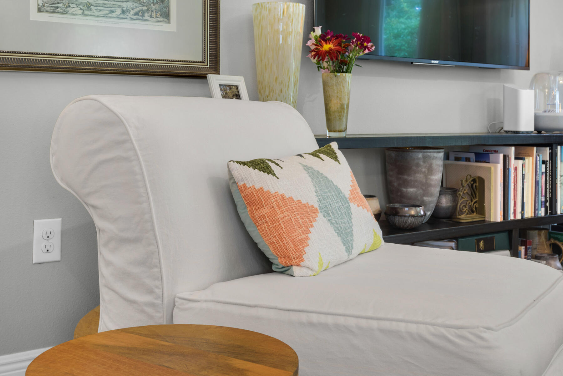Low HOA in this a quaint wooded neighborhood on a cul de sac.Next to pool and mail boxes. This Craftsman style cottage. Beautiful open floor plan. Lots of light and in immaculate condition. The back yard is a nature lovers delight. 13 Azaleas, 3 live oaks, 2 Autumn Blaze maples, productive blueberry bushes, 2 small orange trees, 1 Meyer lemon. Split bedrooms for extra privacy, porcelain tile throughout entire home. Partially fenced yard, pizza oven, and fire pit included in sale. Close to grocery shopping, parks, library and restaurants. 10' ceilings in living room and 9 ft. in bedrooms. Wood wainscoting in bathroom and reelable wall paper in hallway.