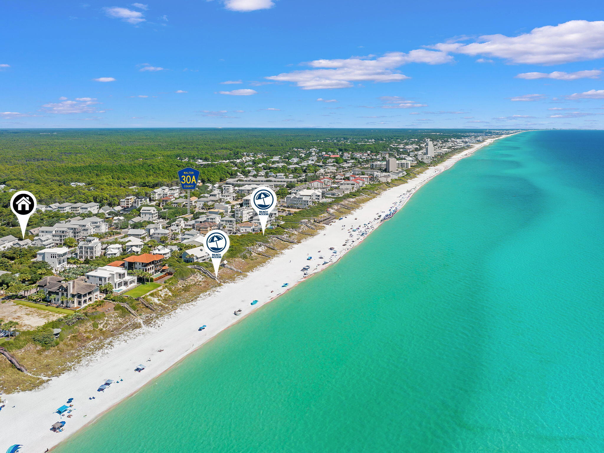 From Hwy 98, turn onto 395 headed South, take left onto 30A. Head East and home will be on your left.