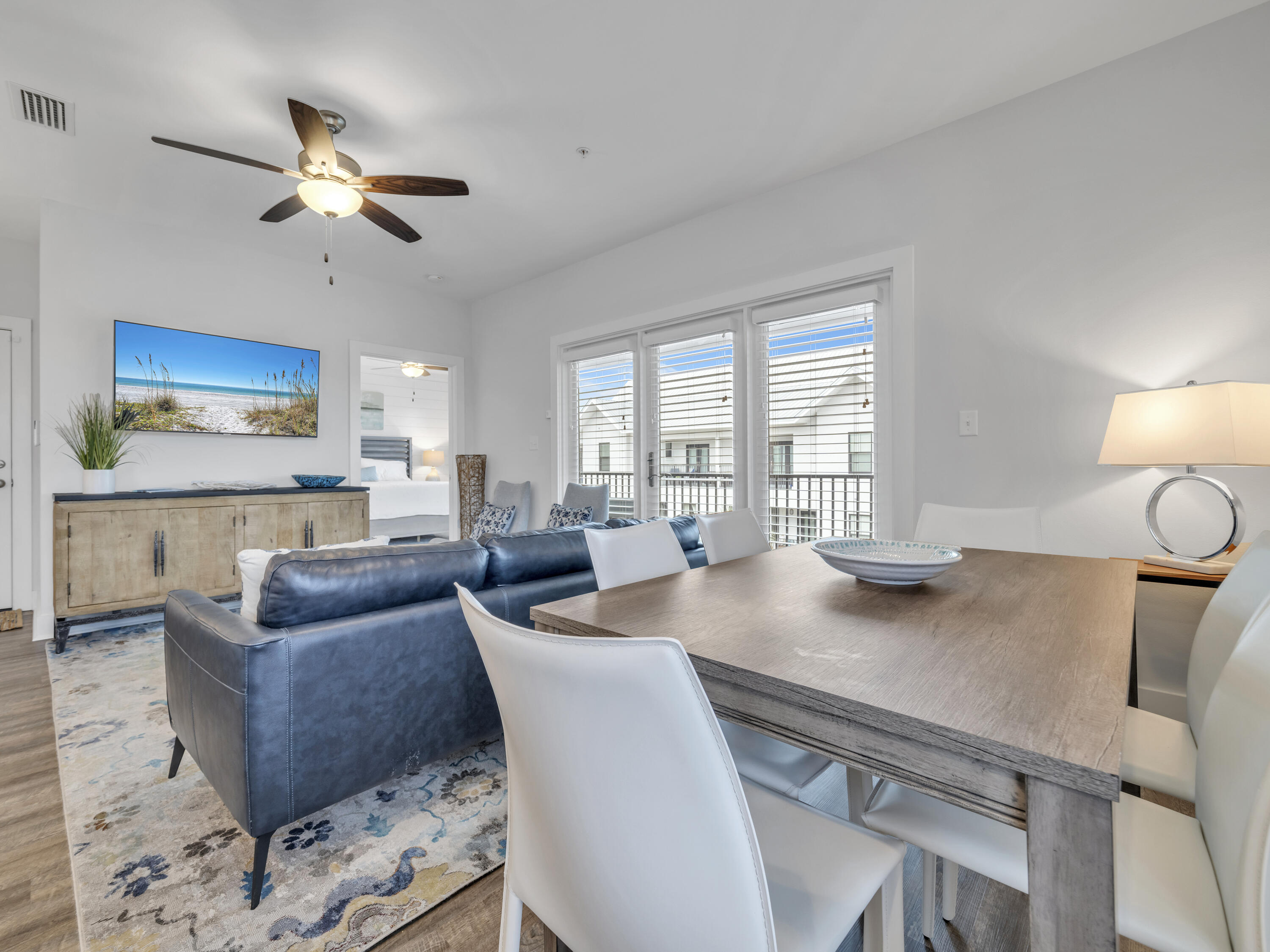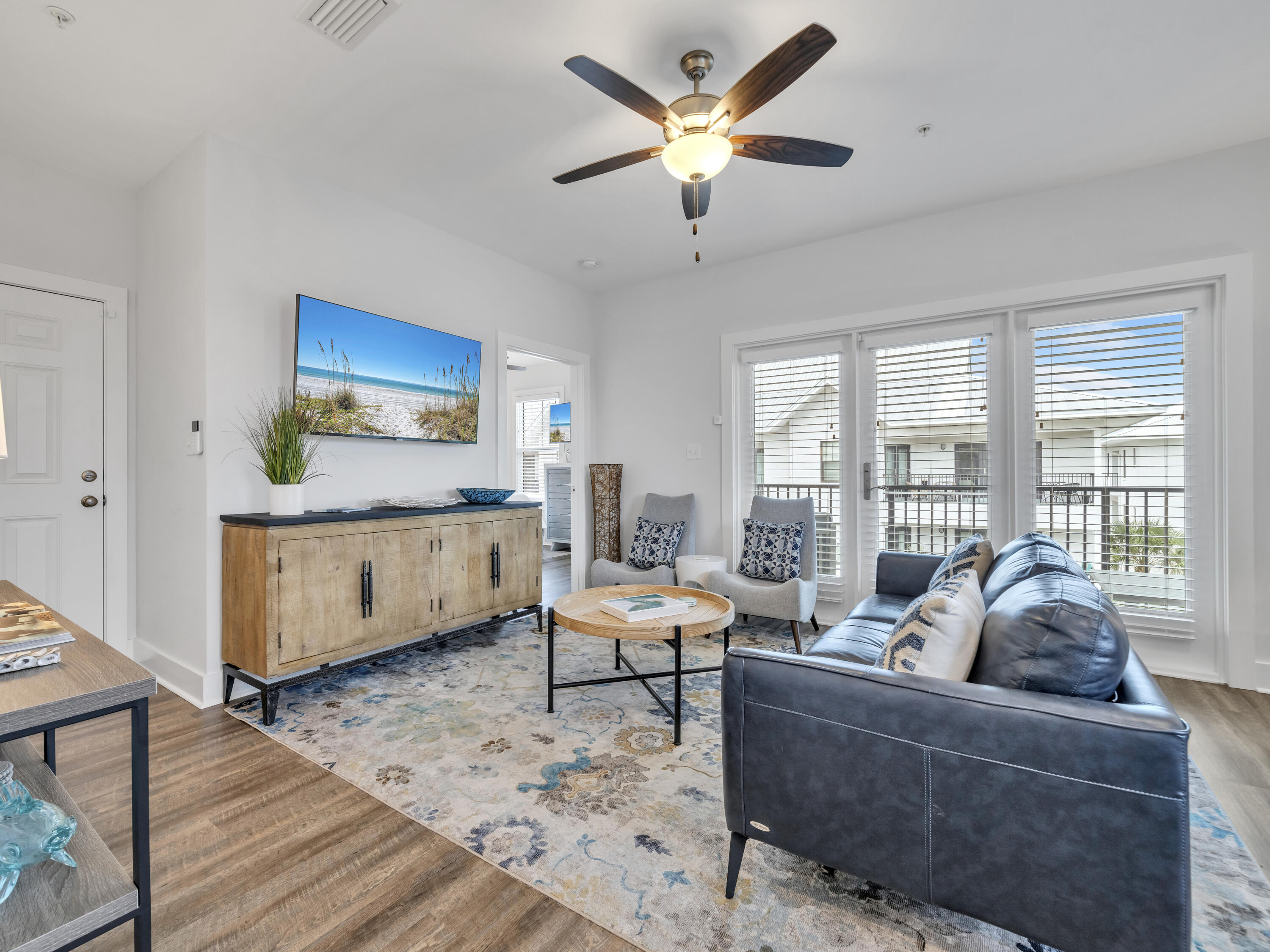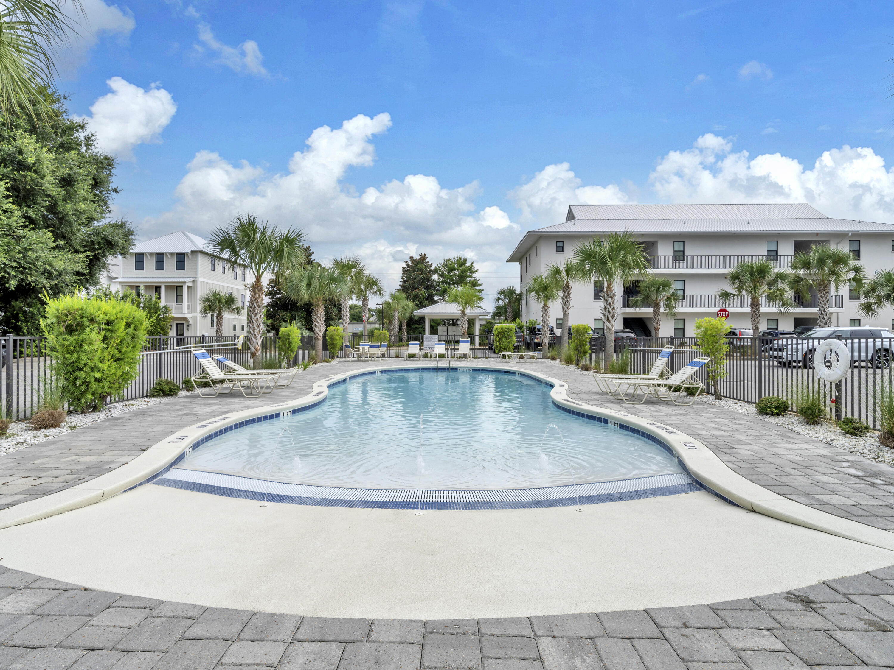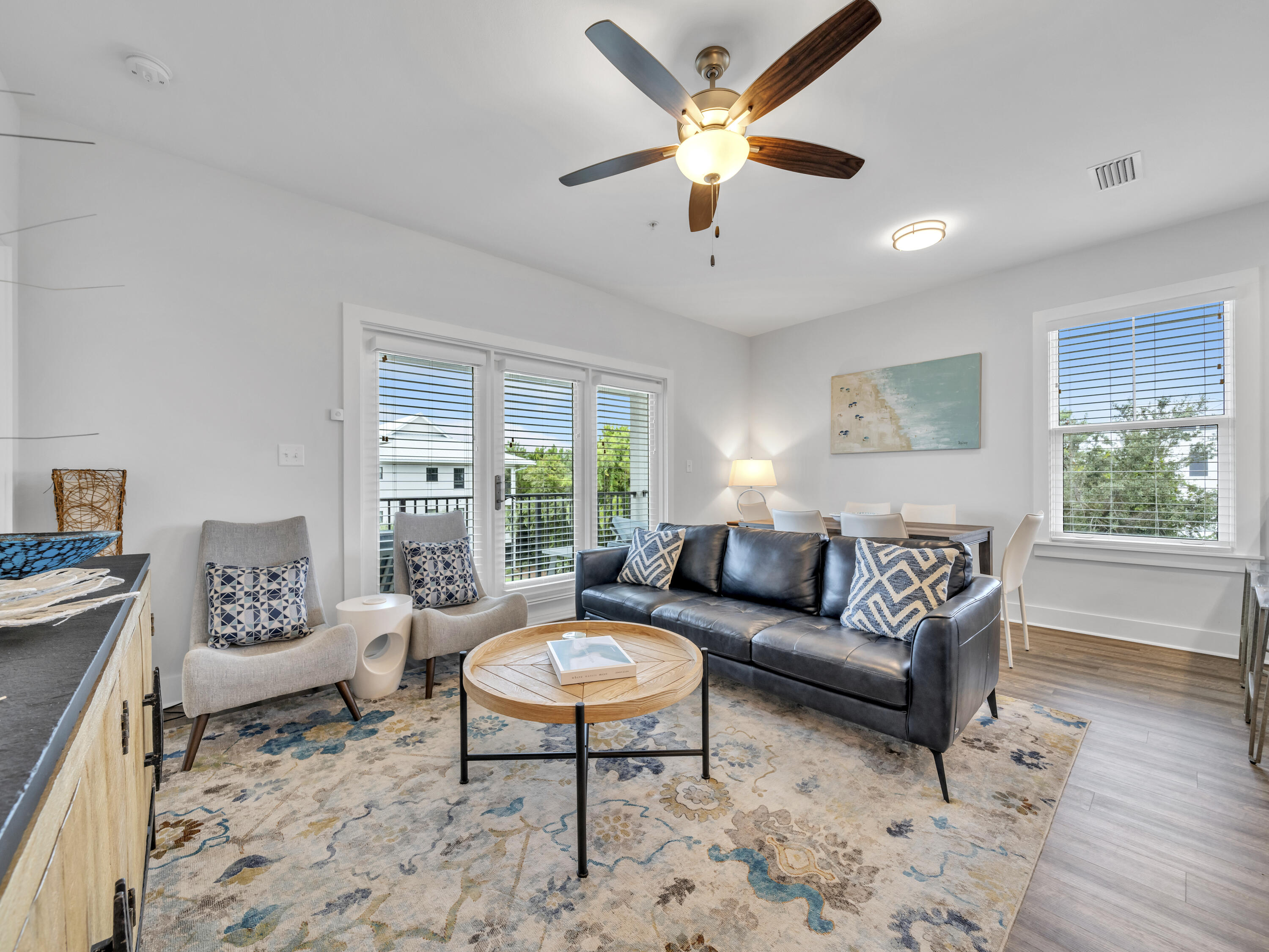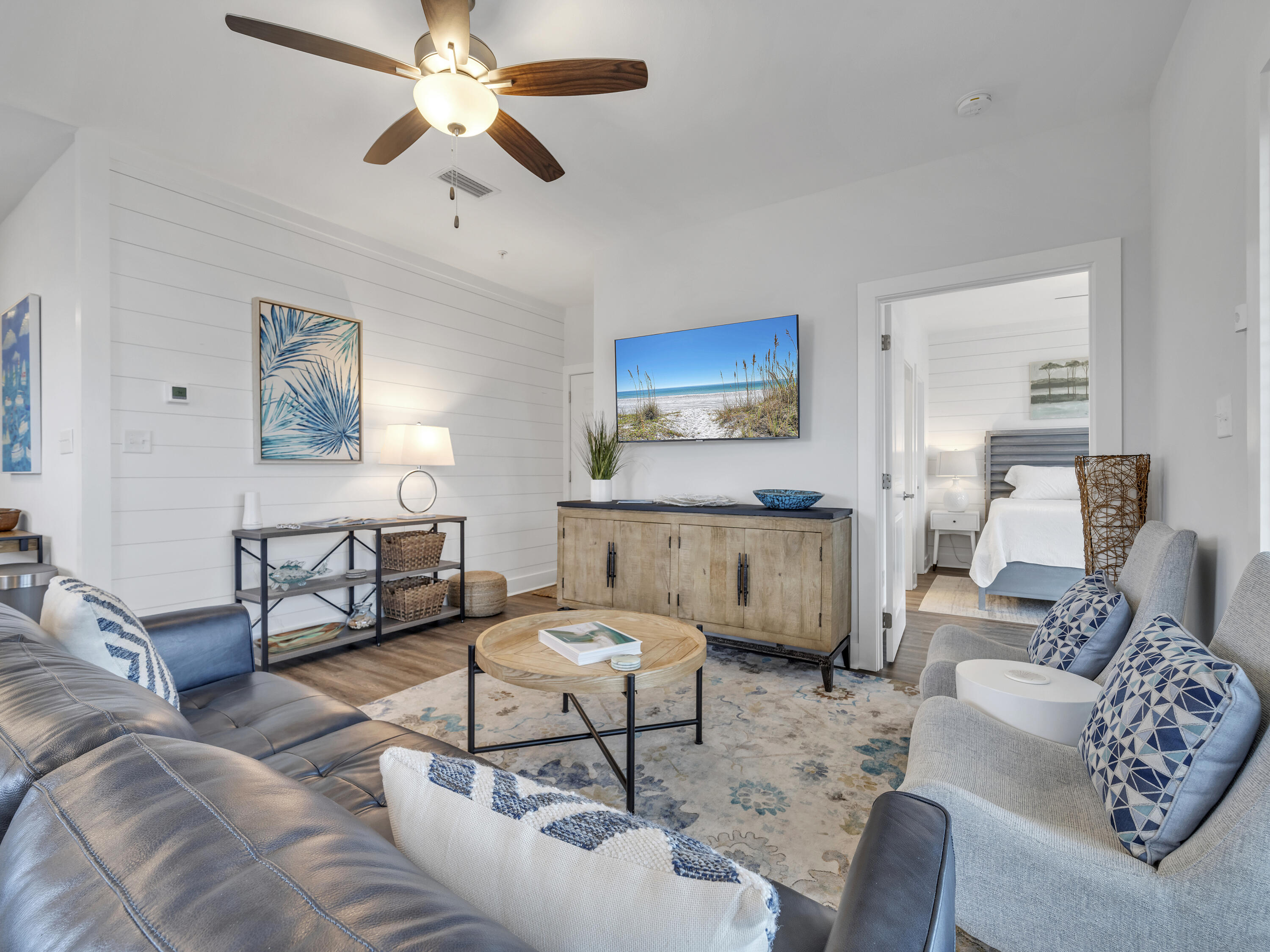 TOP FLOOR MODERN LUXURY WITH VIEWS OF GULF & RENTAL READY!! Enjoy the relaxing beach life on the west end of Scenic Highway 30A in this barely used, top-floor, 3 bed, 2 bath condo at Hidden Lake Condos. Nestled between picturesque Blue Mountain Beach and Gulf Place on 30A, Hidden Lake offers a blend of modern luxury and beachside tranquility. This southern end unit has a peek-a-boo gulf view through the trees and is being sold fully furnished and turnkey for the next owner to enjoy. This upgraded condo features shiplap accent walls, 9 ft. ceilings throughout, modern LVP flooring, and granite countertops in the kitchen and baths, along with high-end coastal chic furnishings. The condo opens to an expansive covered balcony that stretches the length of the unit, perfect for enjoying the serene surroundings. Community amenities include a relaxing zero-entry pool, fully equipped fitness center, and the development is gated for added security. Hidden Lake is positioned within walking distance of two public beach accesses and is centrally located to the many boutique shops and restaurants in Gulf Place and Blue Mountain Beach.