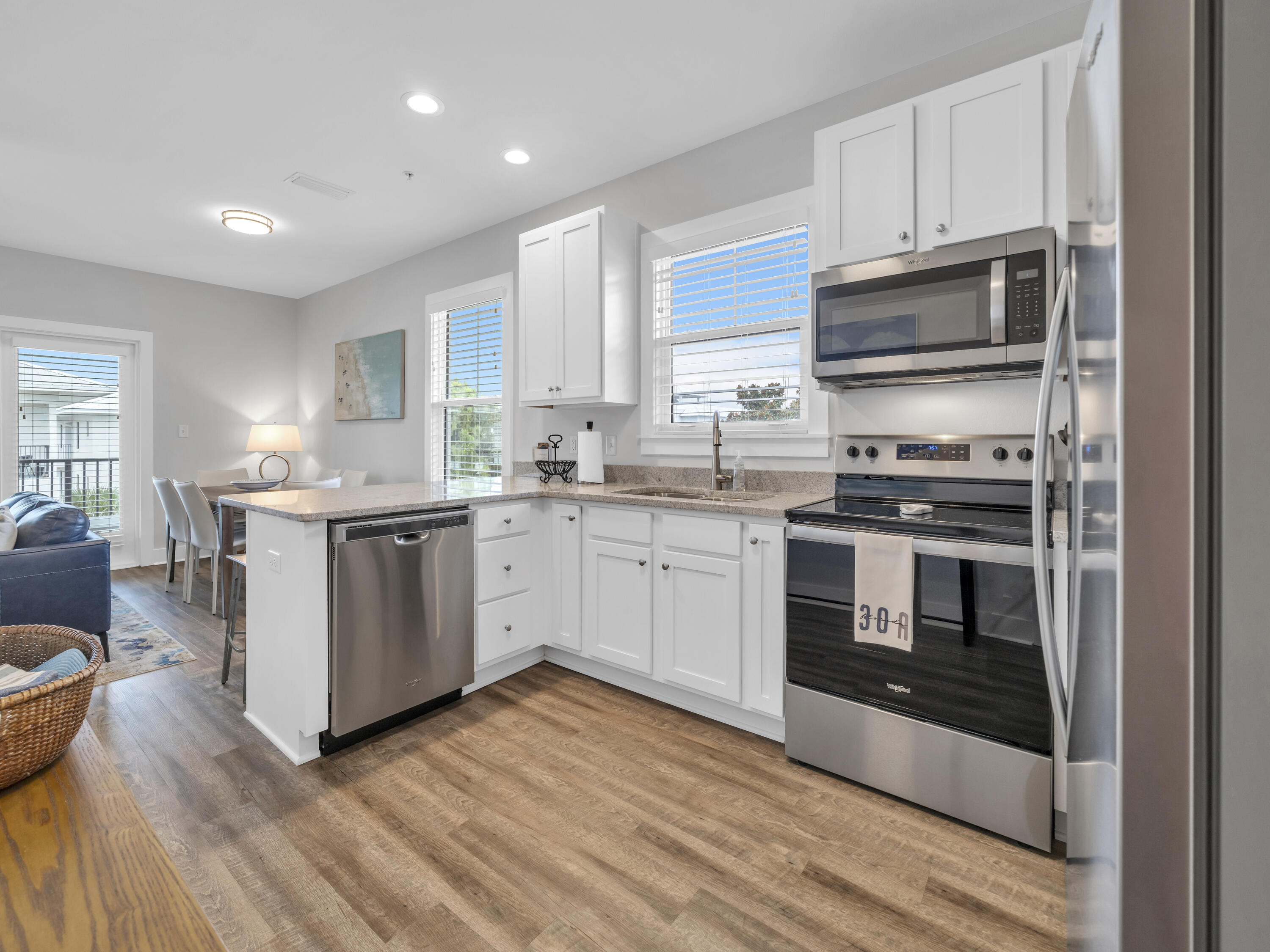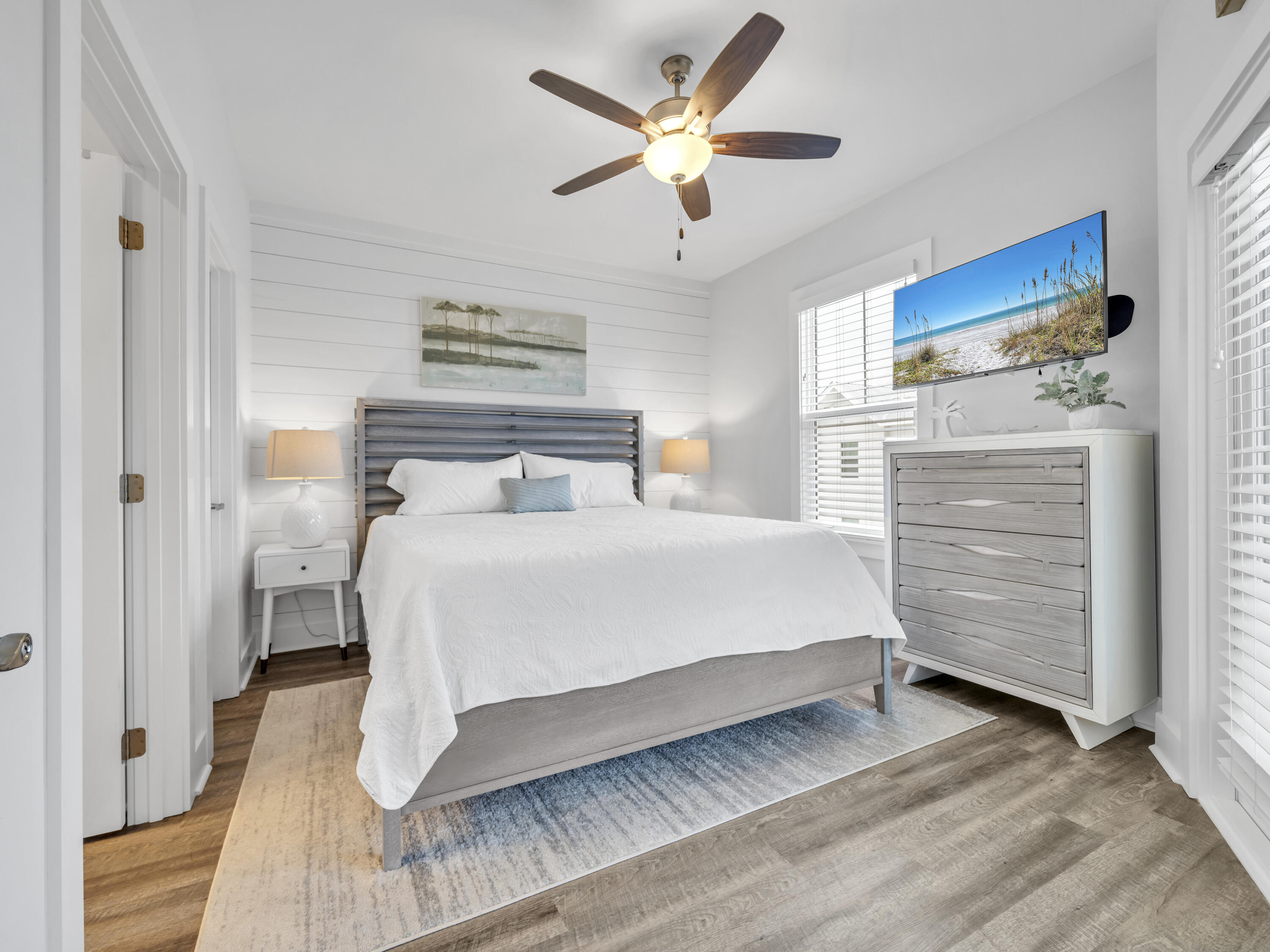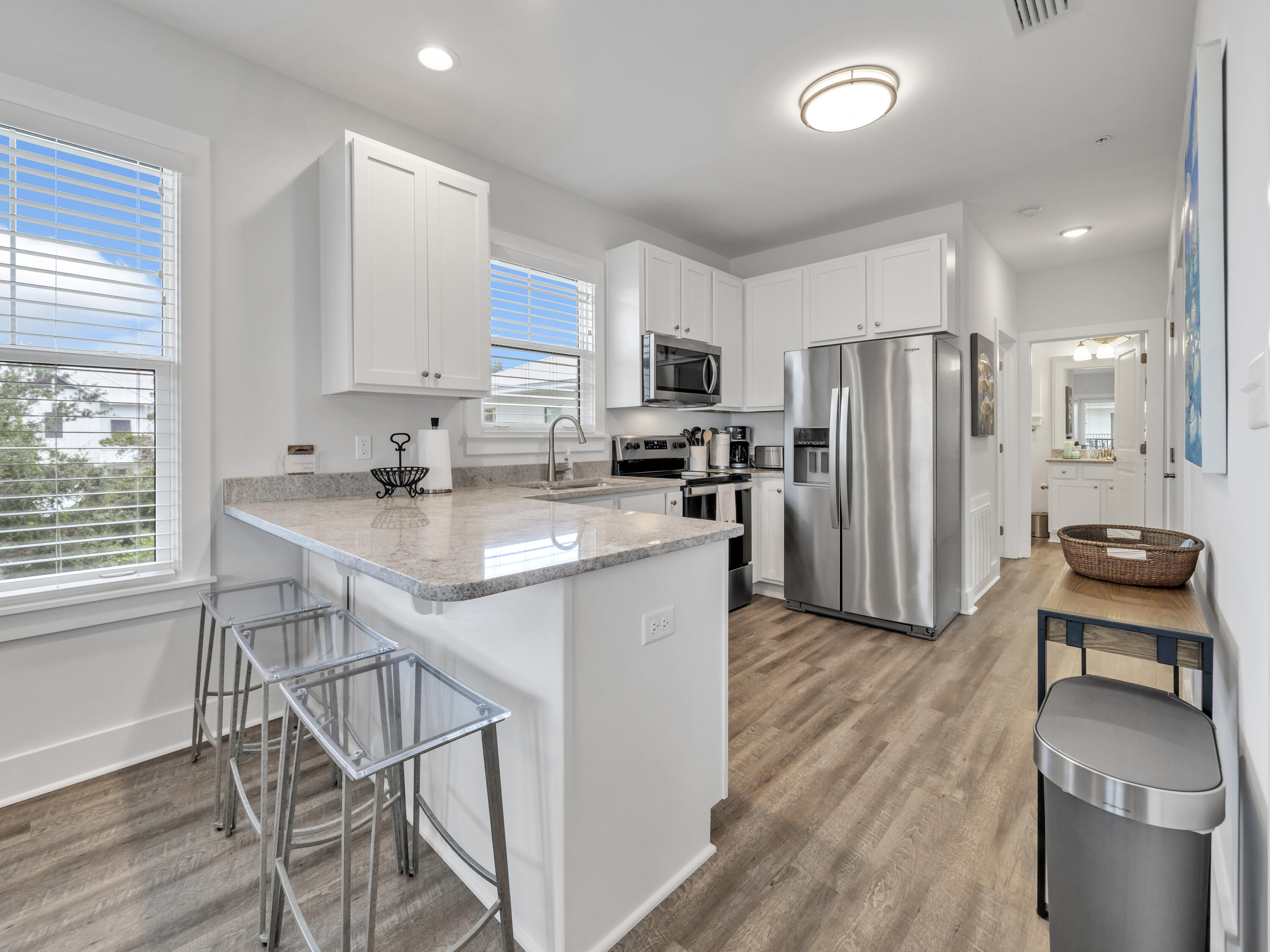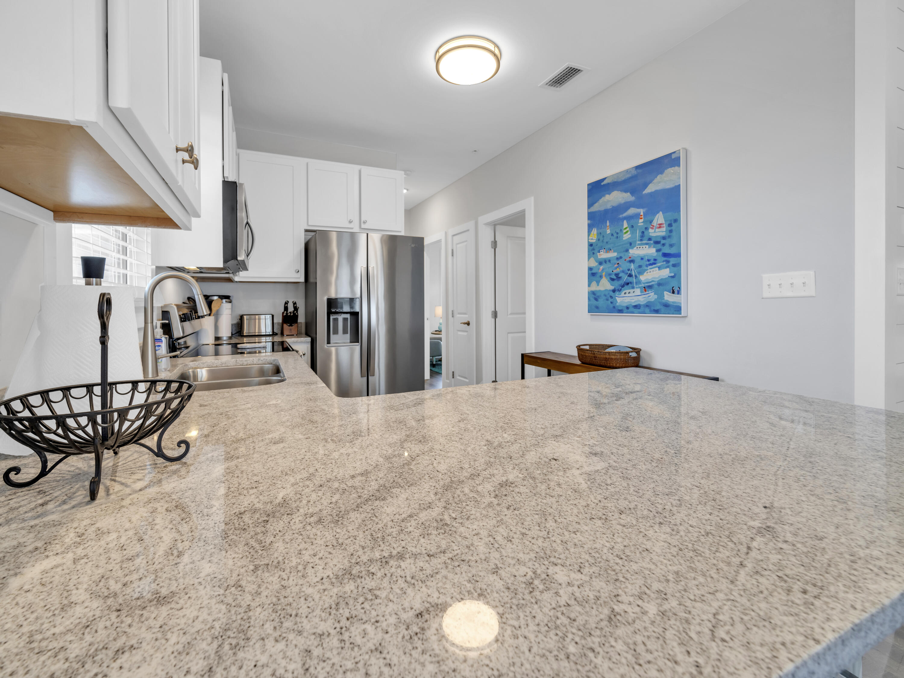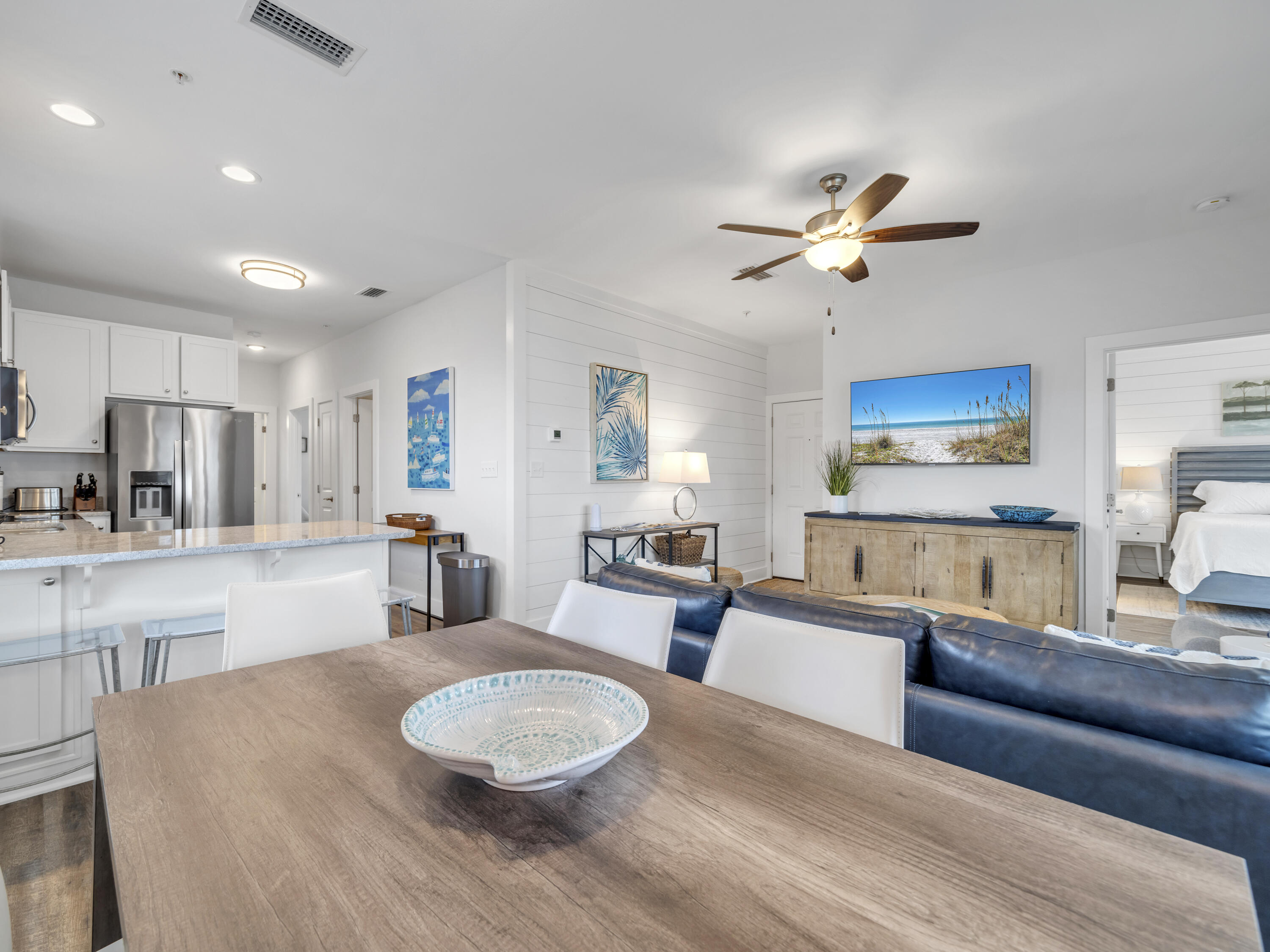 TOP FLOOR MODERN LUXURY WITH VIEWS OF GULF & RENTAL READY!! Enjoy the relaxing beach life on the west end of Scenic Highway 30A in this barely used, top-floor, 3 bed, 2 bath condo at Hidden Lake Condos. Nestled between picturesque Blue Mountain Beach and Gulf Place on 30A, Hidden Lake offers a blend of modern luxury and beachside tranquility. This southern end unit has a peek-a-boo gulf view through the trees and is being sold fully furnished and turnkey for the next owner to enjoy. This upgraded condo features shiplap accent walls, 9 ft. ceilings throughout, modern LVP flooring, and granite countertops in the kitchen and baths, along with high-end coastal chic furnishings. The condo opens to an expansive covered balcony that stretches the length of the unit, perfect for enjoying the serene surroundings. Community amenities include a relaxing zero-entry pool, fully equipped fitness center, and the development is gated for added security. Hidden Lake is positioned within walking distance of two public beach accesses and is centrally located to the many boutique shops and restaurants in Gulf Place and Blue Mountain Beach.