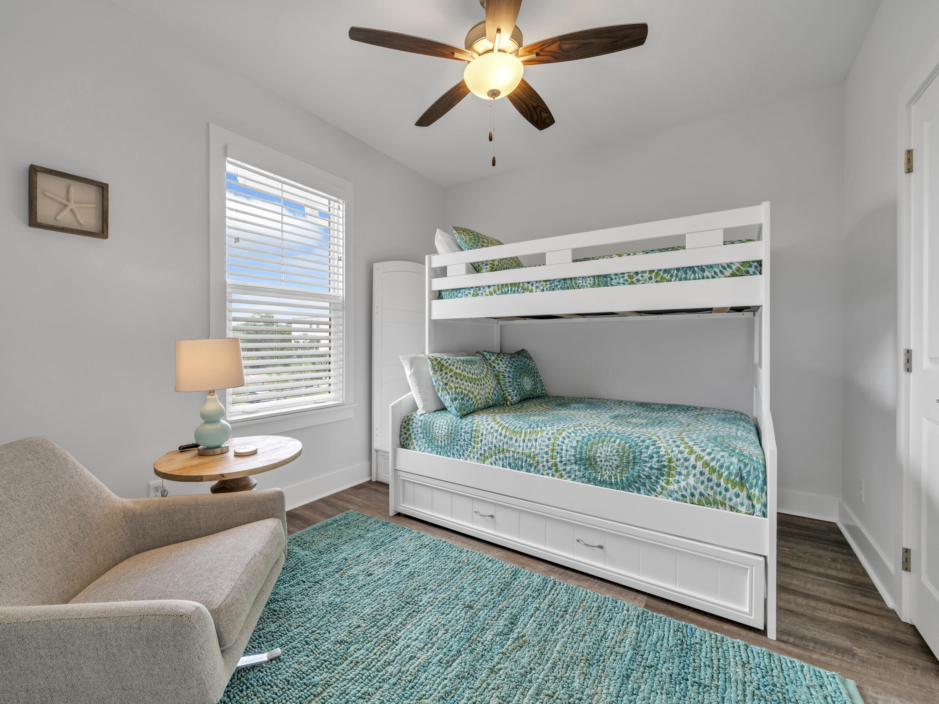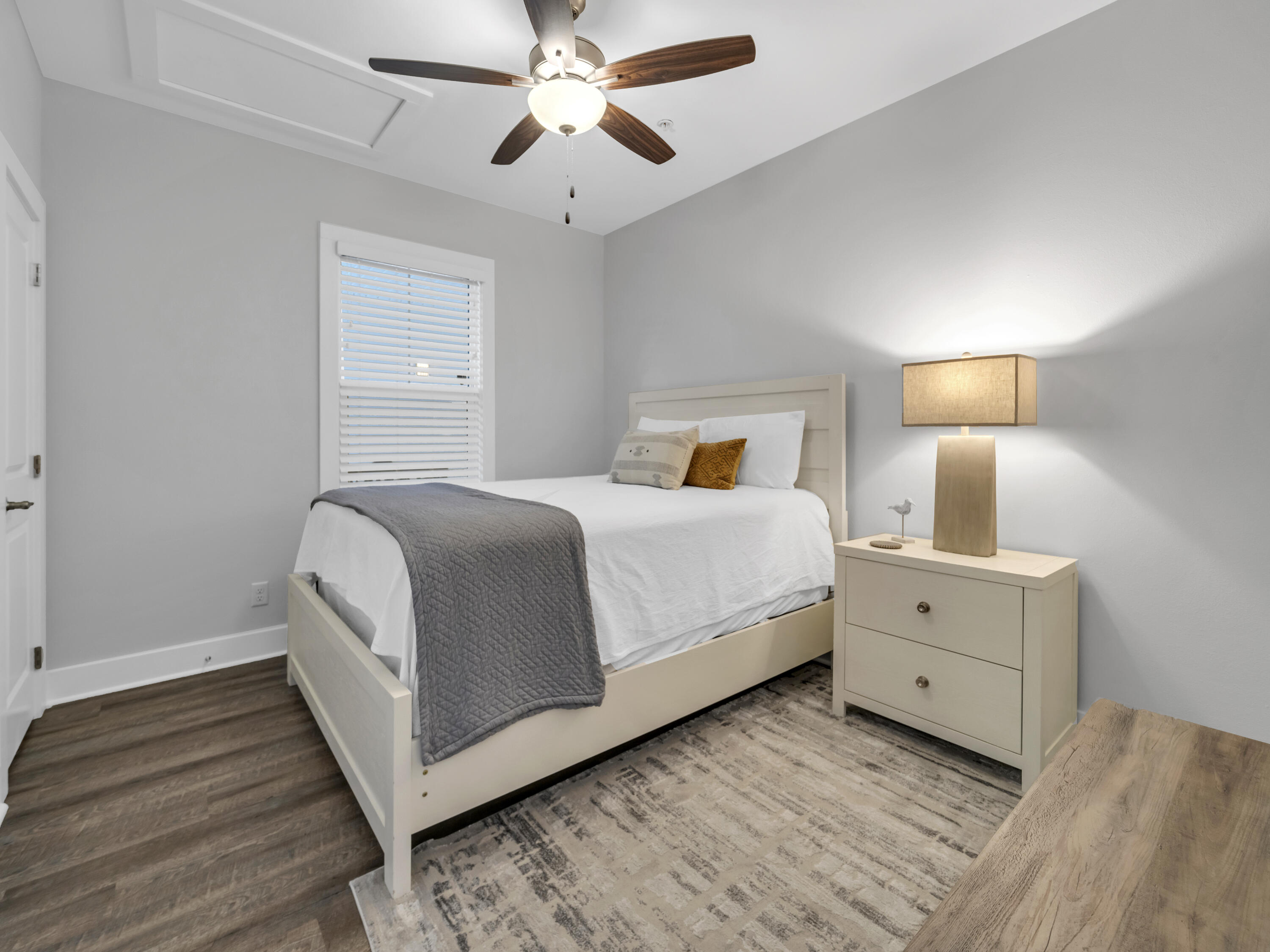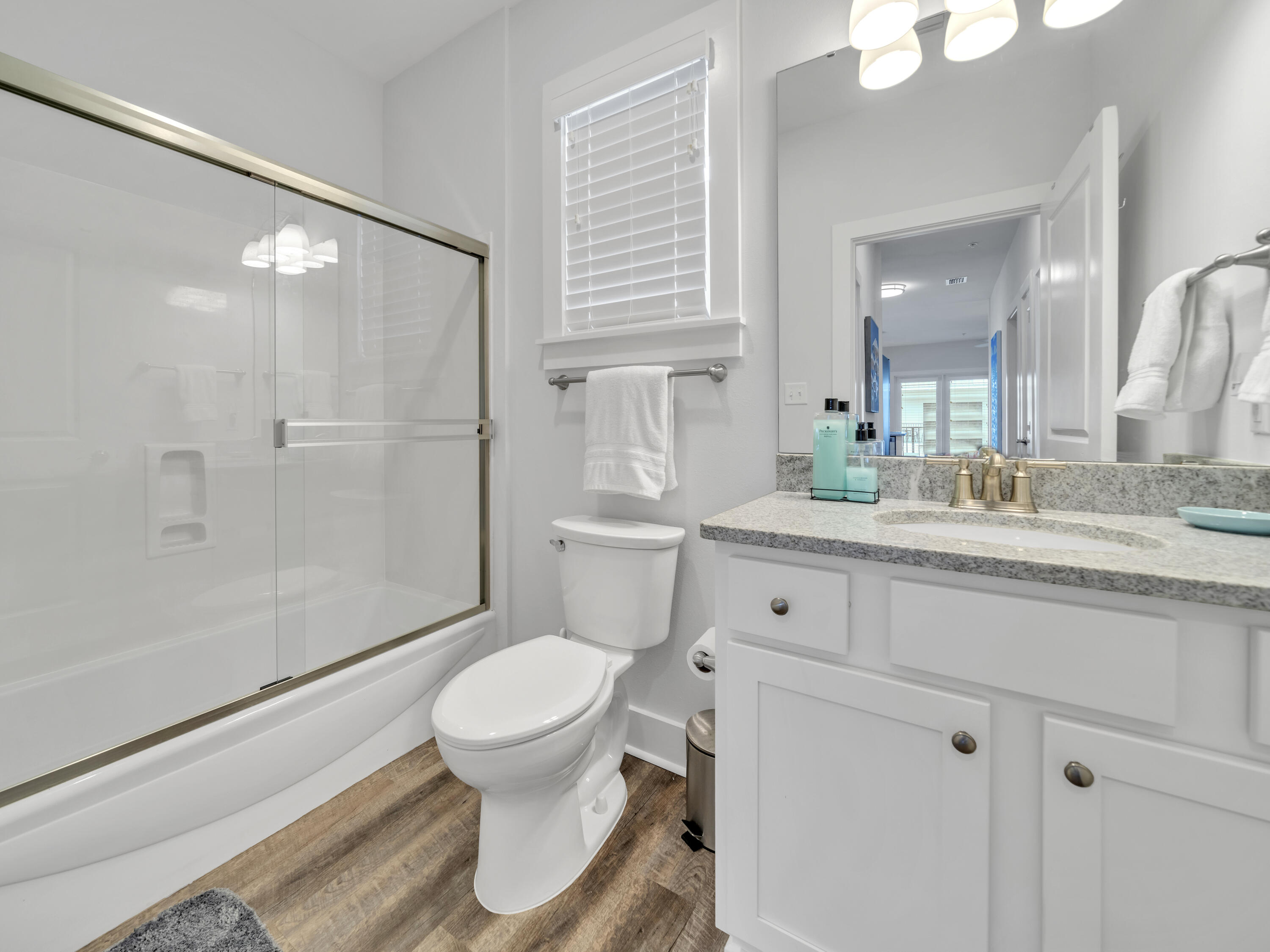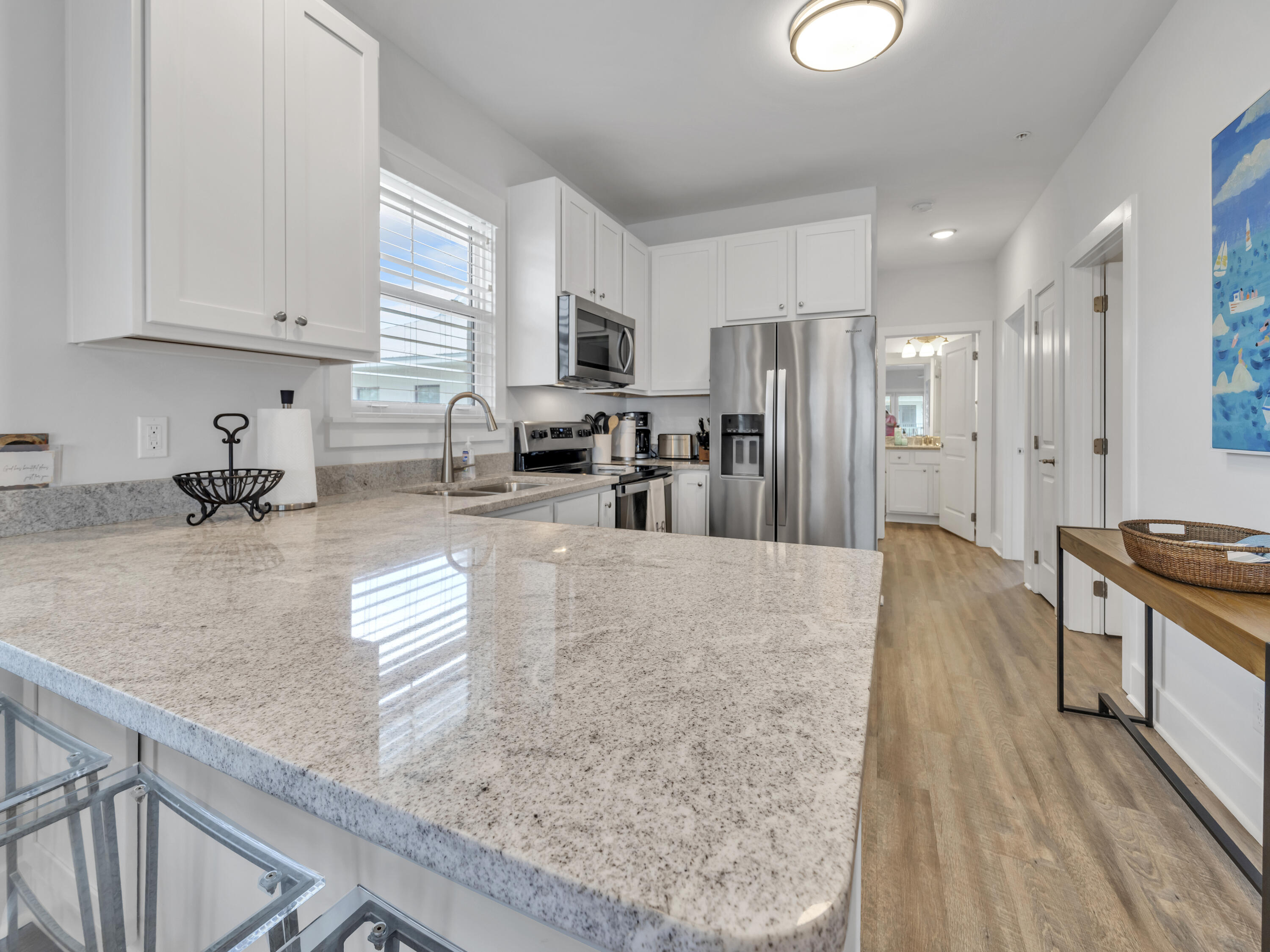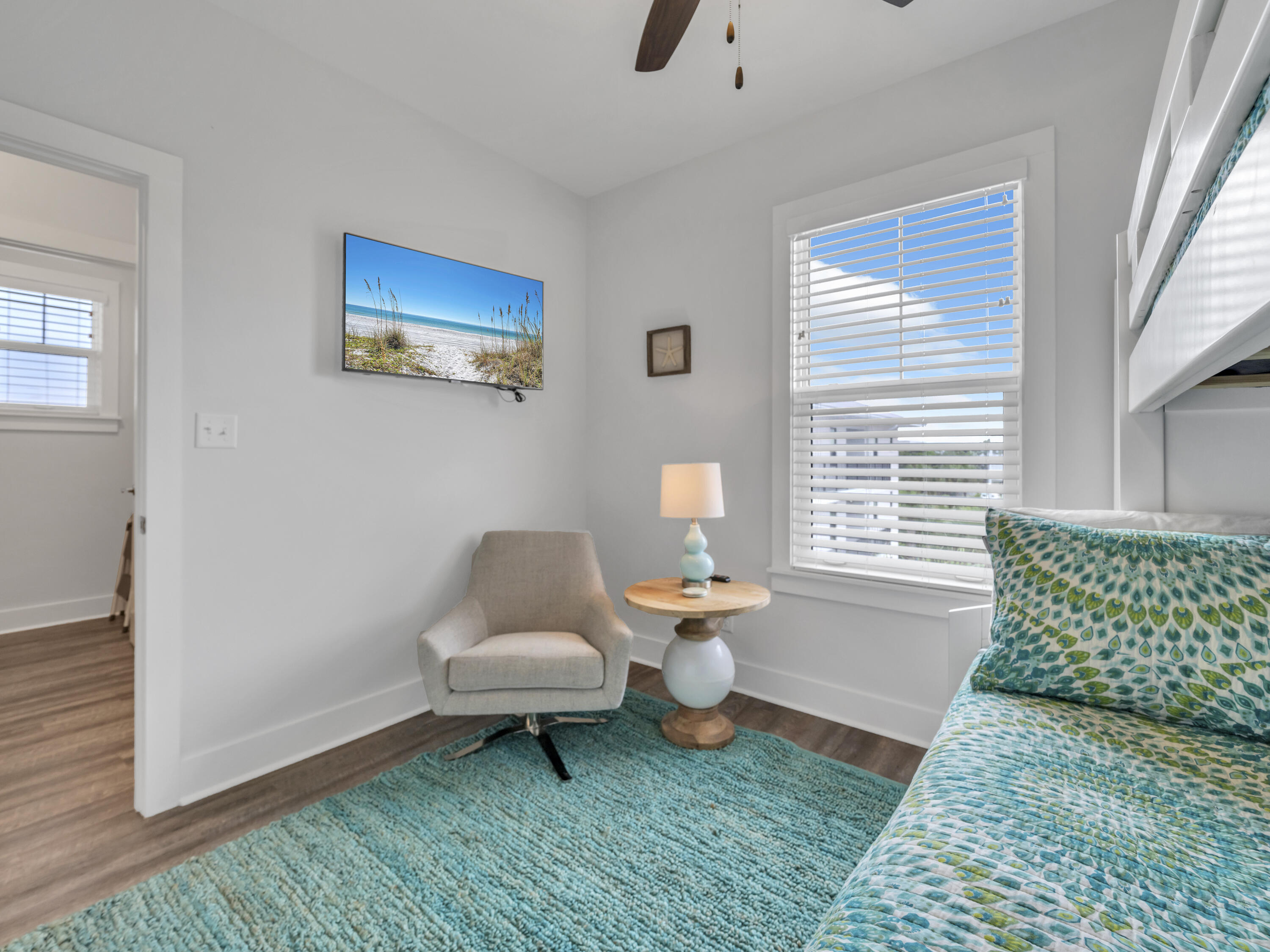 TOP FLOOR MODERN LUXURY WITH VIEWS OF GULF & RENTAL READY!! Enjoy the relaxing beach life on the west end of Scenic Highway 30A in this barely used, top-floor, 3 bed, 2 bath condo at Hidden Lake Condos. Nestled between picturesque Blue Mountain Beach and Gulf Place on 30A, Hidden Lake offers a blend of modern luxury and beachside tranquility. This southern end unit has a peek-a-boo gulf view through the trees and is being sold fully furnished and turnkey for the next owner to enjoy. This upgraded condo features shiplap accent walls, 9 ft. ceilings throughout, modern LVP flooring, and granite countertops in the kitchen and baths, along with high-end coastal chic furnishings. The condo opens to an expansive covered balcony that stretches the length of the unit, perfect for enjoying the serene surroundings. Community amenities include a relaxing zero-entry pool, fully equipped fitness center, and the development is gated for added security. Hidden Lake is positioned within walking distance of two public beach accesses and is centrally located to the many boutique shops and restaurants in Gulf Place and Blue Mountain Beach.