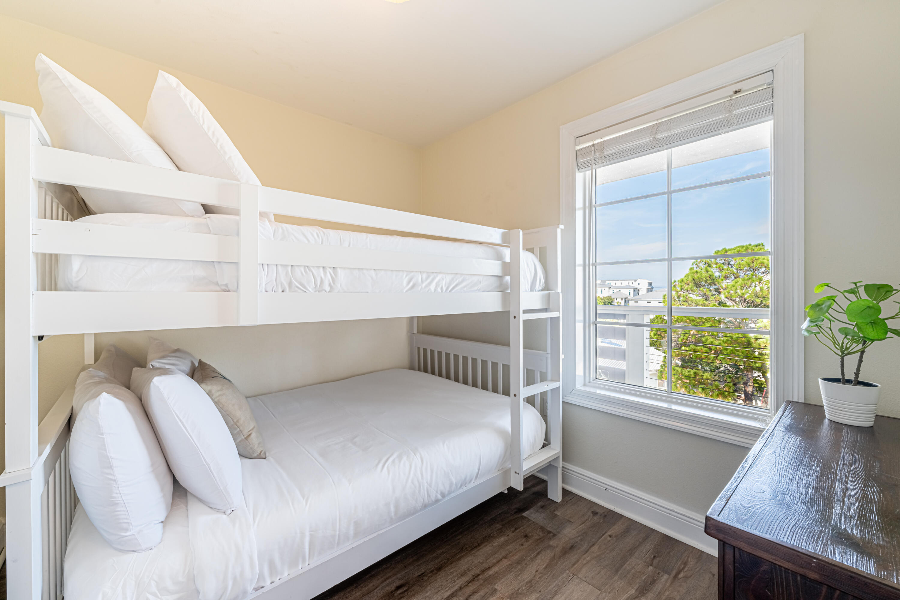 Furnished and available for winter monthly rentals Nov-Feb. Please call our office for details at 850.608.6078. 3BR/2BA condo in Cassine Station, Seagrove Beach. Perched on the 4th floor, this serene retreat is just 100 steps from sugar-white sands and minutes from Seaside, The Big Chill, and scenic 30A fun. Enjoy a spacious kitchen with granite countertops and stainless steel appliances, open dining and living areas with smart TV, and a large balcony with great views. The master suite features a king bed, balcony access, and spa-like bath with walk-in shower and soaking tub. Guests will love the additional king bedroom and bunk room. Extras include WiFi, laundry, beach gear, and access to 2 pools, tennis, pickleball, trails, and grilling areas.