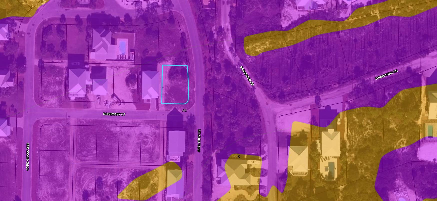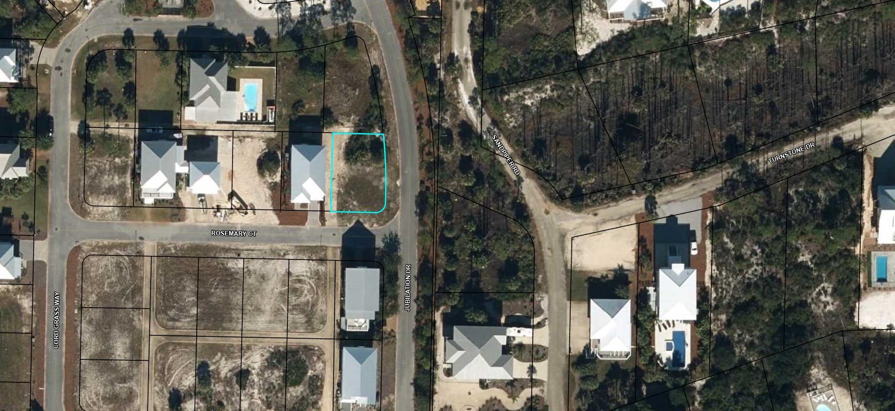 From Port St Joe, follow Hwy 98 W, veer right onto CR 30A. Go approx 6.7 miles and turn right onto Cape San Blas Rd. Go approx 1.5 miles and turn left on Jubilation Dr, Lot is on the corner of Jubilation Dr & Rosemary Ct.