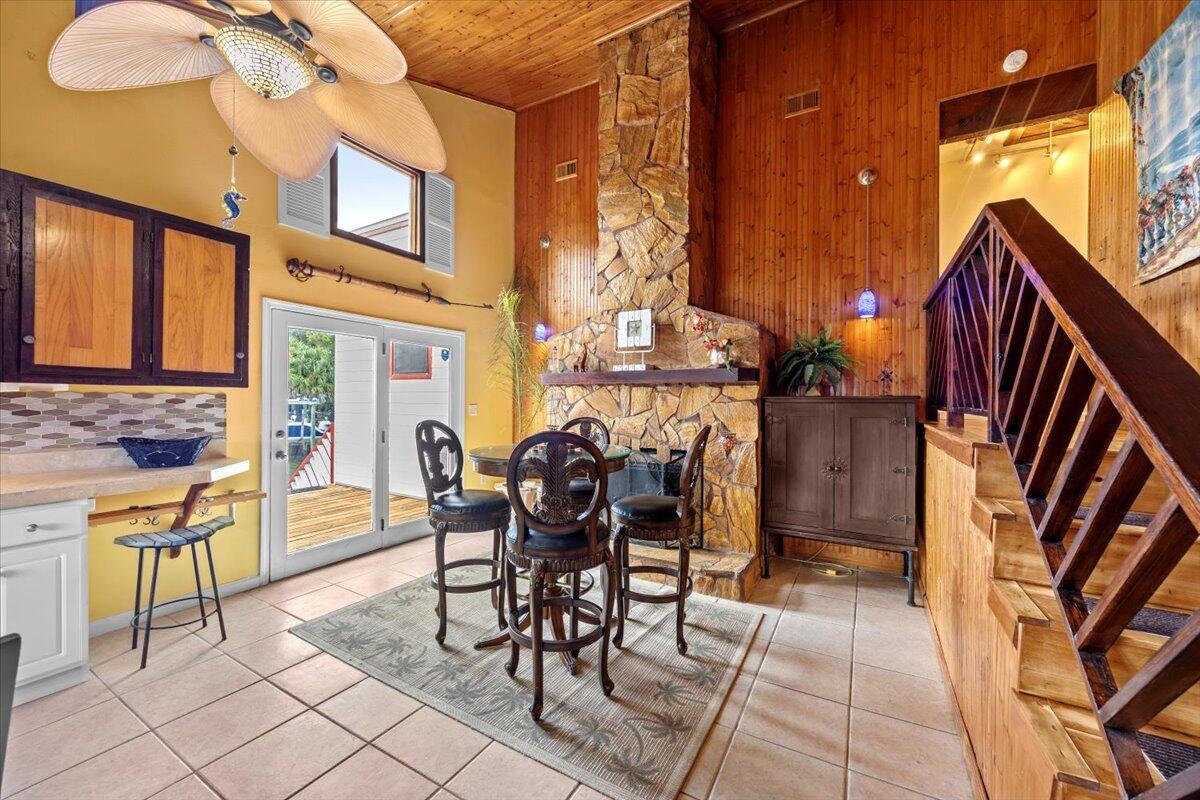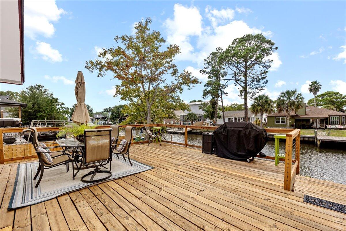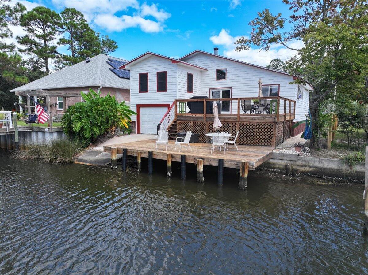 Experience refined waterfront living in Gulf Breeze. This custom specialty artisan craftsman home showcases soaring ceilings with exposed beams and a dramatic floor-to-ceiling stone fireplace, blending character with comfort. Updates in the last few years include a new roof, HVAC, insulation, flooring, paint, remodeled baths, and a smart security system. Outdoors, a reinforced concrete seawall, rebuilt dock, and drive-through garage with private boat launch make life on the water effortless. Enjoy sweeping views and relaxed vibes from two spacious decks, rinse off in the outdoor shower after a day on the water, and unwind in the massive primary suite. It is more than a residence--it's a rare opportunity to own a turnkey coastal lifestyle in one of Gulf Breeze's most coveted locations.
