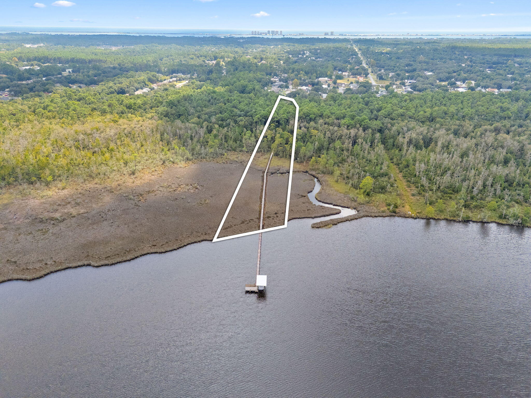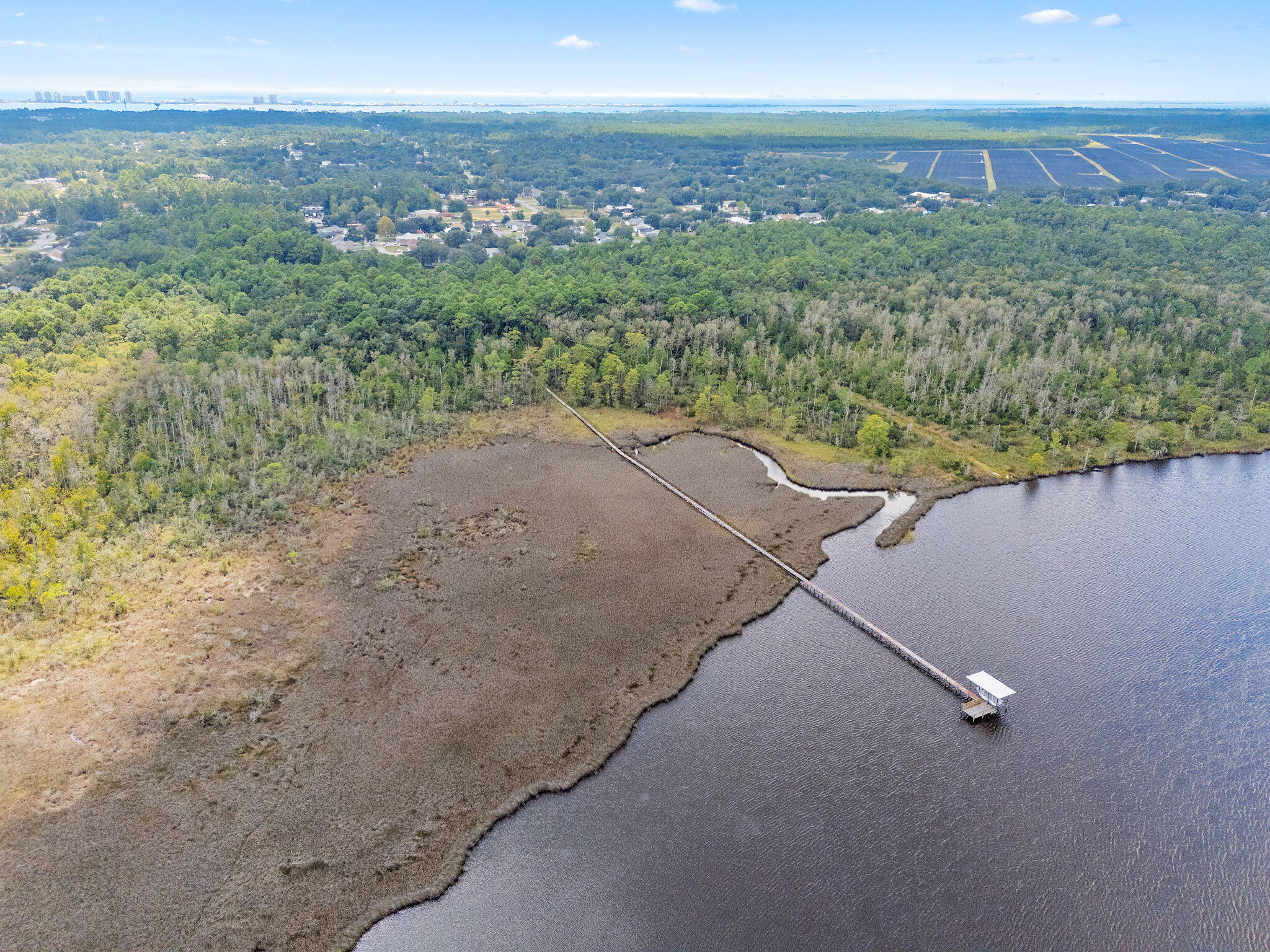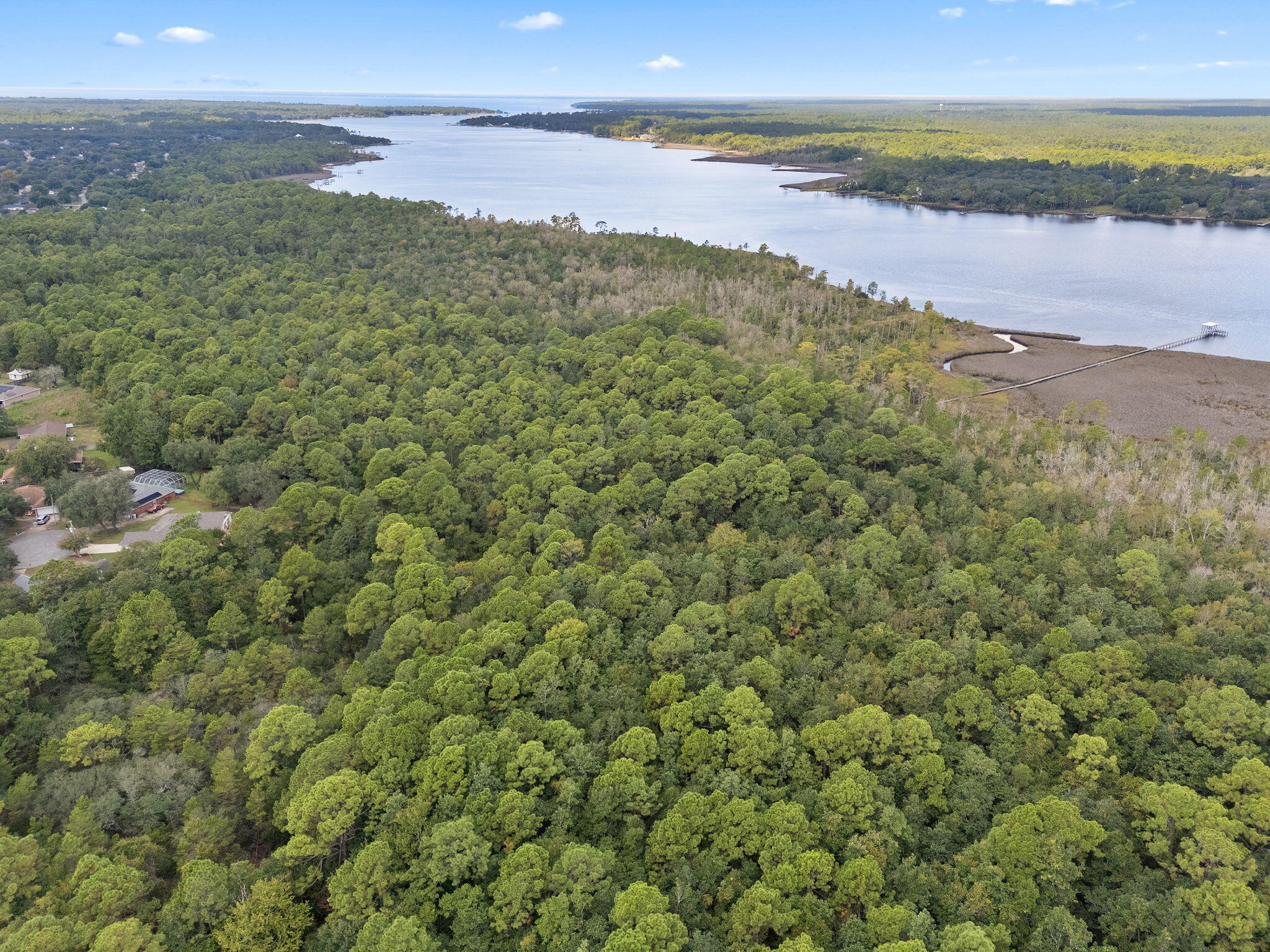 Fishing, boating, watersport enthusiasts? OVER 5 WATERFRONT ACRES! This is a rare chance to own a 4-bedroom, 3-bathroom house with in-law quarters AND an over 1000 square foot, two story workshop/guest house out back!Located on a mature tree-lined culdesac is over 5 acres of land with over 200 feet of water frontage on East Bay. Step inside to what originally was a 3 bedroom, 2 bathroom house. The owners added on guest/in-law quarters with its own living room, bedroom and bathroom, with 36'' doors making it handicap/wheelchair accessible. The in-law quarters include a large walk-in closet and a separate water heater. Cozy up to the wood burning fireplace in the large living/dining room combination. The kitchen is updated with white cabinets, granite countertops and ceramic tile floor and includes an eat in area for additional seating and entertaining. This home includes a large master suite with dual sinks, garden tub and walk in closet. Two additional bedrooms and a full bathroom make this split bedroom design perfect for your growing family. Outside you will find a very large paver patio with a fish pond/fountain, lovely flowers and plenty of room to add a swimming pool. Need more space or have a hobby? Enjoy the over 1000 square foot, two story workshop in the back. The lower level has a standard door entry and an insulated garage door entry and functions as a workshop. Upstairs could be a workout room, craft room or home school room. Take a stroll down the boardwalk to your 8000 pound boatlift and 200 square foot dock with outdoor shower, newer roof, electrical and generator. The location of this property allows for complete privacy and serenity to enjoy the sunrises, sunsets, natural habitat of bald eagles, dolphins and deer. And it is all in a Flood Zone X..no flood insurance required! Fishing forums rate this corner of East Bay as a spot to "hook trophy fish."