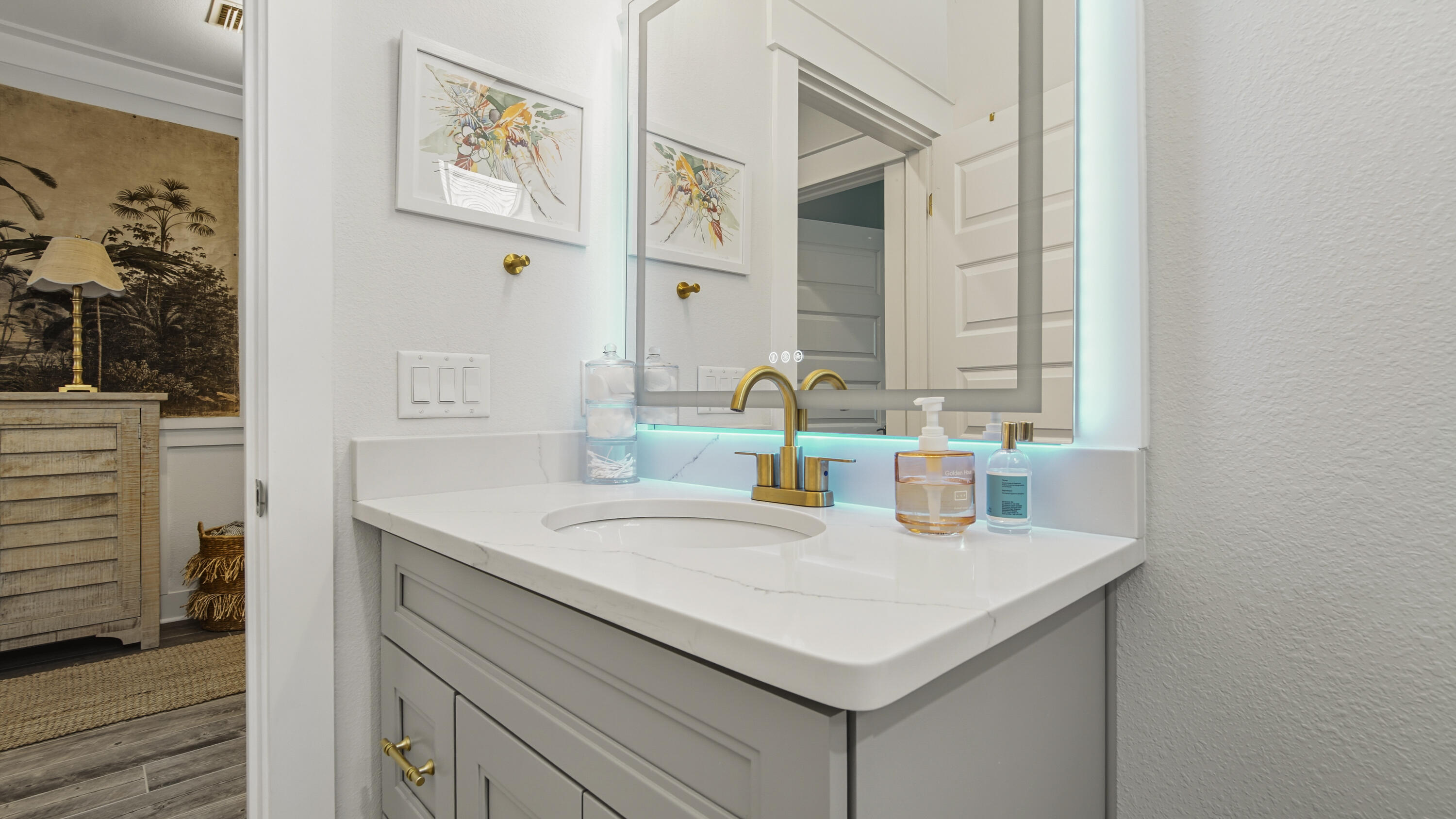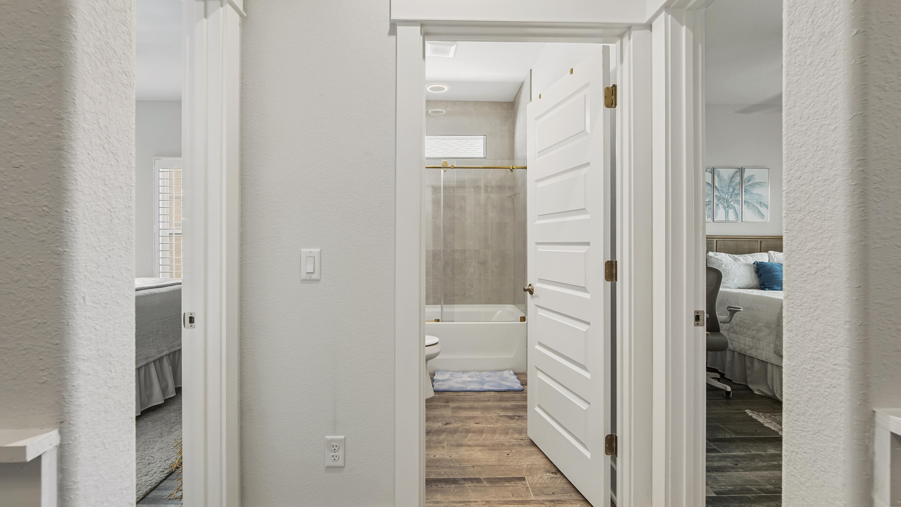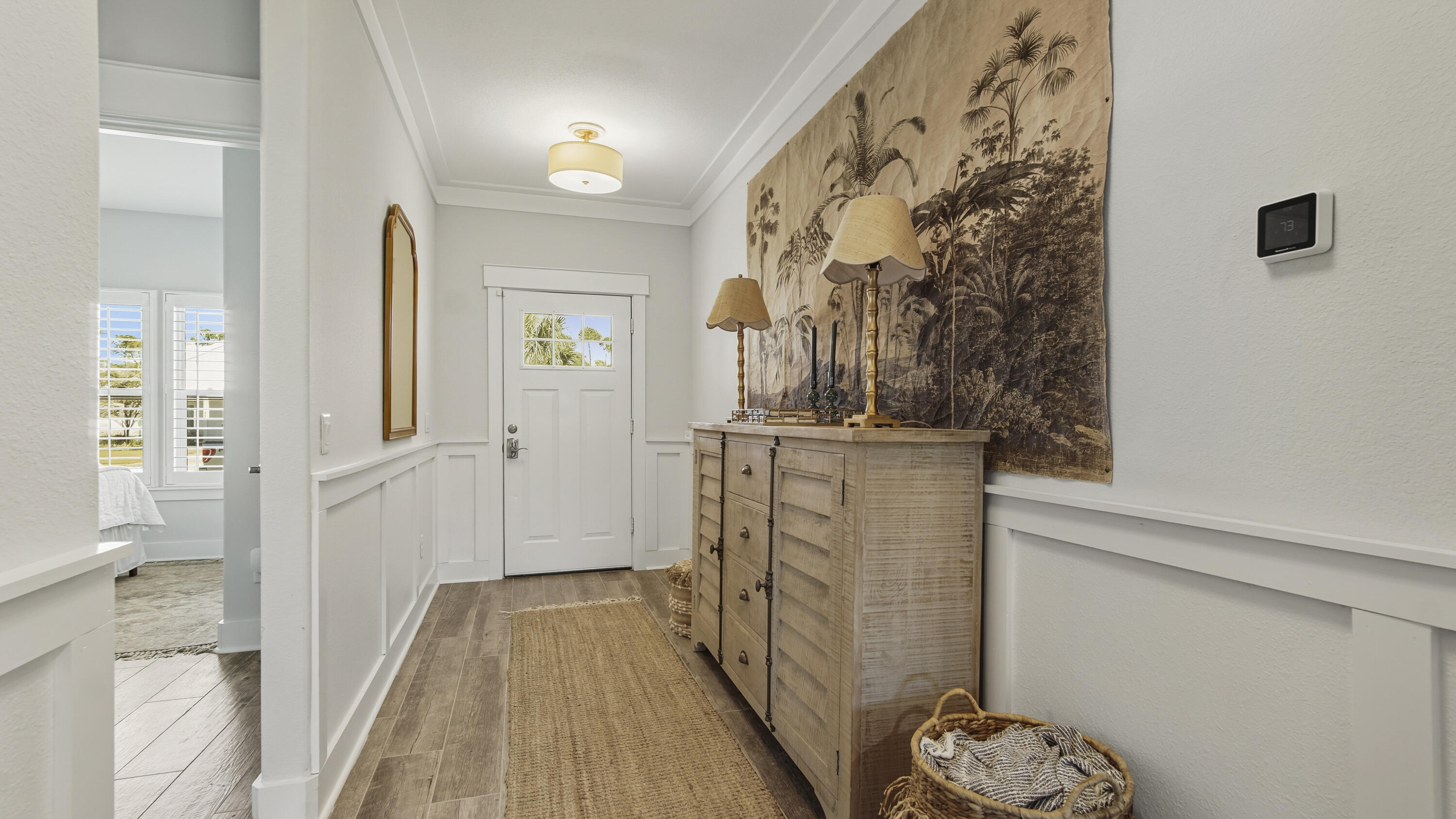 Welcome to Laguna Haven, a gated West End community in Panama City Beach celebrated for its tranquility and prime location. Built in 2022, this upgraded Calabria floor plan offers 3 bedrooms, 2 bathrooms, and 1,661 sq ft of stylish single-level living. The climate-controlled garage with mini split is perfect for projects, and a premium six-seater golf cart makes beach trips a breeze. Inside, soaring 9-foot ceilings with crown molding, plantation shutters, custom built entertainment center with fireplace, and designer lighting create an inviting coastal elegance. The kitchen shines with premium appliances, upgraded cabinetry, and generous pantry space. Retreat to the primary suite with tray ceiling, custom built walk-in closet, and spa bath featuring a backlit double vanity and custom-tile shower. Outdoors, enjoy a covered patio, hot tub, lush landscaping, landscape lighting, irrigation, and widened paver drive. Seller to pay off solar panels at closing, adding long-term savings to this move-in ready coastal retreat. Perfectly situated on the quieter West End of Panama City Beach, this home provides quick access to the beach, 30A, local dining, and shopping delivering the ideal balance of modern coastal living and everyday convenience. Don't miss your opportunity to own this dreamy upgraded coastal retreat-schedule your private showing today!