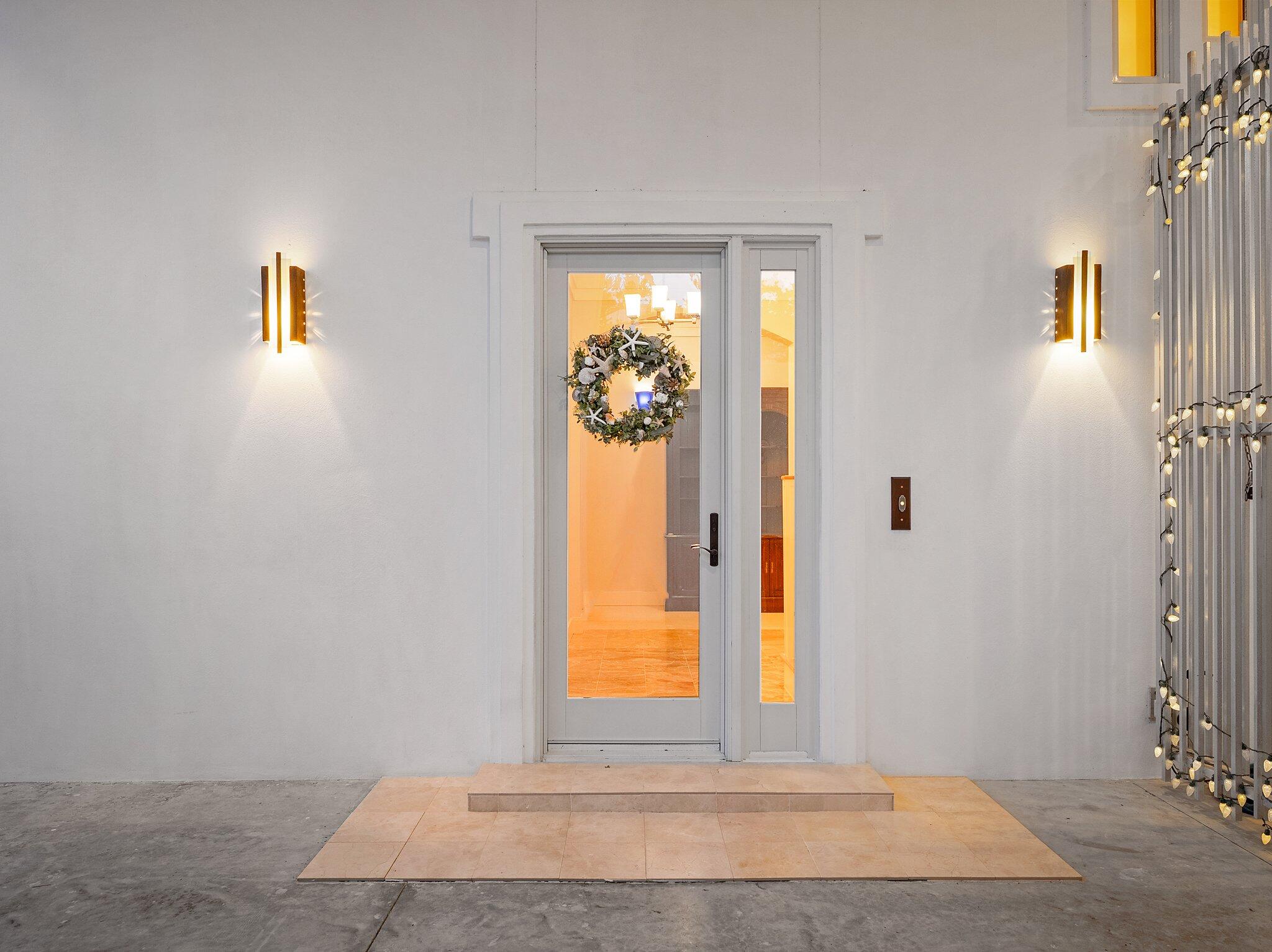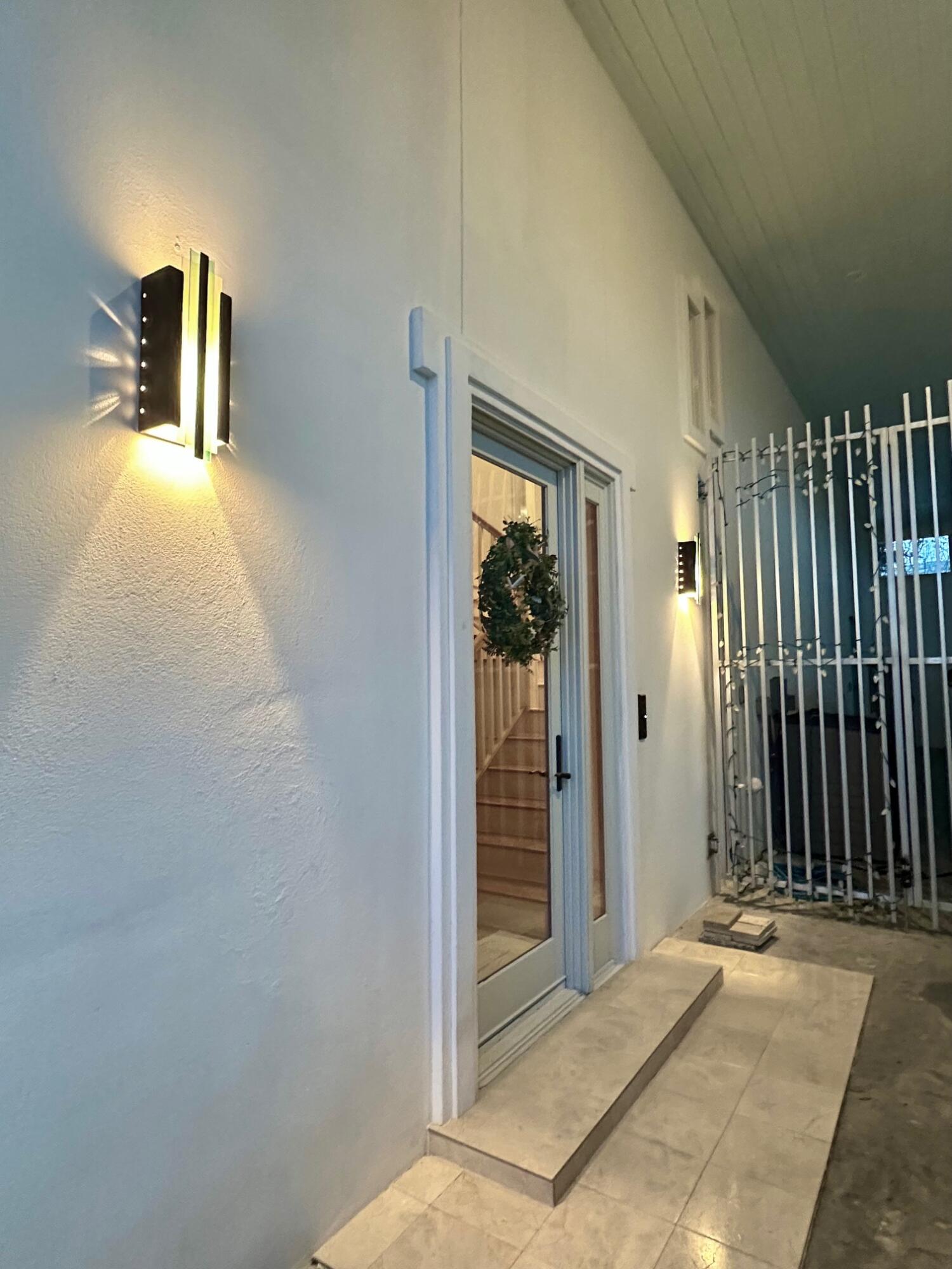 Complementing the third floor, the ground-level living space features a kitchenette and bathroom, opening to lush gardens and a patio enclosed by an 8-foot concrete wall with room for a pool.