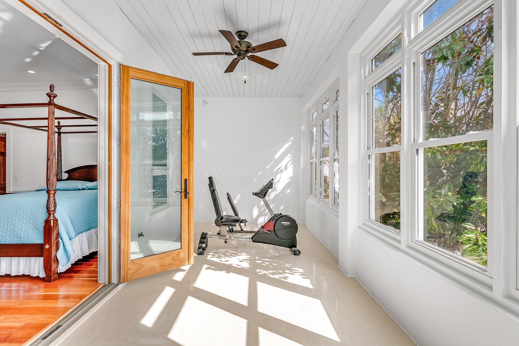 The second-floor bedrooms are tucked away from noise and social areas, yet filled with natural light through multiple tall windows. The master suite, located in the south wing, offers peace and serenity with views of the gardens from its private enclosed porch.