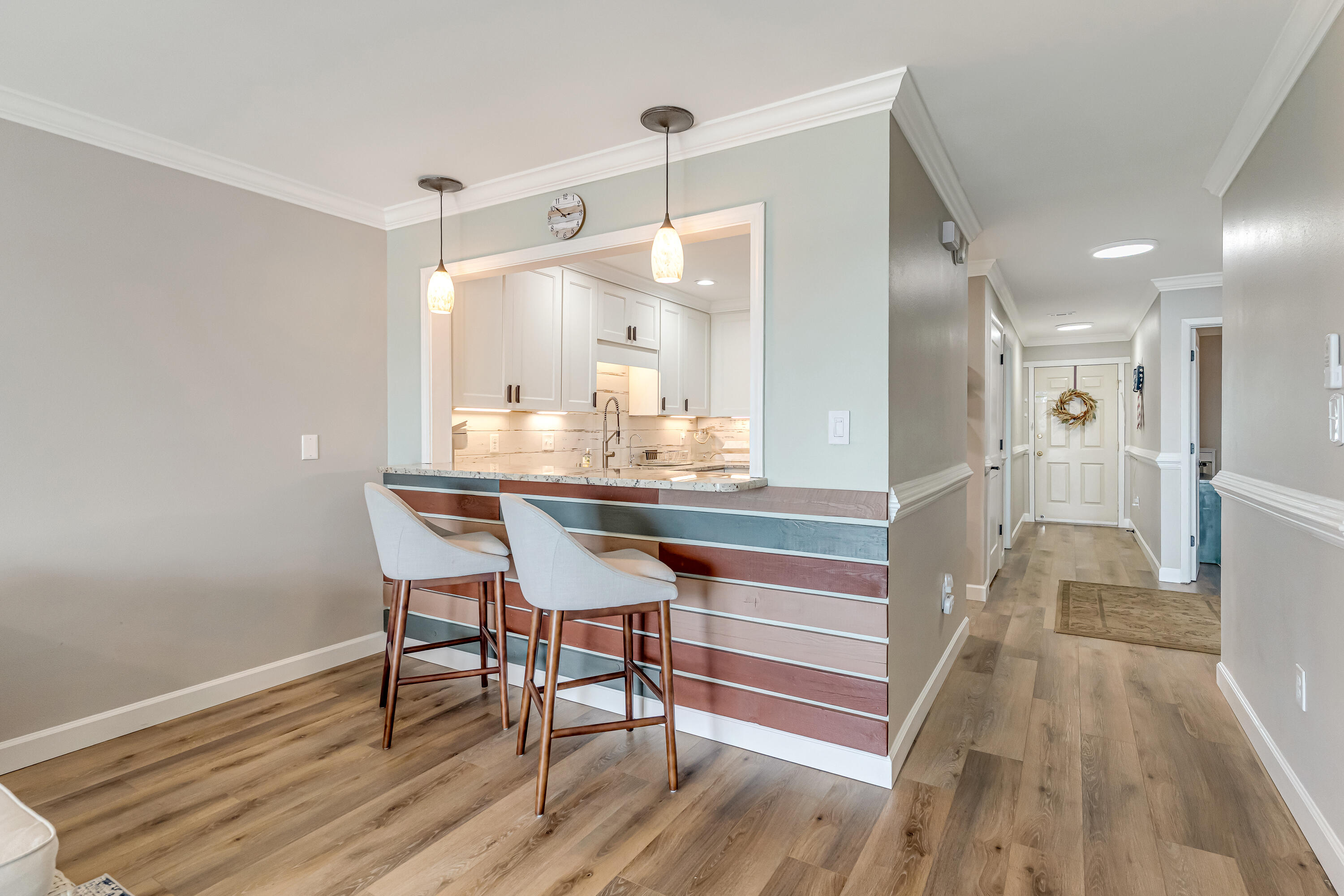 INTERIOR | Breakfast Bar,Ceiling Crwn Molding,Floor Vinyl,Furnished - All,Lock Out,Newly Painted,Renovated,Washer/Dryer Hookup,Window Treatment All,Woodwork Painted |