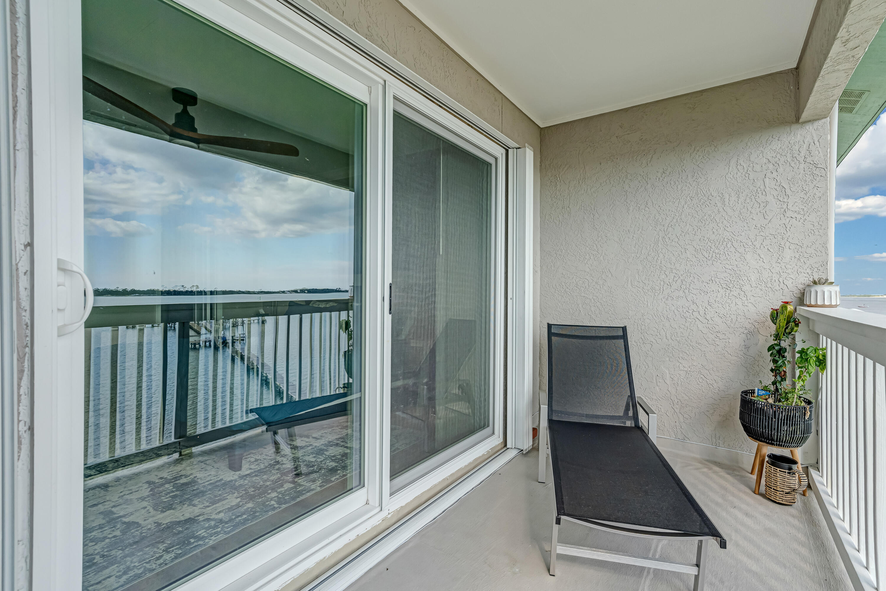 Traveling west on Hwy 98 past Hurlburt Air Force Base, approximately 1 mile, make U-turn (FWB Auto Brokers) on south side of hwy, make the first right onto Channel Marker and follow road all the way to the end. Unit is in middle of building on the top floor.