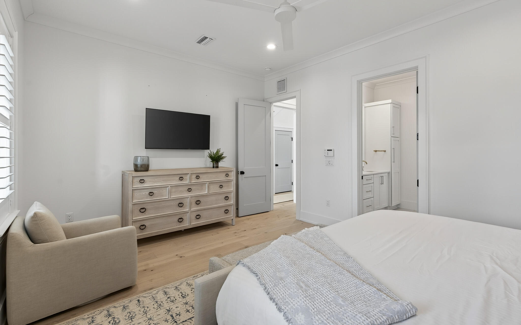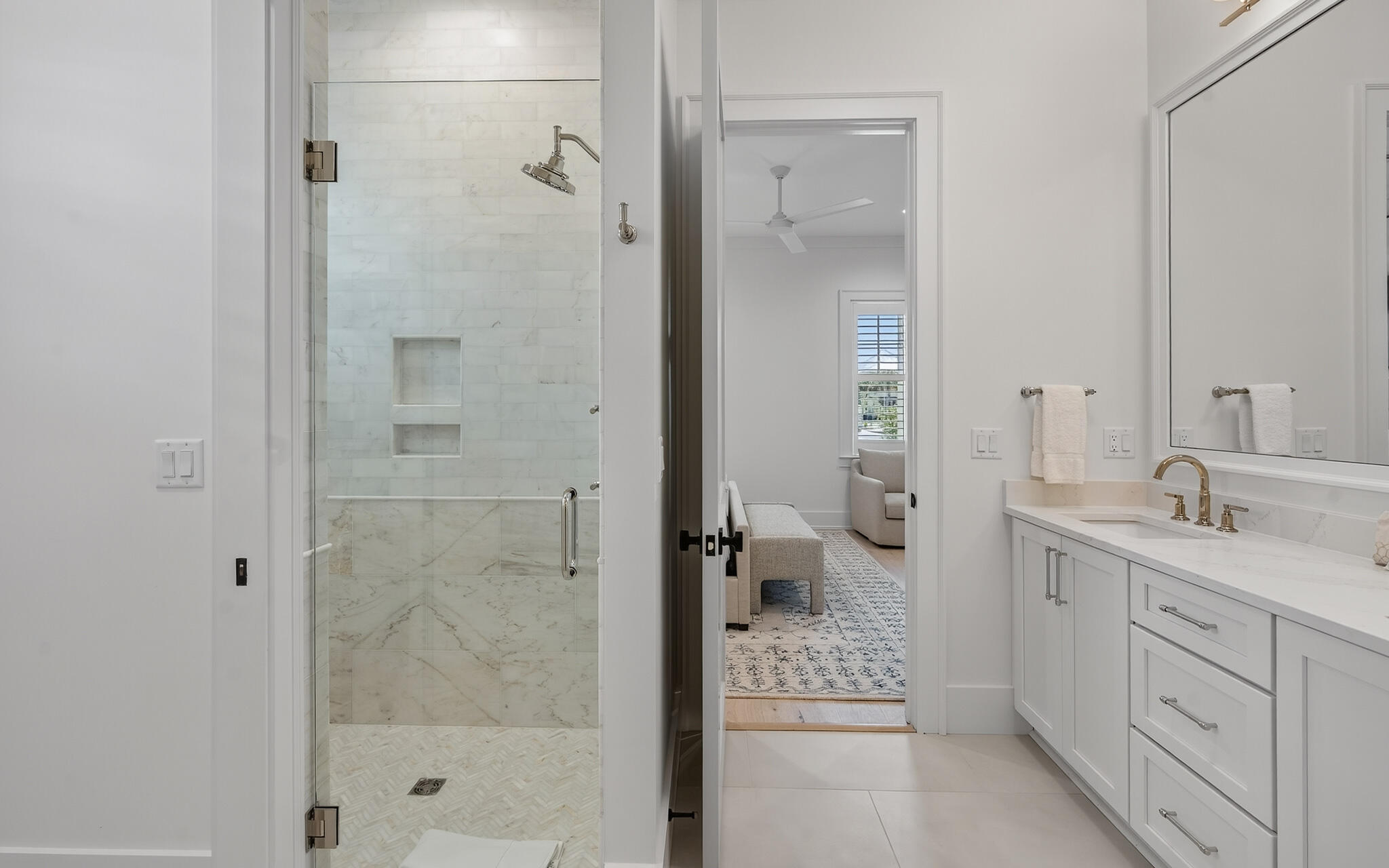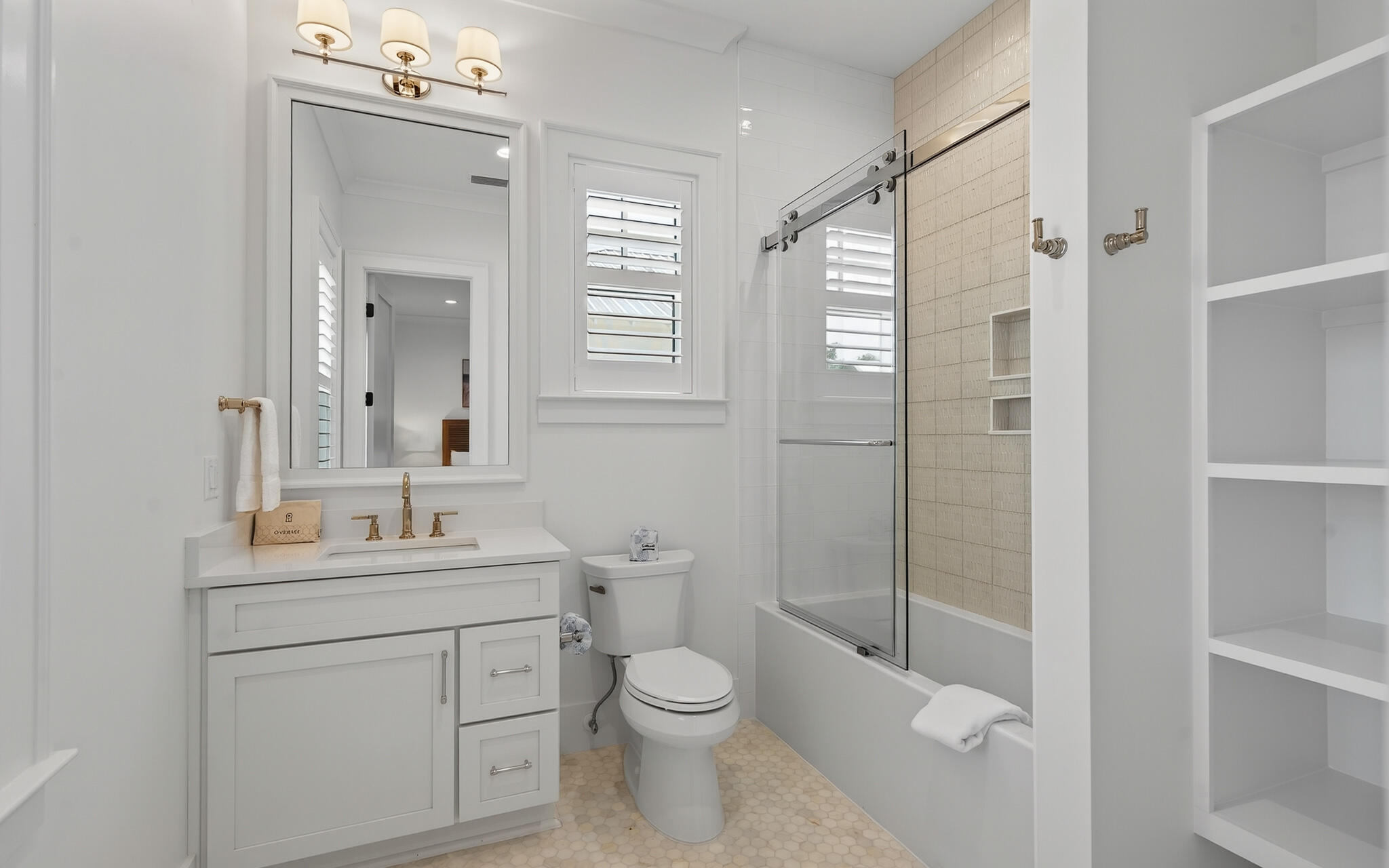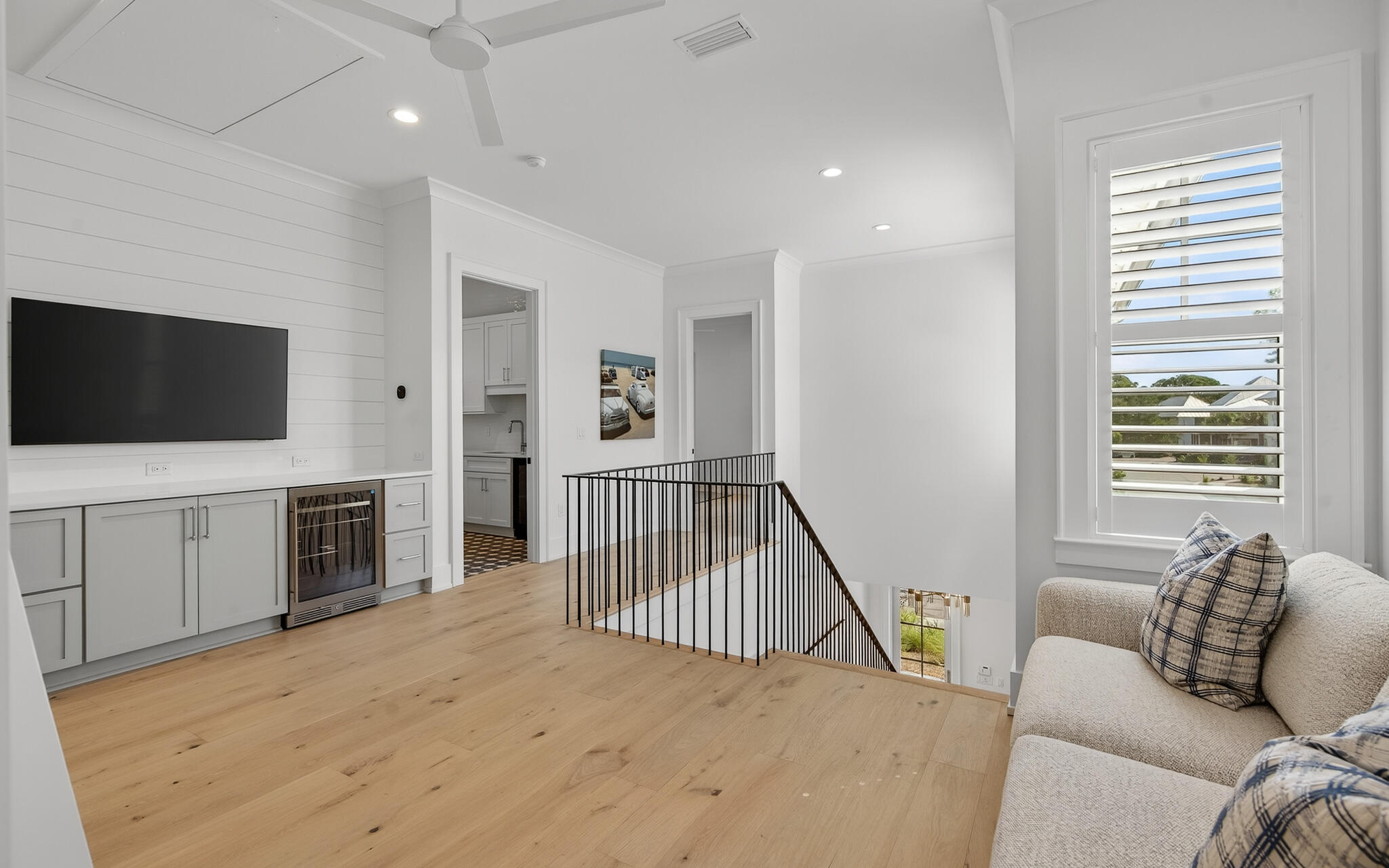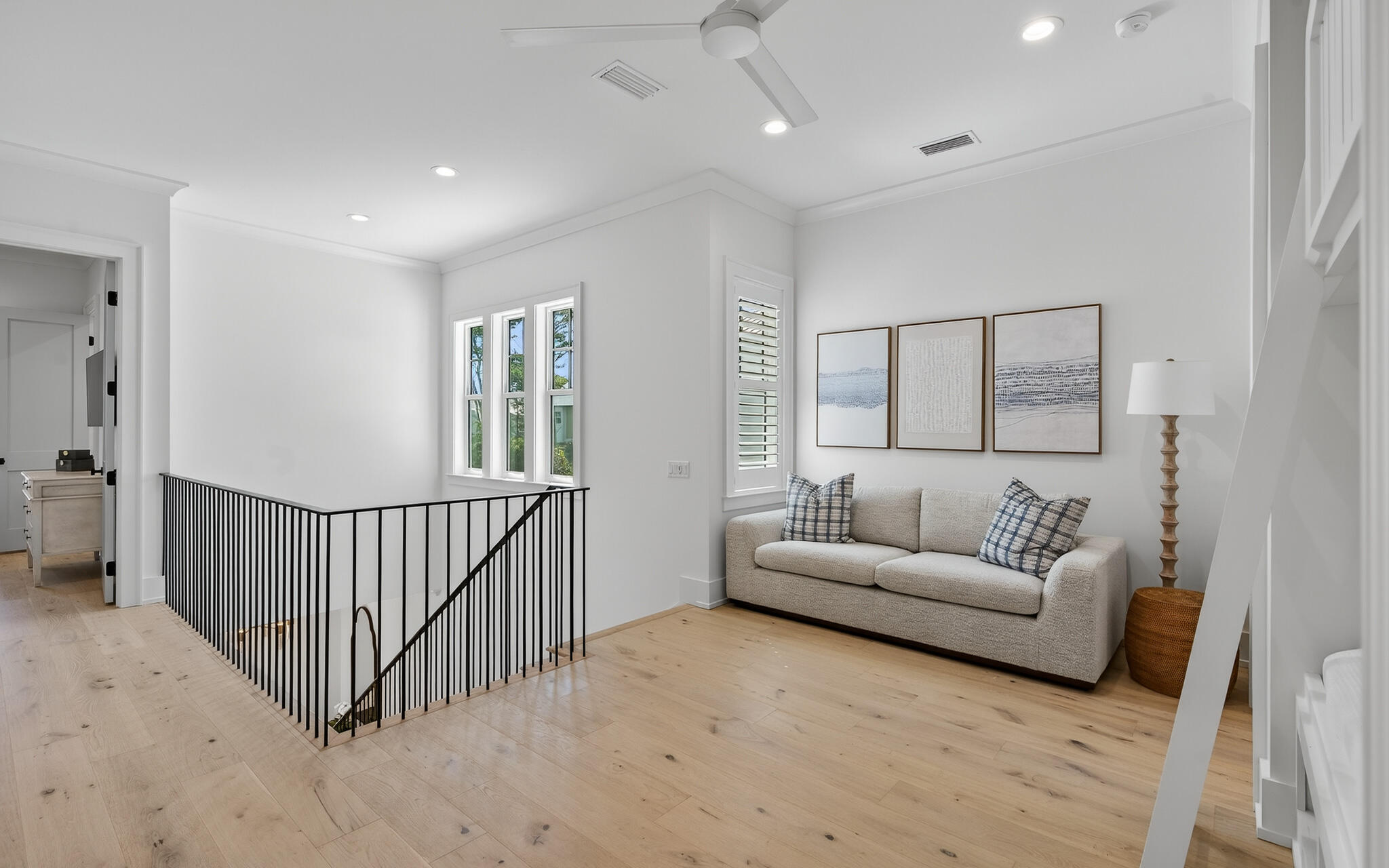 Fully furnished and rental ready, brand new construction in sought after neighborhood of Lakeside At Blue Mountain Beach. This boutique community offers amenities including pool, clubhouse, playground, access to Redfish Village and public beach access. As you enter into the elegant foyer of this stunning home, professionally decorated and fully furnished, you are greeted with light engineered wood flooring taking you to the open area concept living and dining area. The gourmet kitchen features all Thermador stainless steel appliances including a gas stove with chimney style range and French Door refrigerator. Quartz countertops, an abundance of storage cabinets, and a wine bar complete the kitchen. First floor primary room has an ensuite bath with walk-in closet. A powder room and laundry closet finish the first floor. The stairs will lead you to the oversized living area loft with built in bunk beds. All 3 bedrooms upstairs have an ensuite bathroom and walk-in closet with a balcony off the upstairs primary bedroom. A large laundry room finishes the second floor. The carport offers a storage room as well. This home also boasts a tankless water heater and 2 HVAC units.