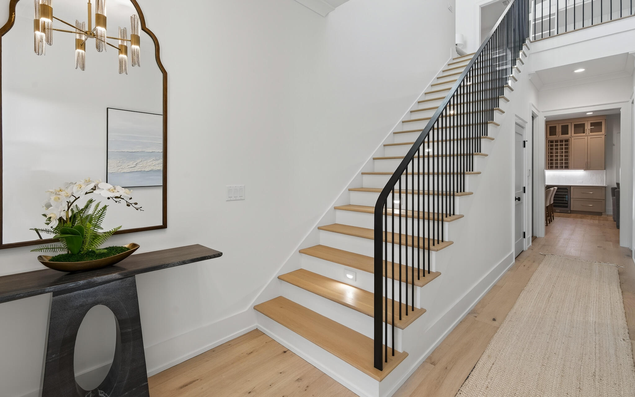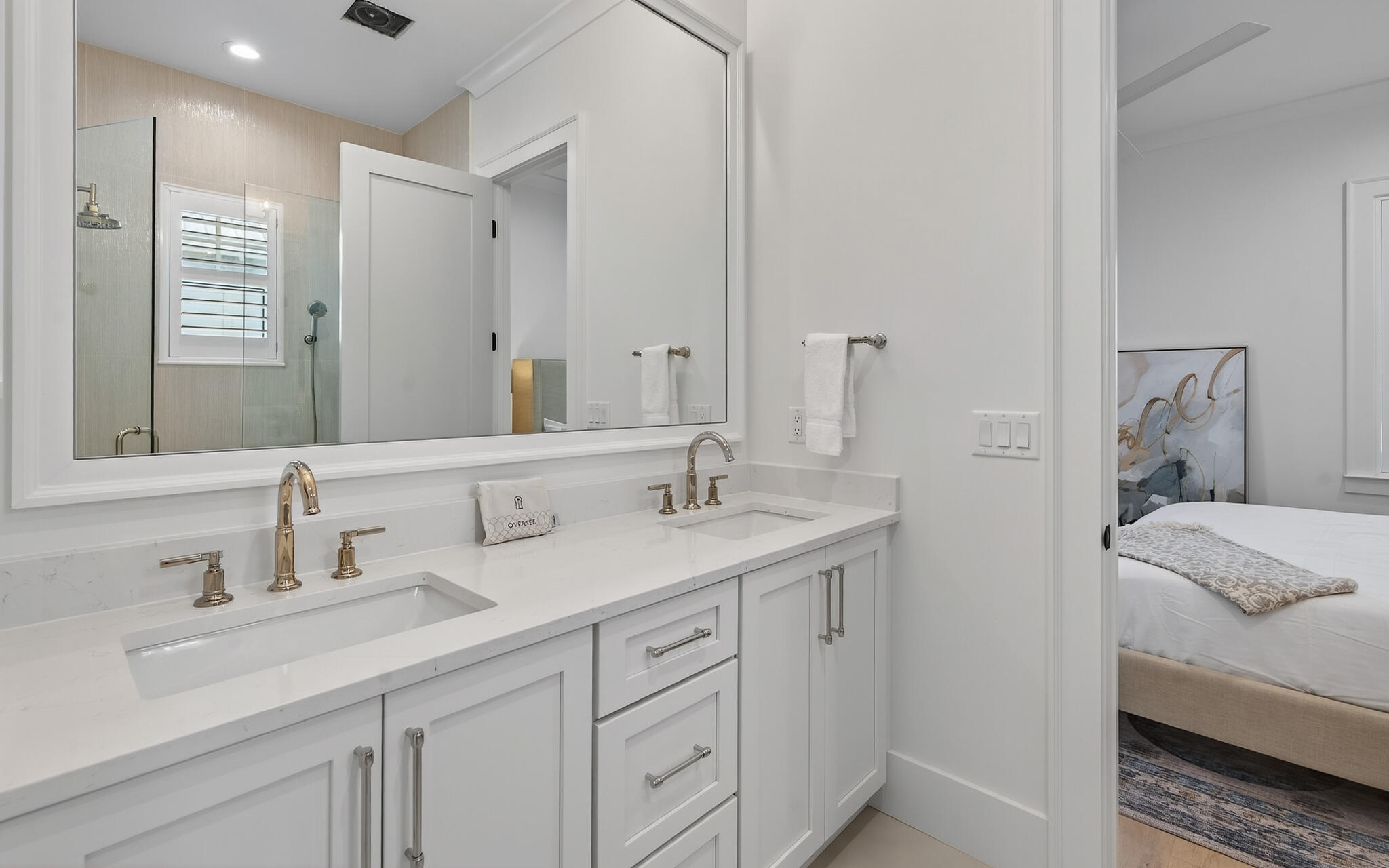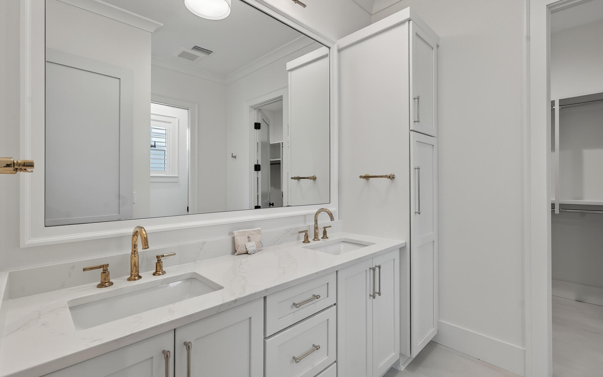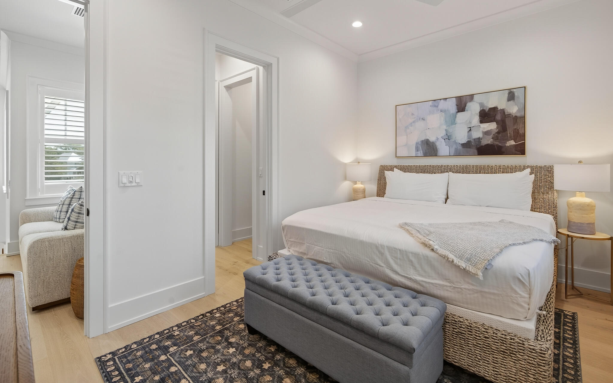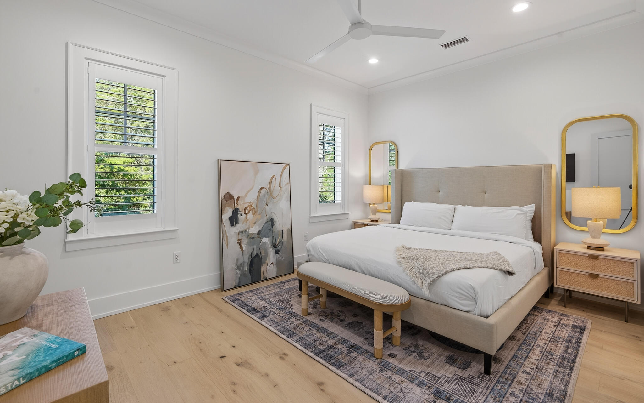 Fully furnished and rental ready, brand new construction in sought after neighborhood of Lakeside At Blue Mountain Beach. This boutique community offers amenities including pool, clubhouse, playground, access to Redfish Village and public beach access. As you enter into the elegant foyer of this stunning home, professionally decorated and fully furnished, you are greeted with light engineered wood flooring taking you to the open area concept living and dining area. The gourmet kitchen features all Thermador stainless steel appliances including a gas stove with chimney style range and French Door refrigerator. Quartz countertops, an abundance of storage cabinets, and a wine bar complete the kitchen. First floor primary room has an ensuite bath with walk-in closet. A powder room and laundry closet finish the first floor. The stairs will lead you to the oversized living area loft with built in bunk beds. All 3 bedrooms upstairs have an ensuite bathroom and walk-in closet with a balcony off the upstairs primary bedroom. A large laundry room finishes the second floor. The carport offers a storage room as well. This home also boasts a tankless water heater and 2 HVAC units.