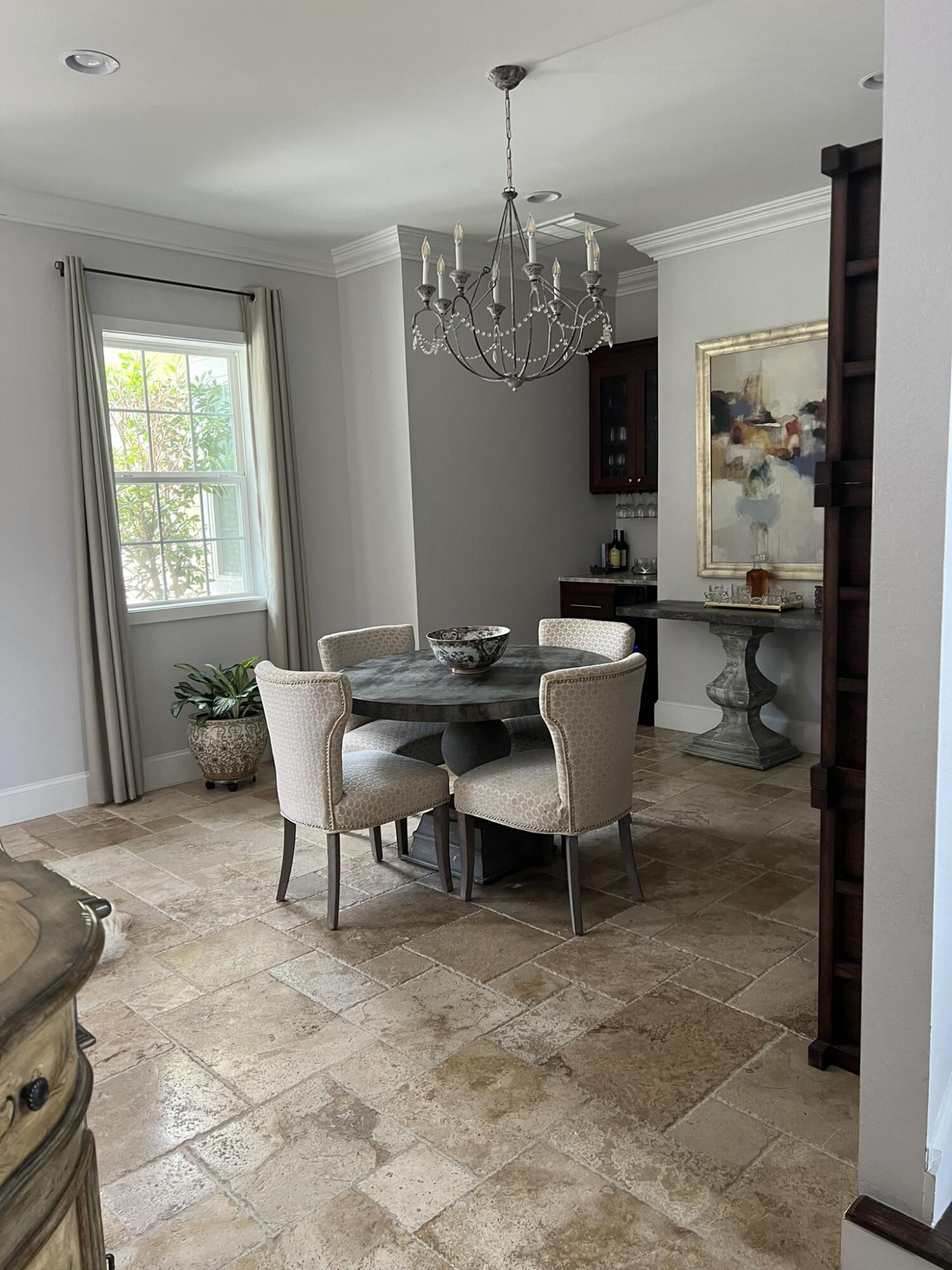 INTERIOR | Built-In Bookcases,Ceiling Beamed,Ceiling Crwn Molding,Ceiling Tray/Cofferd,Ceiling Vaulted,Fireplace,Fireplace Gas,Floor Tile,Furnished - None,Kitchen Island,Lighting Recessed,Pantry,Shelving,Washer/Dryer Hookup,Window Treatment All,Woodwork Painted |