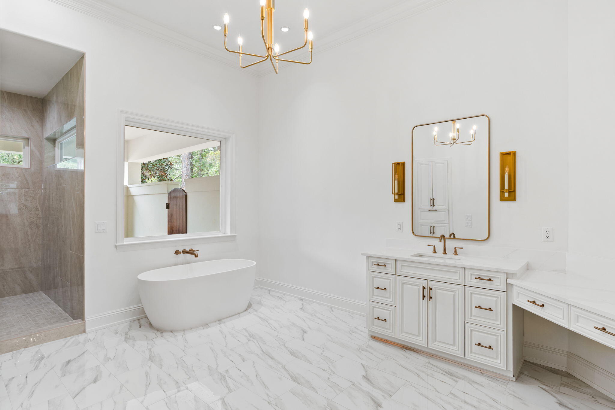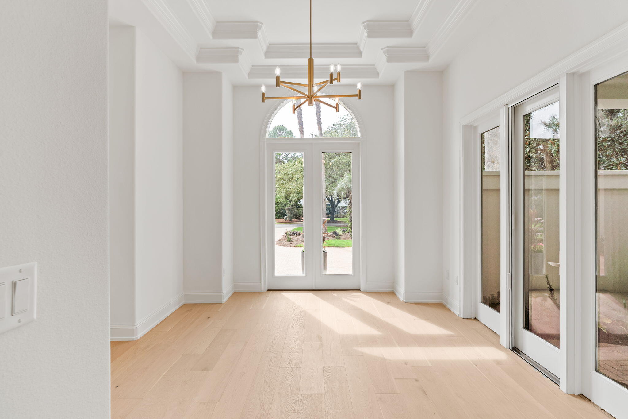 Welcome to 3104 Merion Drive, an extraordinary residence located in the exclusive Burnt Pine community within Sandestin Golf & Beach Resort. This elegant four-bedroom, four-and-a-half-bath home offers over 4,100 square feet of refined living space and an exceptional outdoor retreat overlooking the 8th fairway of the Burnt Pine Golf Course. Designed for both comfort and sophistication, this home embodies the essence of coastal luxury living along Florida's Emerald Coast.Step through the grand entryway into a light-filled interior where high ceilings, crown molding, and custom millwork create a timeless atmosphere. The open-concept layout seamlessly connects the main living areas, providing an effortless flow for entertaining and everyday living. The formal dining room and spacious living room feature large windows that frame golf course views, while the chef's kitchen is a culinary masterpiece equipped with premium appliances, a gas cooktop, double ovens, custom cabinetry, and an expansive center island. A cozy breakfast nook and adjoining family room provide the perfect gathering spaces for family and guests.