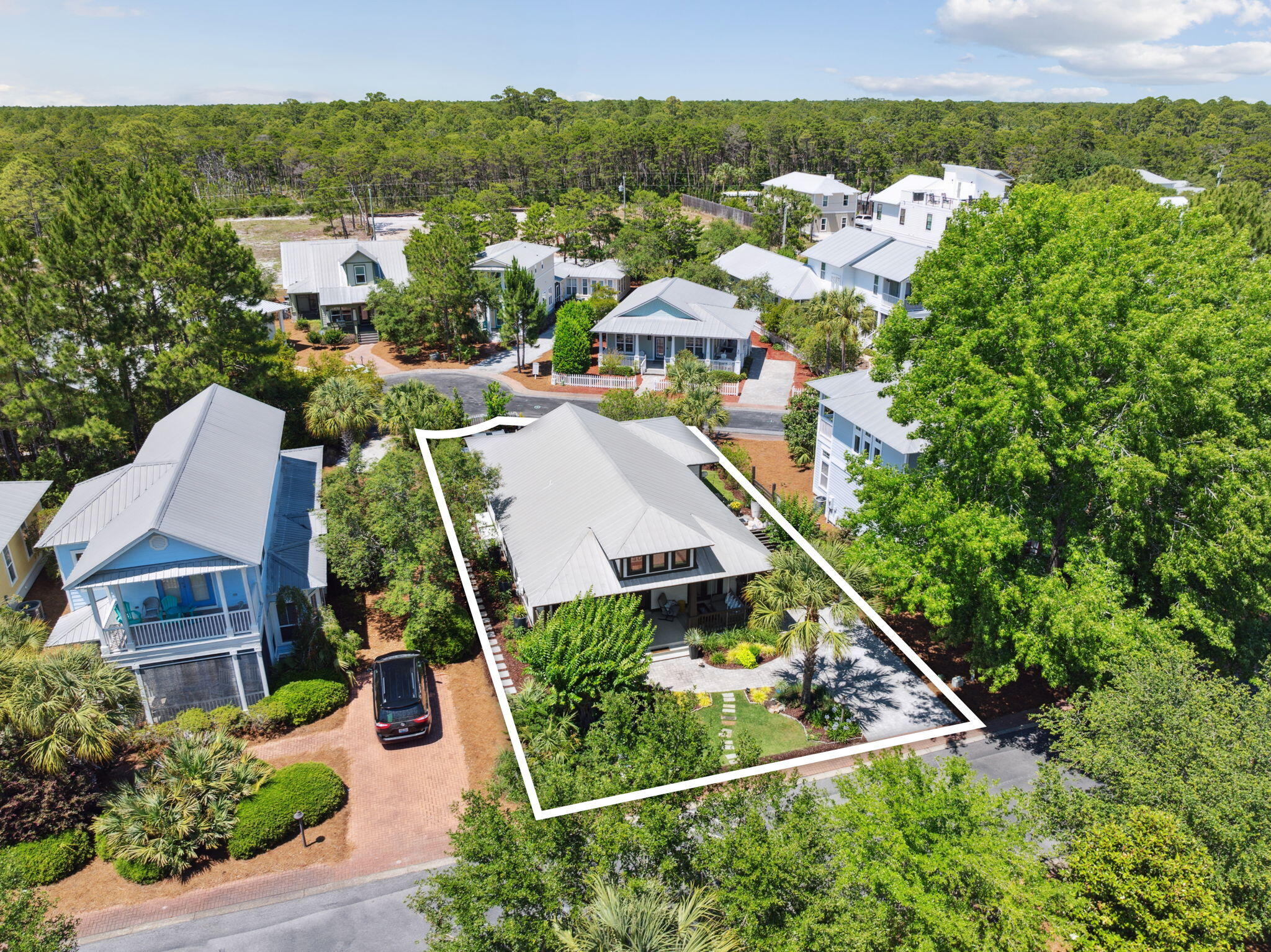 From the intersection of CR 395 and 30A, turn east. Go 2 miles and turn left onto Cassine Way. At the end of Cassine Way take a right and then left onto Cassine Garden Circle. 300 Cassine Garden Circle will be on the left.